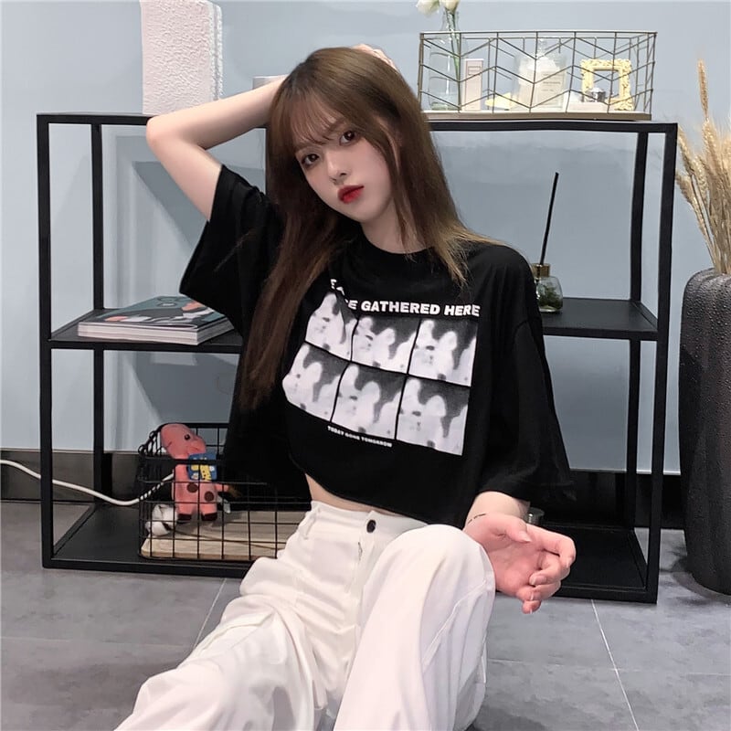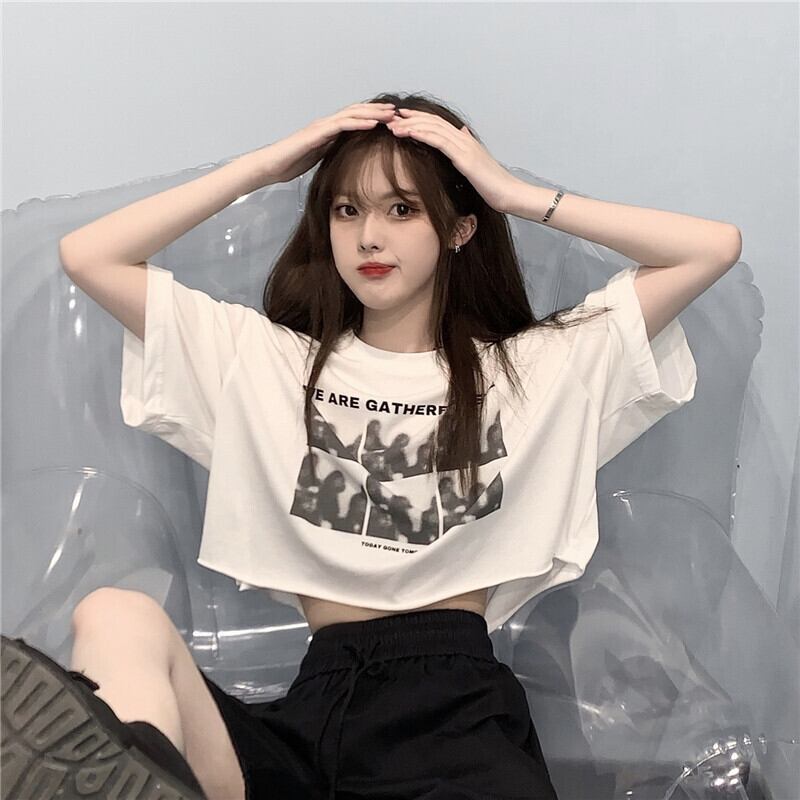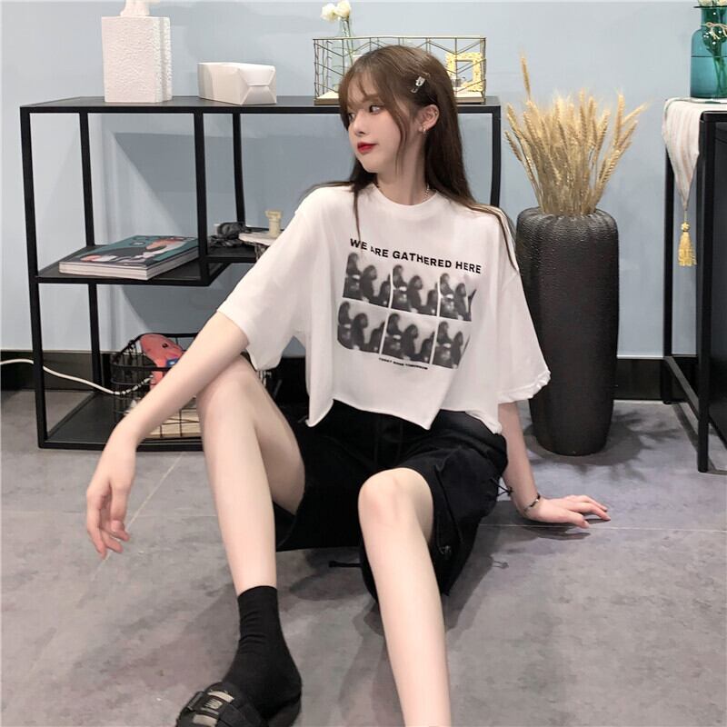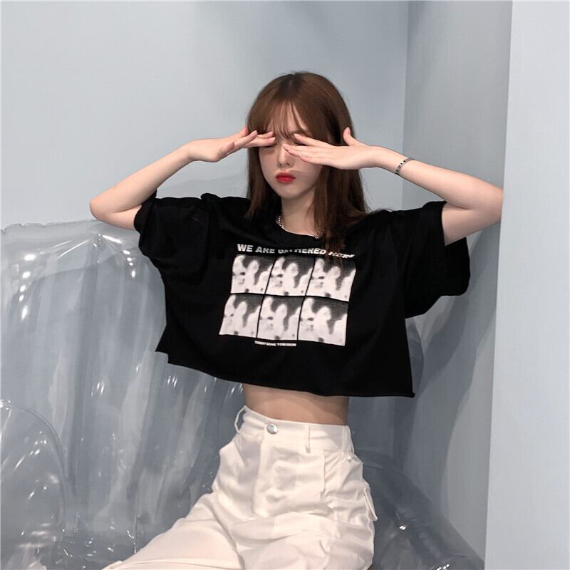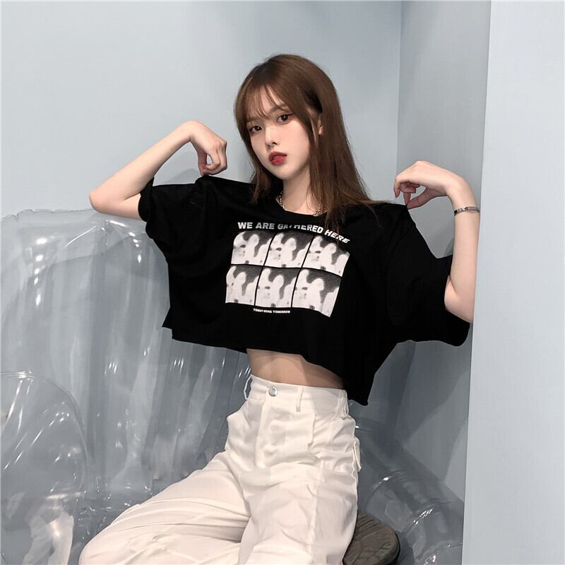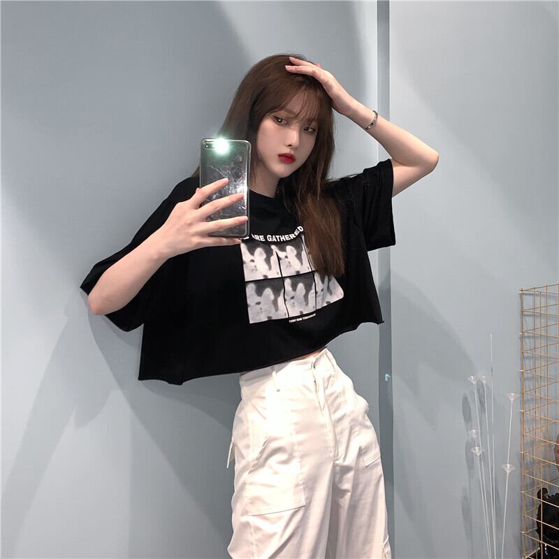 ホットウェアブラック半袖Tシャツ女性の2022年夏新しいショートスタイルクロップドネーブルハイウエストスウィートクールウィンドトップTシャツ ハイウェスト 大人ガーリー キュート カジュアル サマー 夏物 7460066179716388 | framboise21