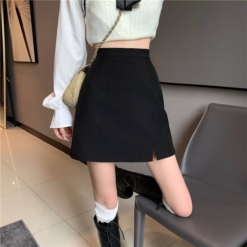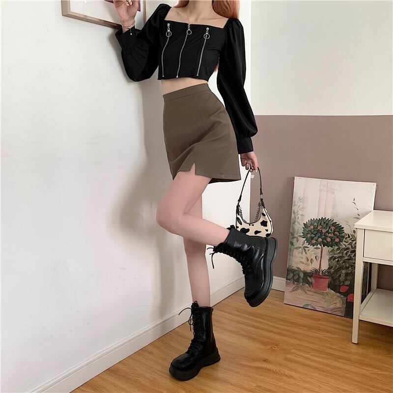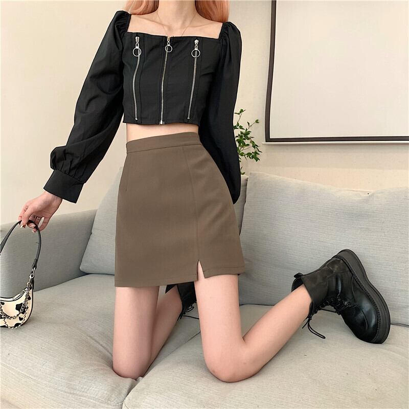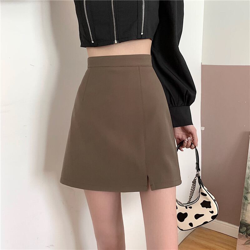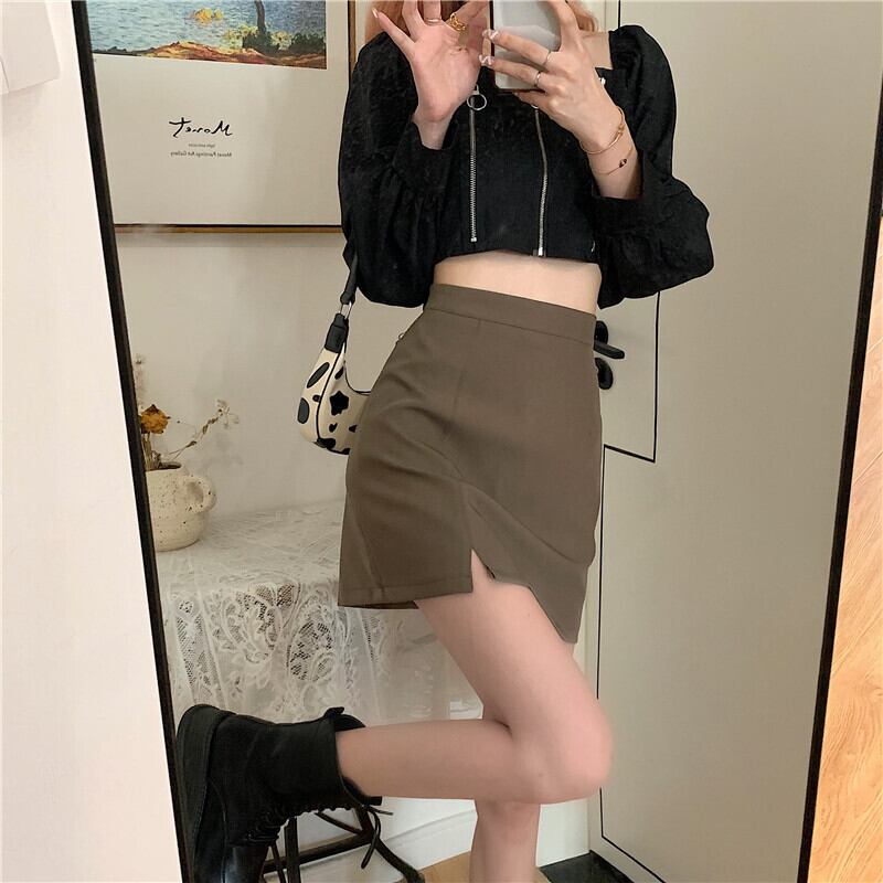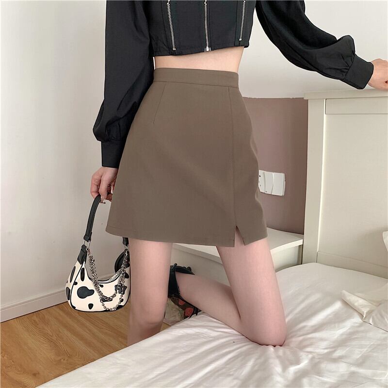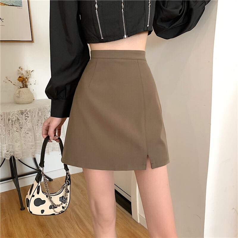 コーヒーカラースプリットスーツスカートレディースサマーハイウエストバッグヒップAラインショートスカートハーフスカートバッグスカートワンステップスカートサマー ハイウェスト 夏物 7460026172403703 | framboise21