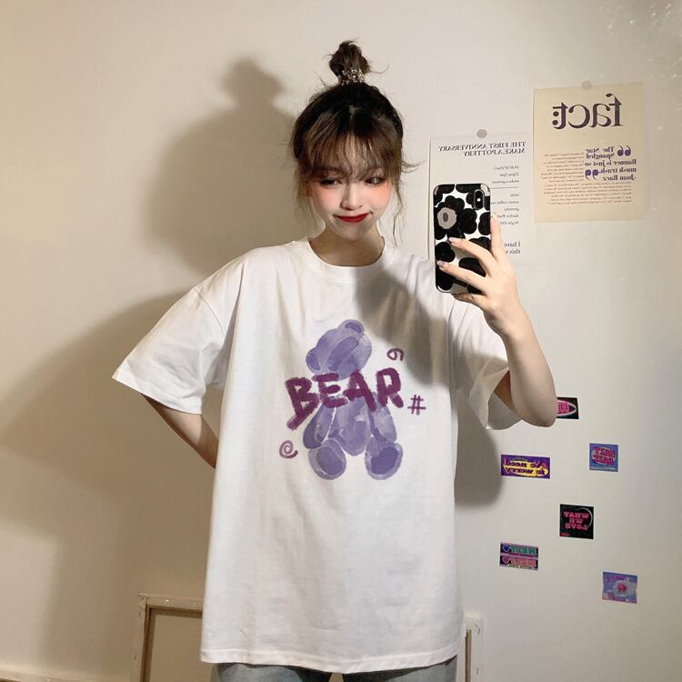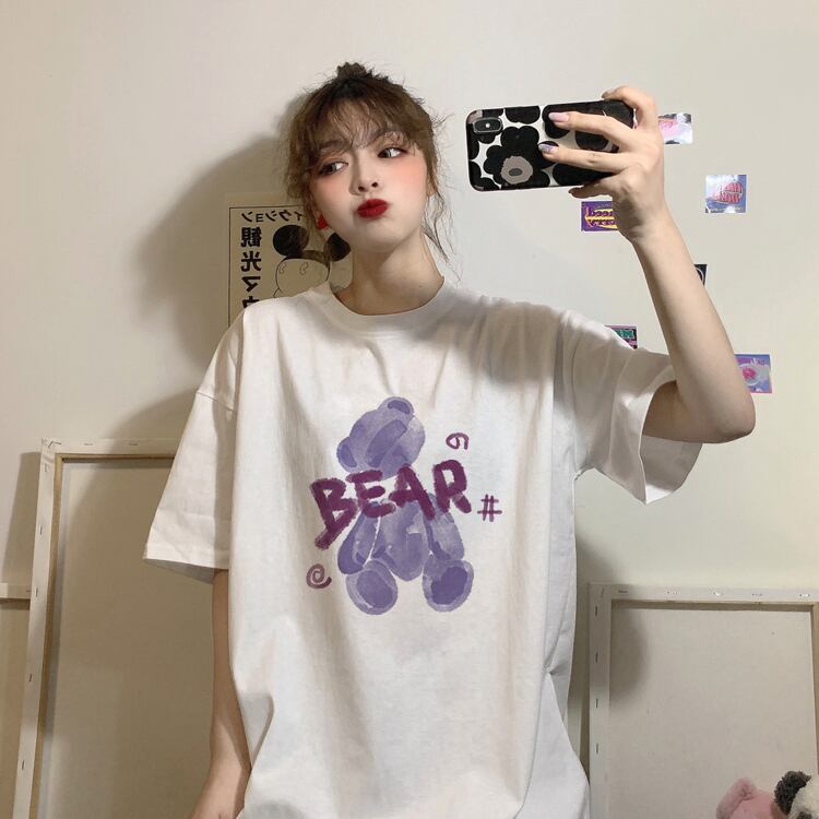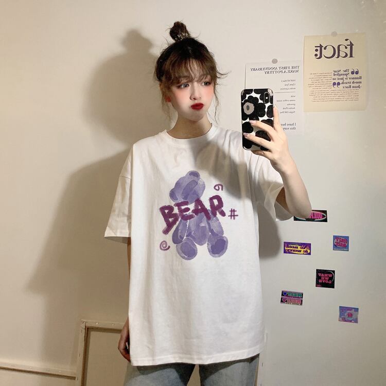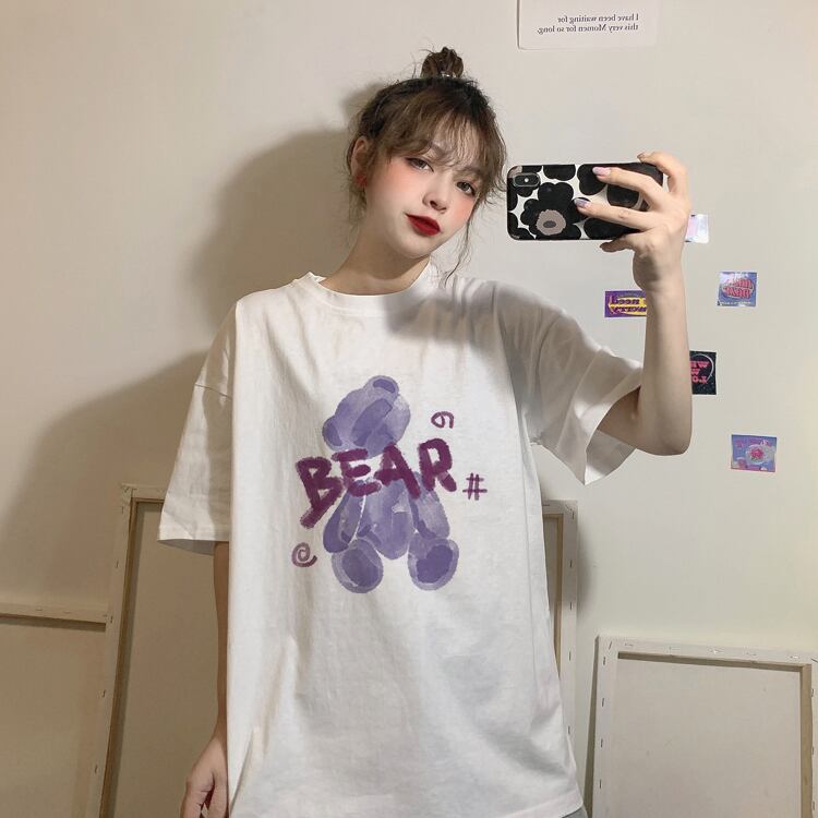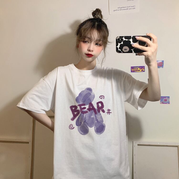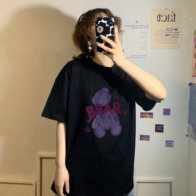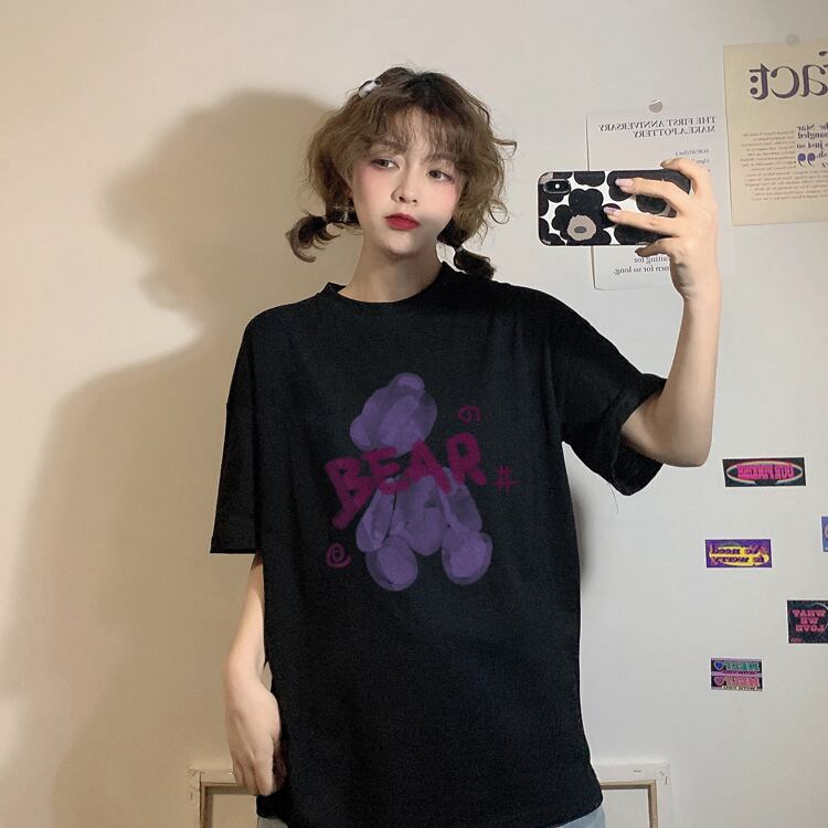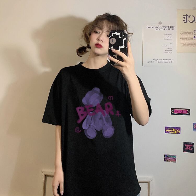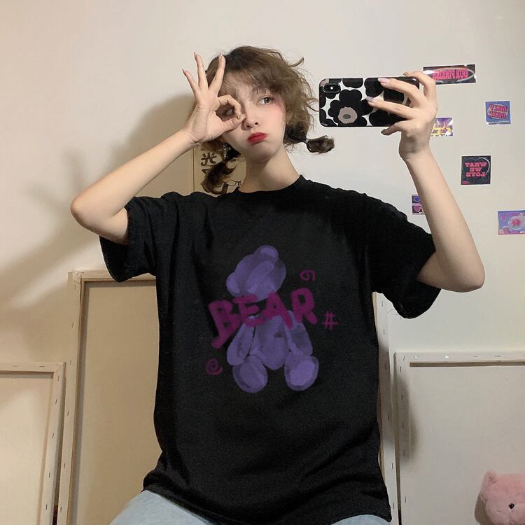 黒の半袖Tシャツ女性の2022年夏の新しいデザインルーズBFネットレッドフロントショルダープリントハーフスリーブトップイン ブラック サマー 夏物 7460053198301133 | framboise21