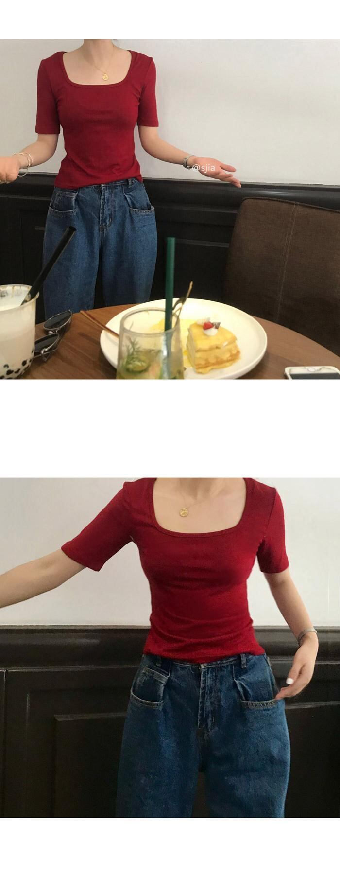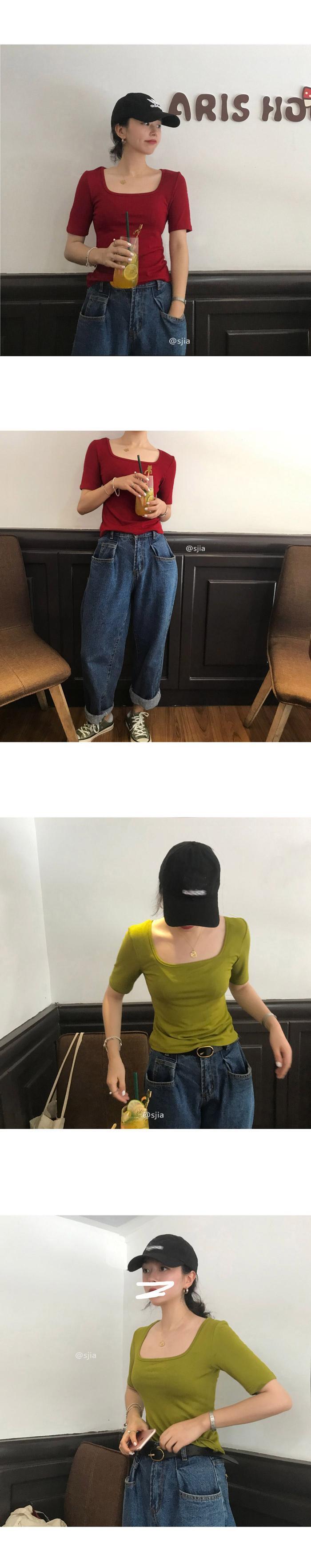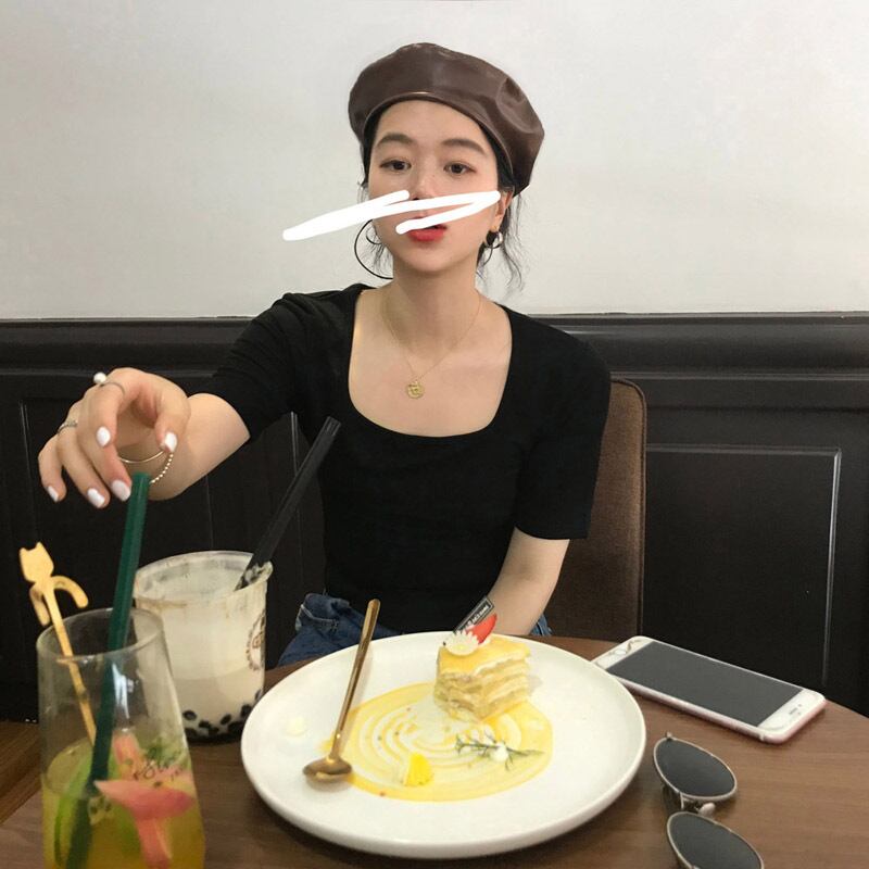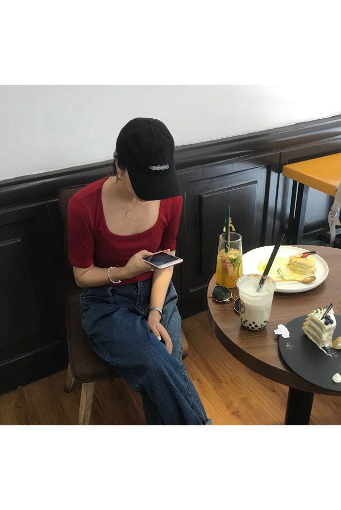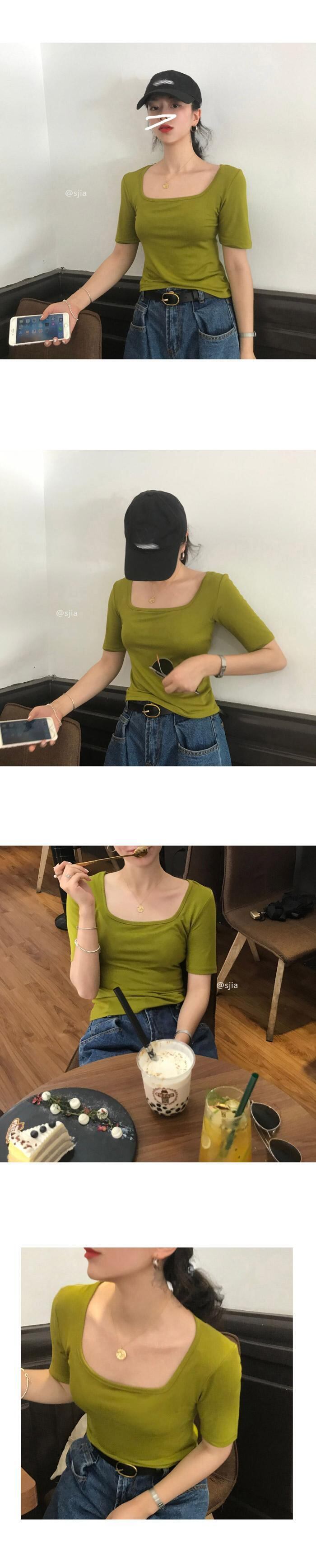 スクエアカラーカラーボーントップ半袖Tシャツレディースレトロフレンチサマースリムフィットデザインスモールピーコックブルーニットセーター 夏物 スクウェア 7460067861596286 | framboise21