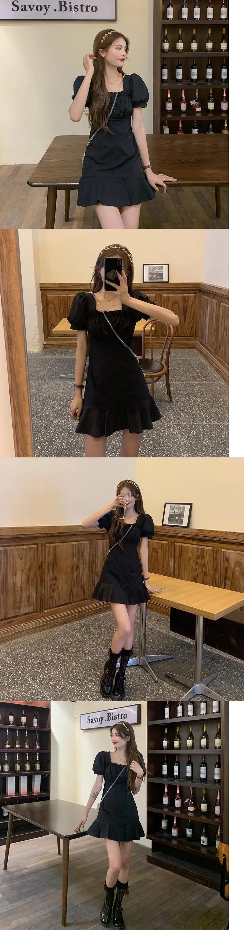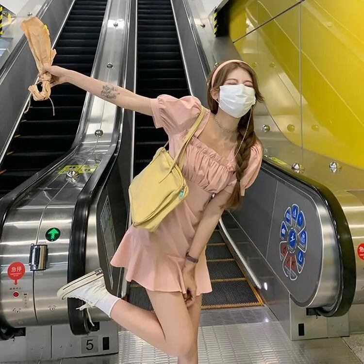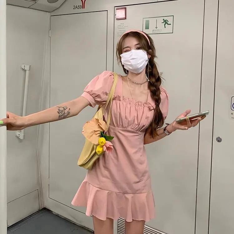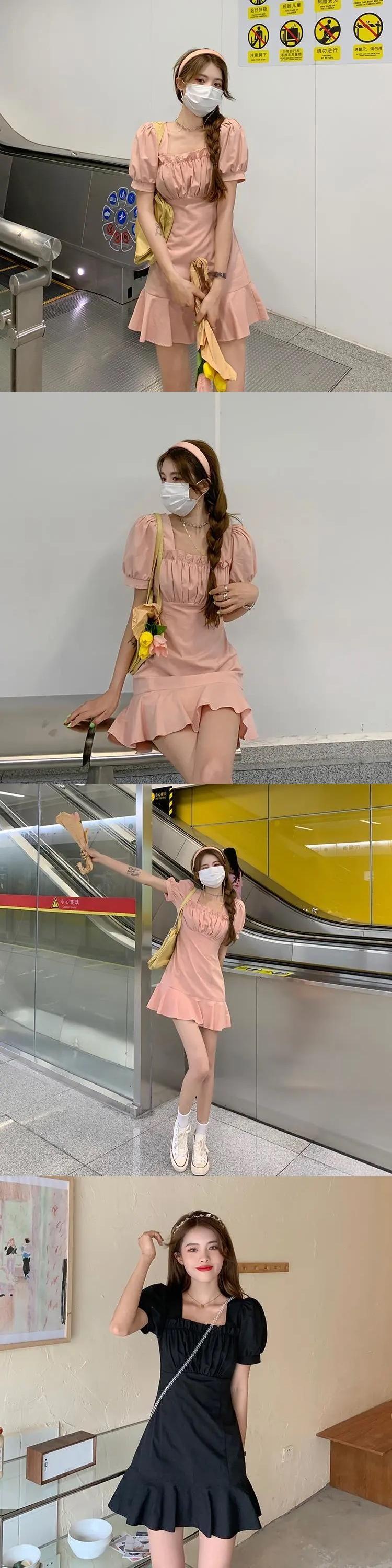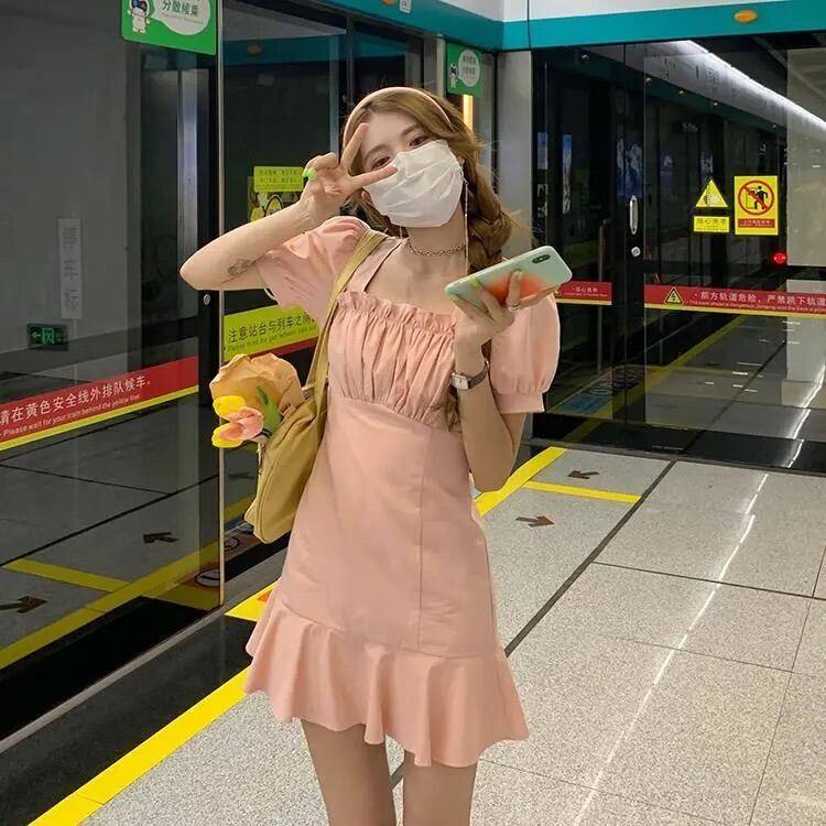 ホワイト半袖ワンピースレディースサマー薄手のスクエアネックシャツスカートデザインセンスウエストと薄手のパフスリーブショートスカート 夏物 スクウェア 7460022405275084 | framboise21