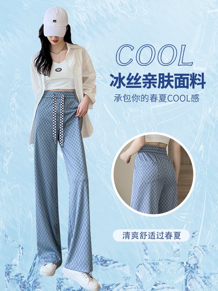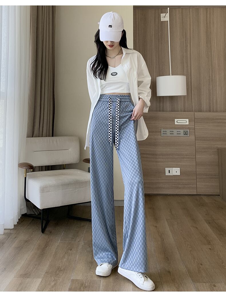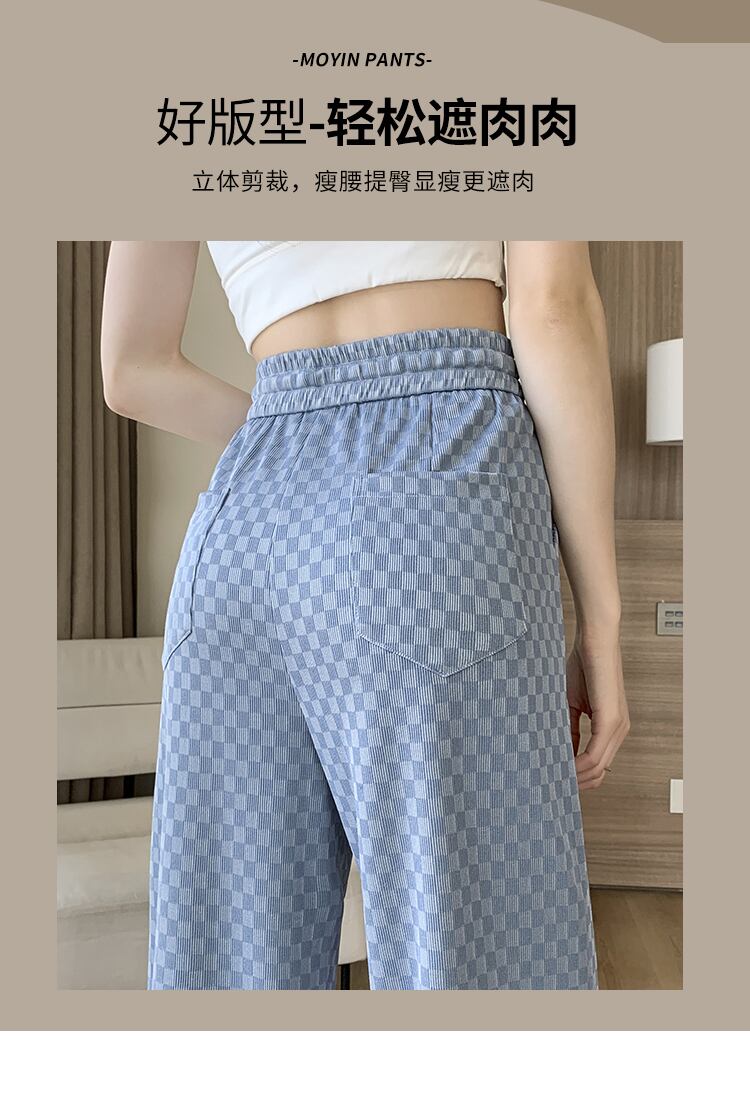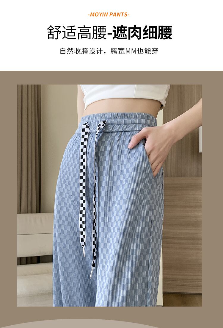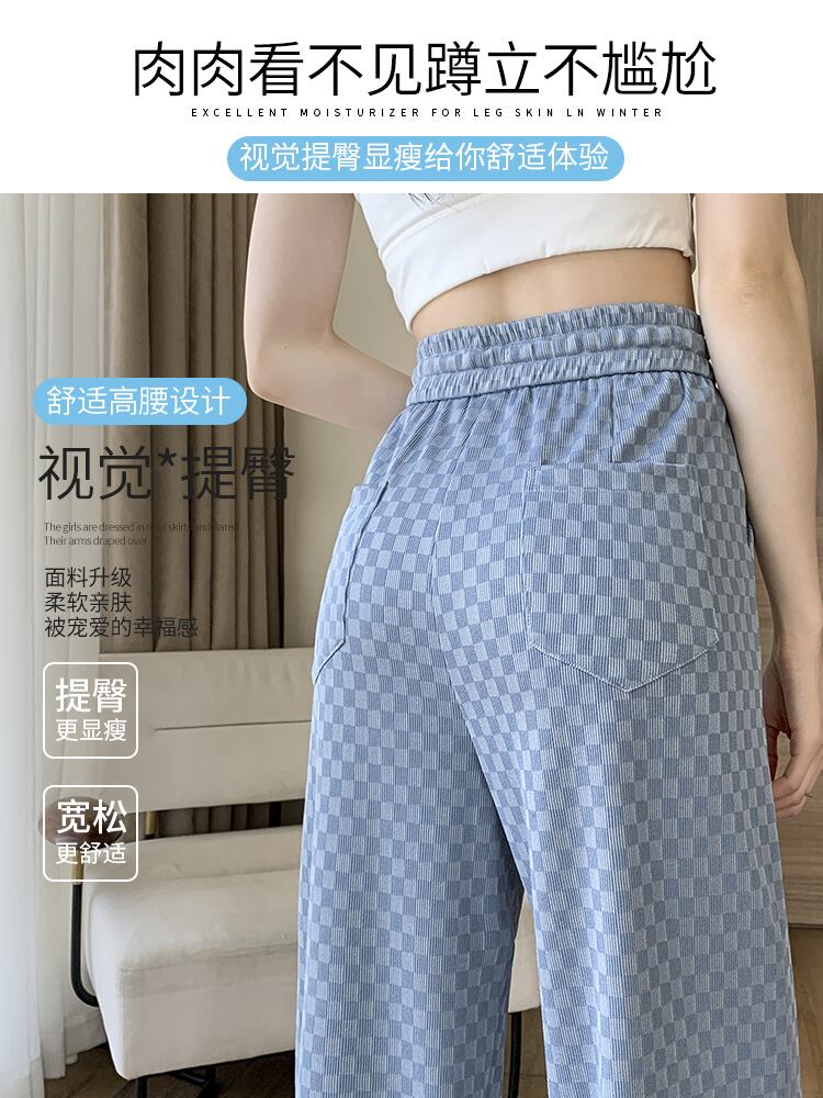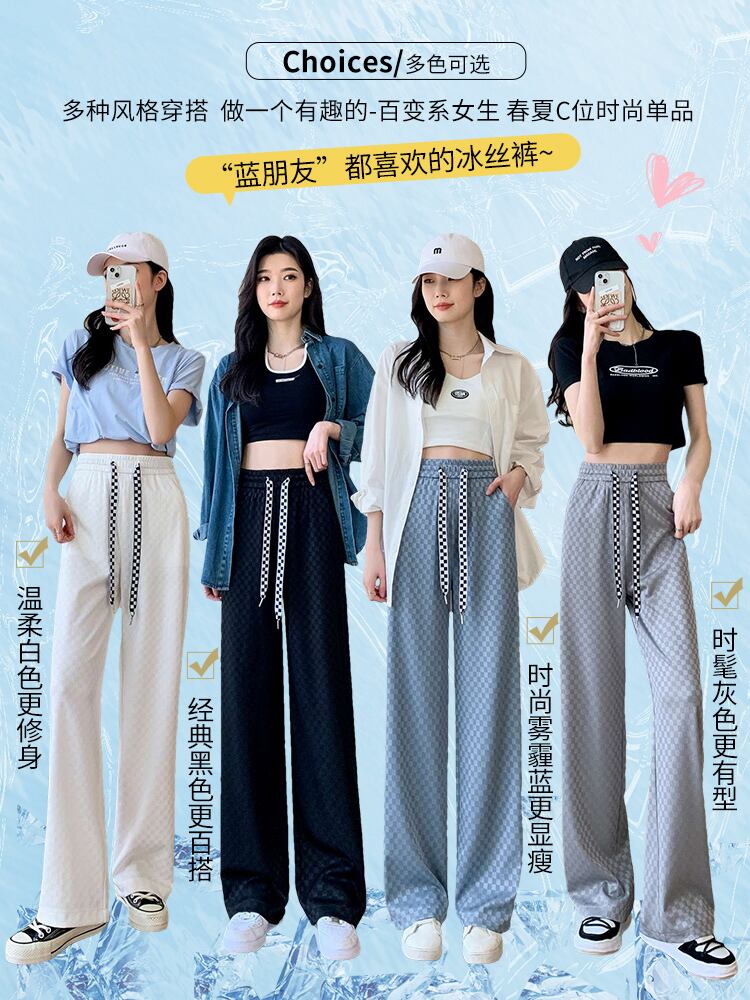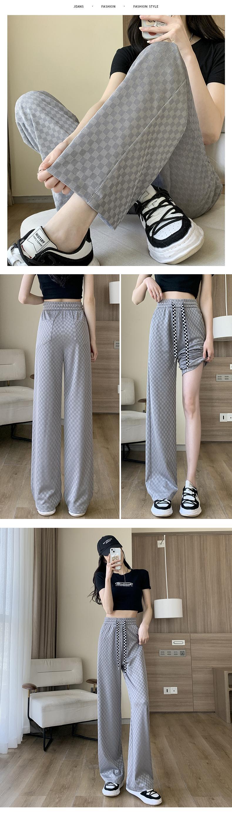 チェック柄アイスシルクワイドレッグパンツレディースサマースポーツパンツハイウエストドレープカジュアルストレートパンツ薄手の怠惰な小 ハイウェスト 夏物 ワイドパンツ 7460035850652912 | framboise21