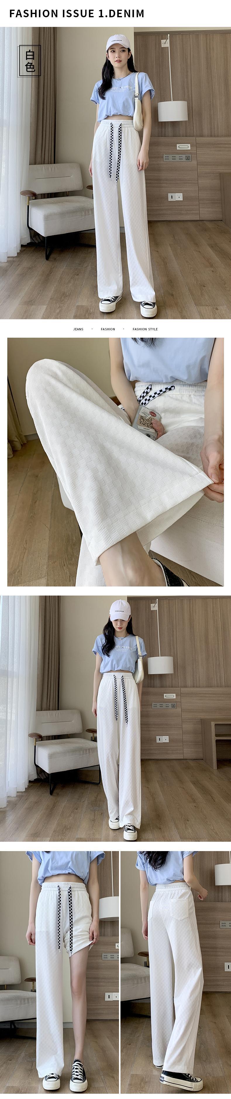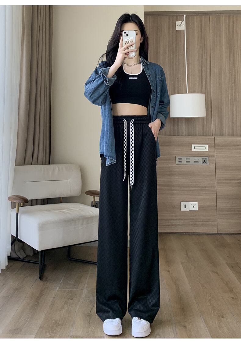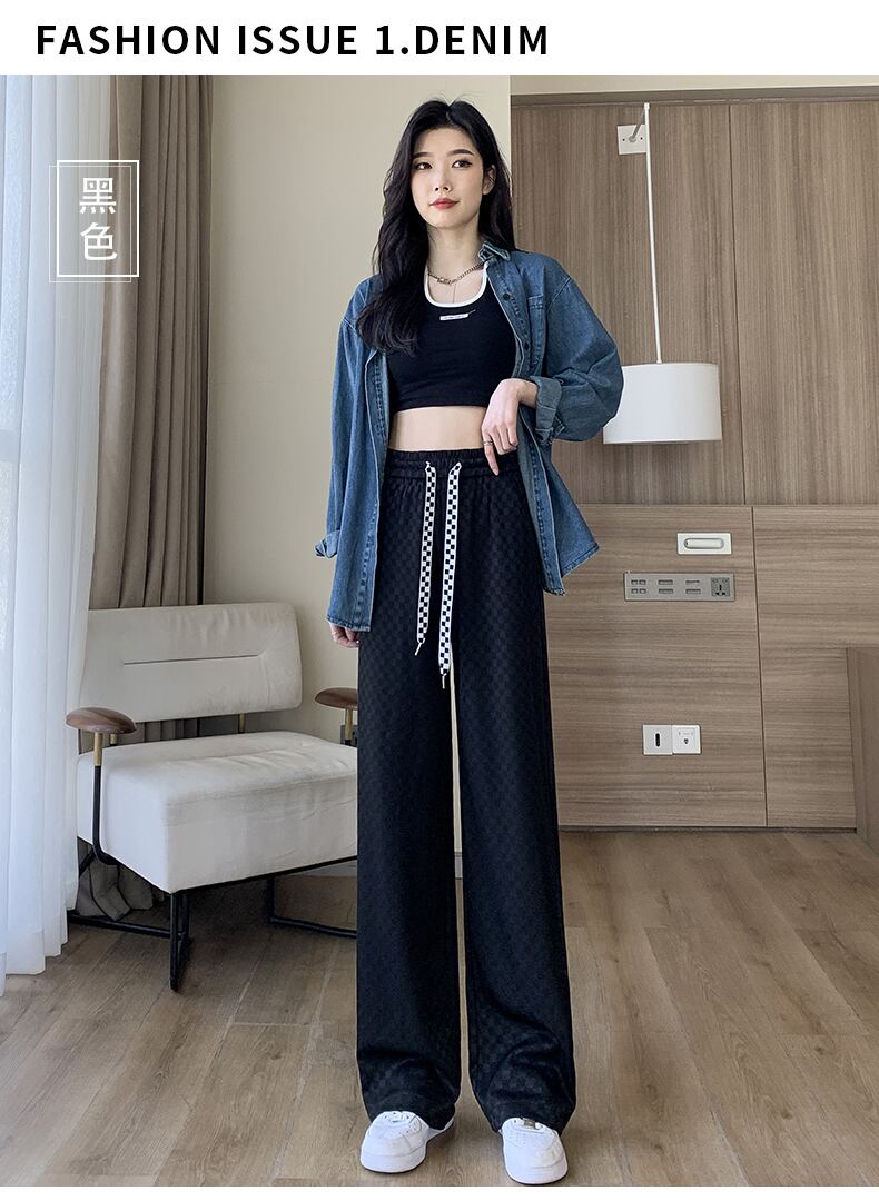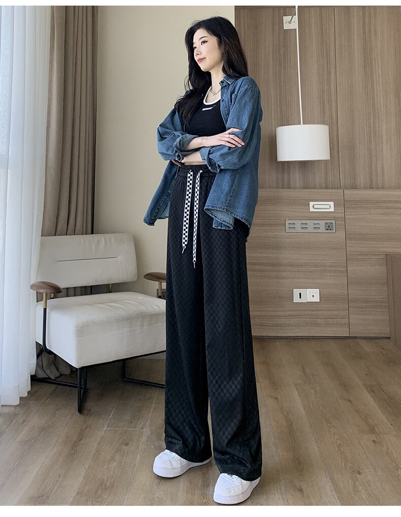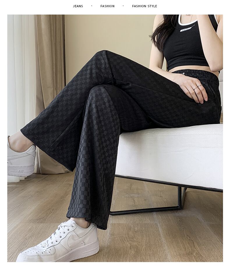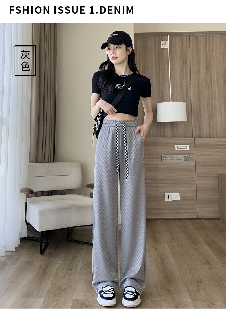 チェック柄アイスシルクワイドレッグパンツレディースサマースポーツパンツハイウエストドレープカジュアルストレートパンツ薄手の怠惰な小 ハイウェスト 夏物 ワイドパンツ 7460035850652912 | framboise21