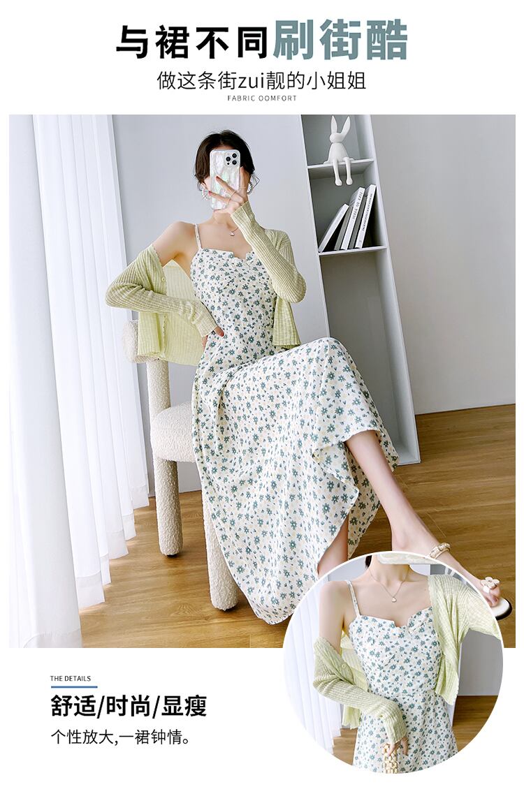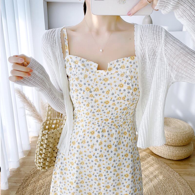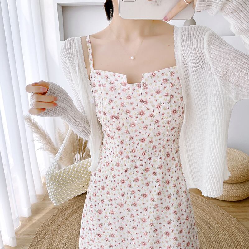 サスペンダースカートと日焼け止めカーディガン、女性の夏の薄手のニットブラウス、ゆったりとしたVネックの長袖アイスシルクスモールコート ロング サマー 夏物 7460011715368906 | framboise21