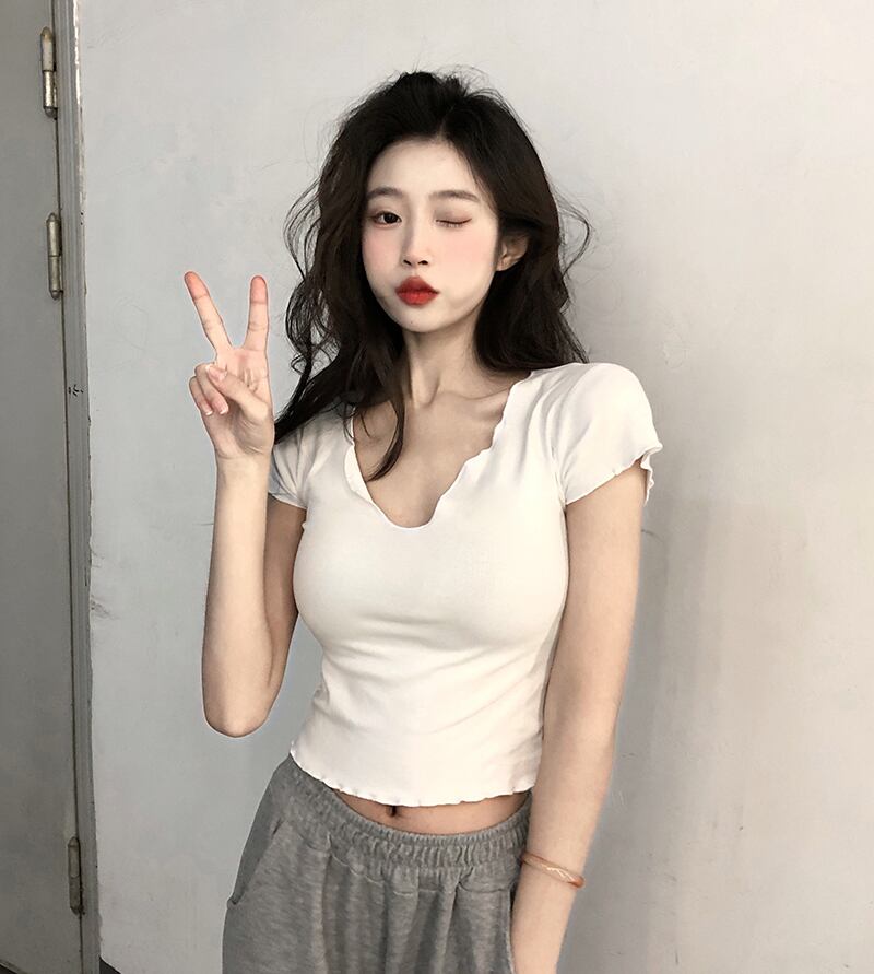 ヨーロッパとアメリカのイントップスショート半袖Tシャツレディースデザインセンスニッチ2022年夏新しいシックなスリムフィットトレンド サマー 夏物 ヨーロピアン 746002343566263 | framboise21