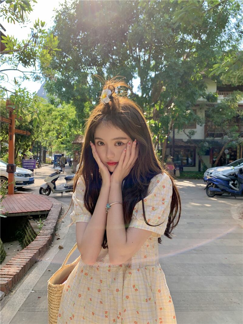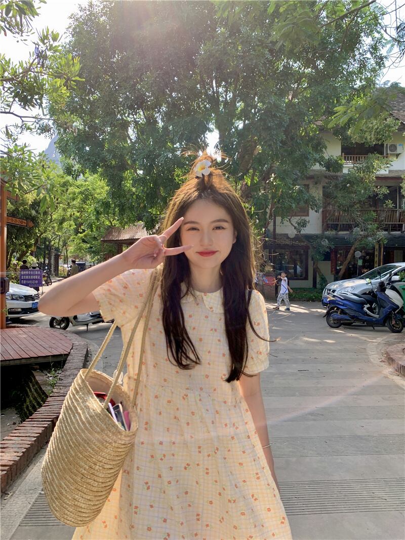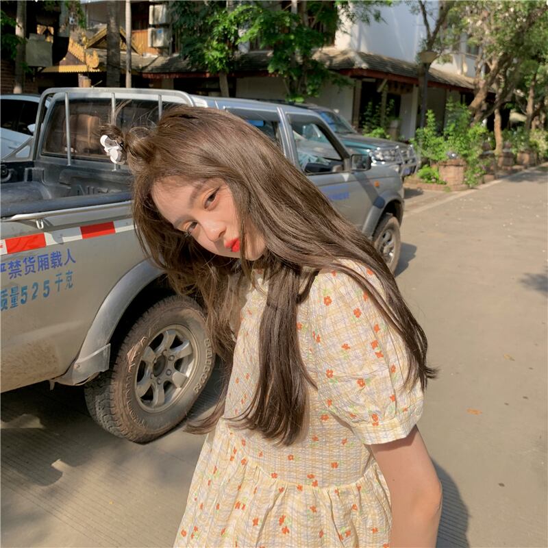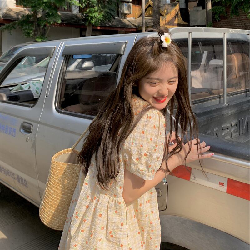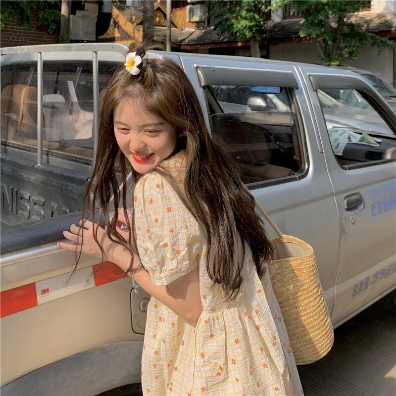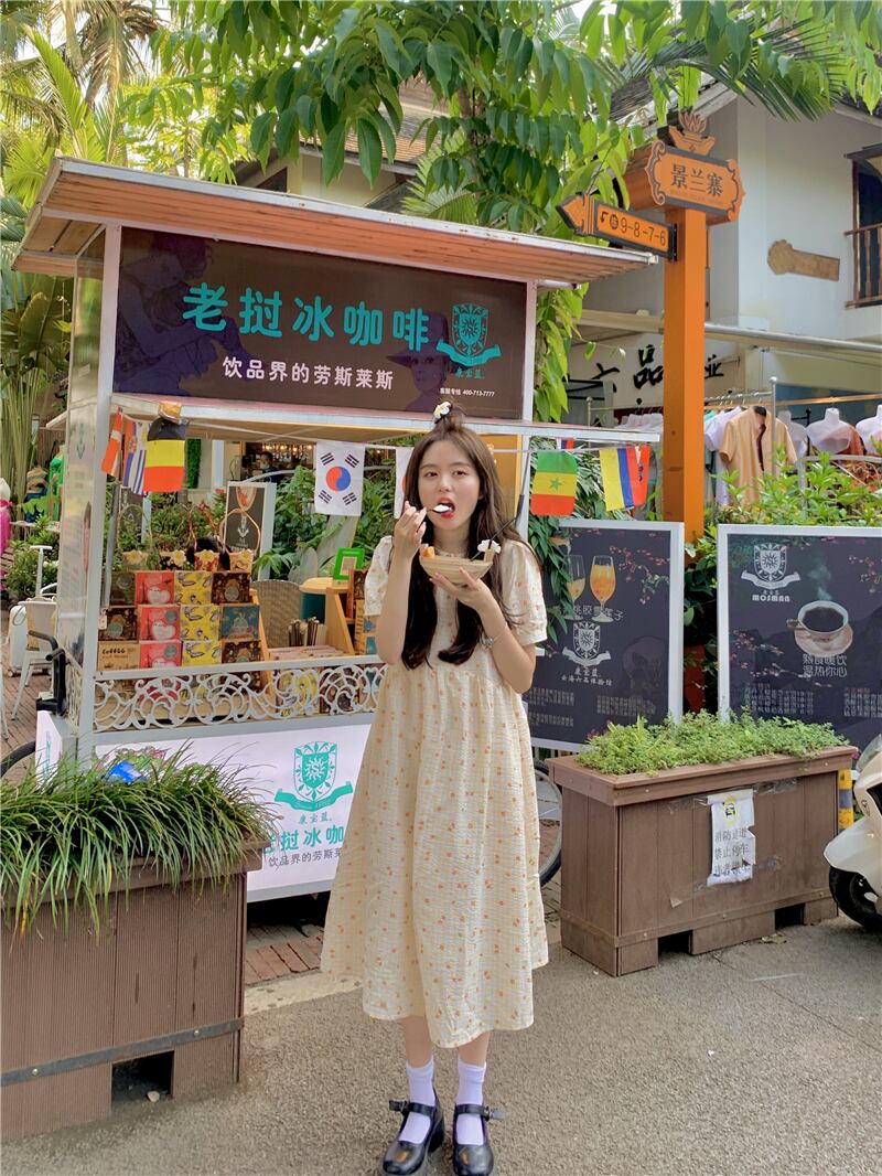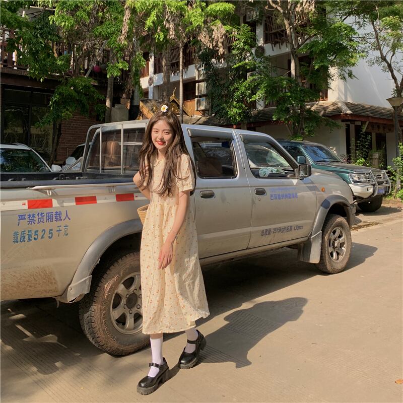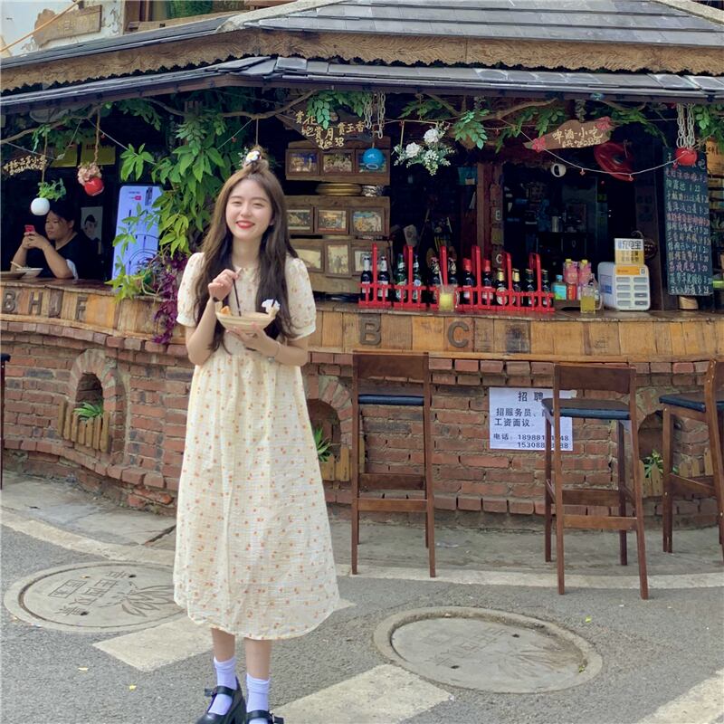 ドールカラードレスサマーフレッシュスウィートジェントルレトロパフスリーブファーストラブスモールフローラルドレスロングスカート 大人ガーリー キュート カジュアル 夏物 花柄 7460084361075897 | framboise21