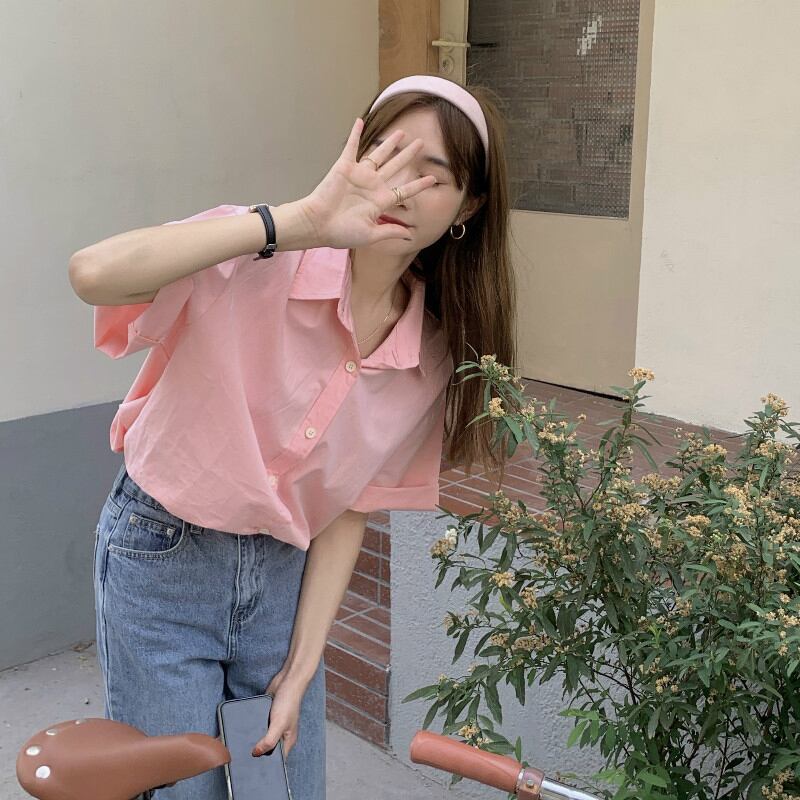 2022年の新しいピンクの半袖シャツ女性の小さな新鮮な甘くてシックなトップルーズデザインニッチシャツ夏 大人ガーリー スウィート キュート カジュアル サマー 夏物 7460070173732642 | framboise21