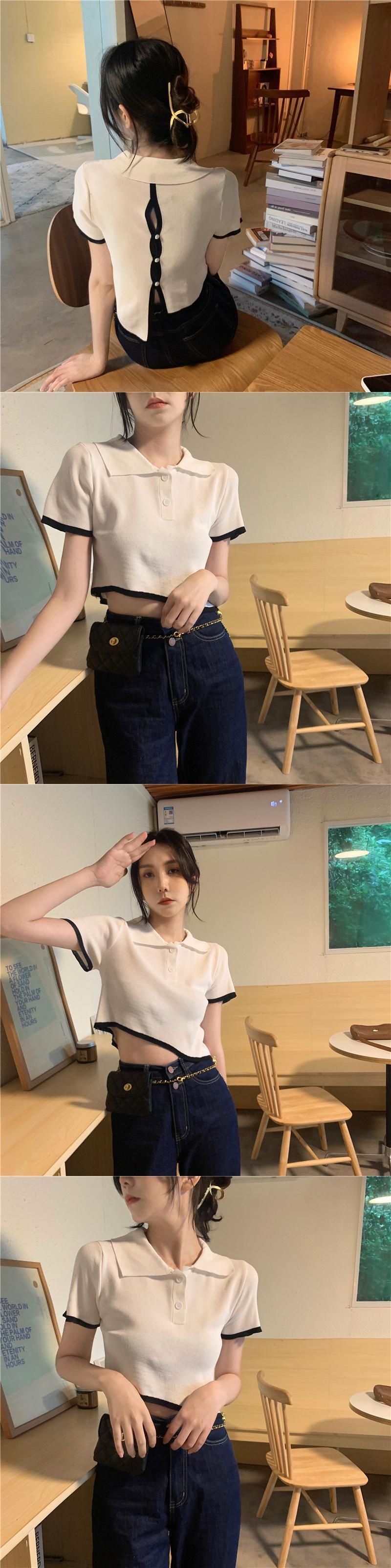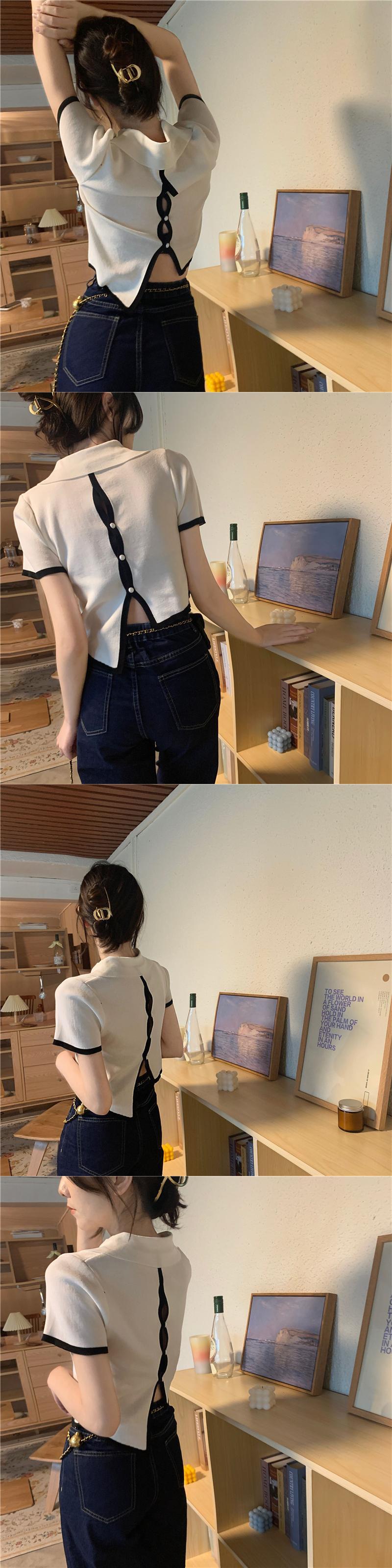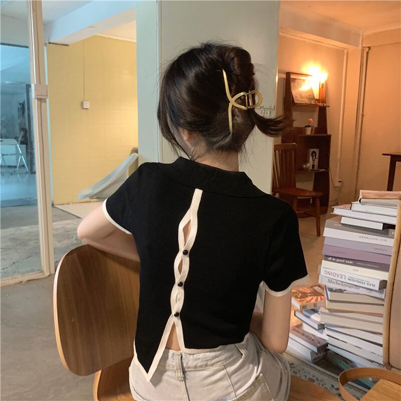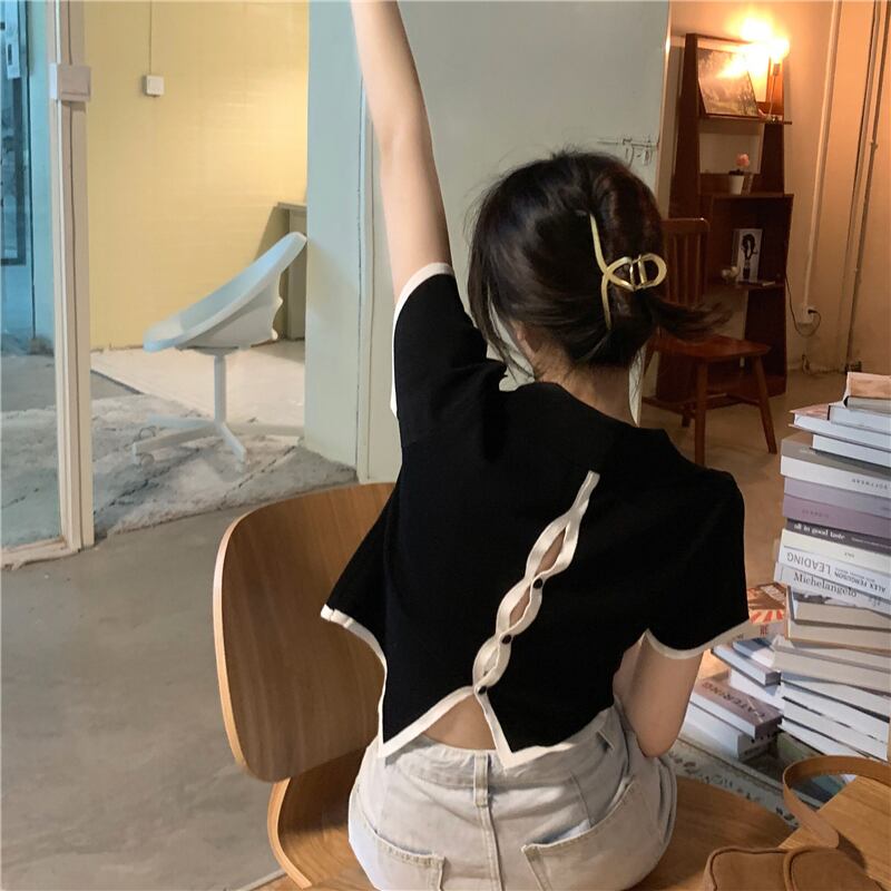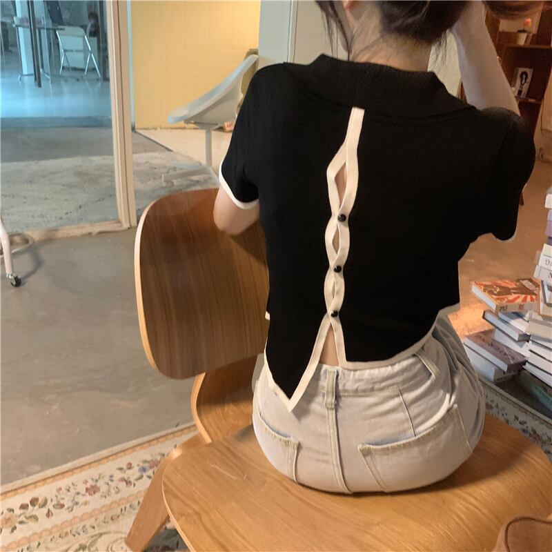 ポロカラー半袖Tシャツレディースデザインセンスニッチな陰謀背中の開いた甘いショートシックセクシーな純粋な欲望トップ 大人ガーリー スウィート キュート カジュアル ピュア 7460050682586021 | framboise21