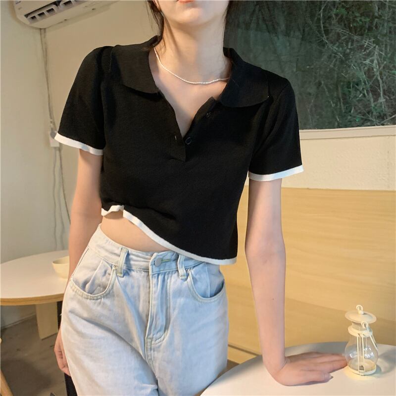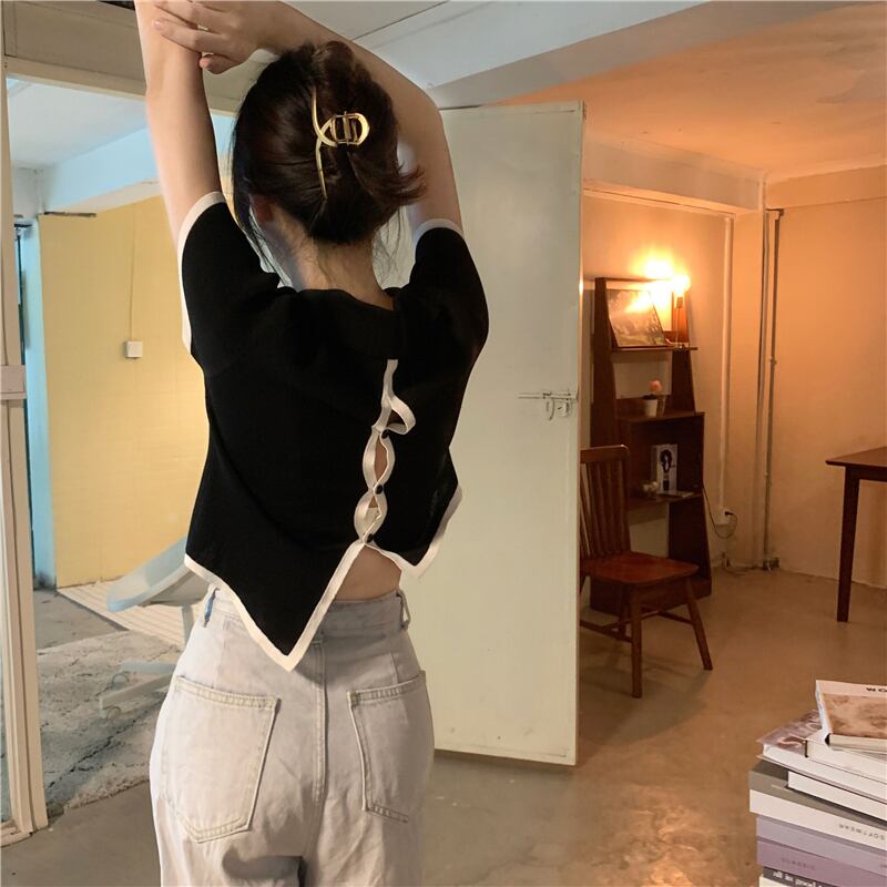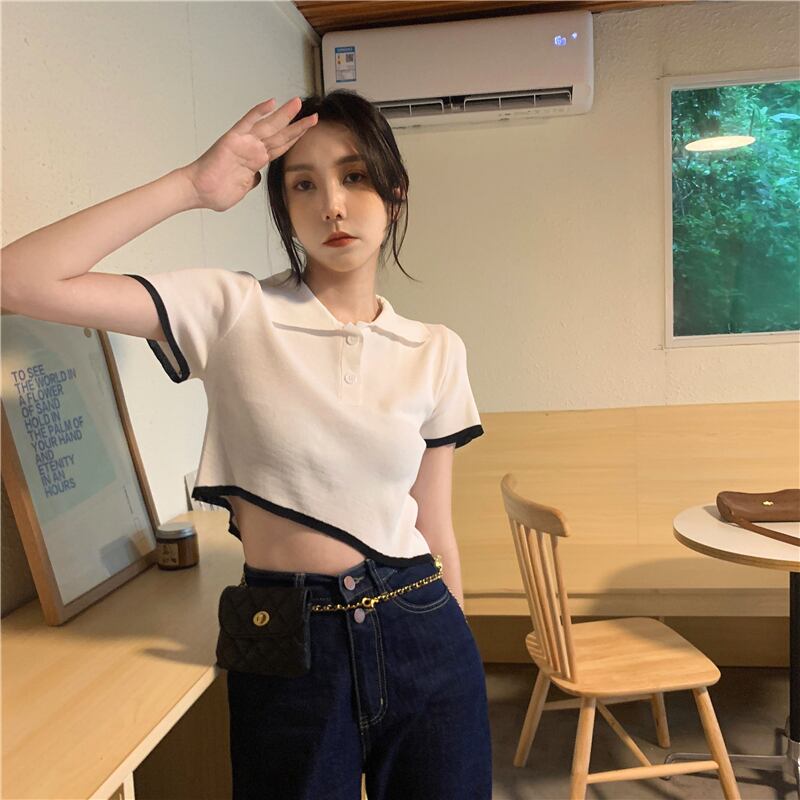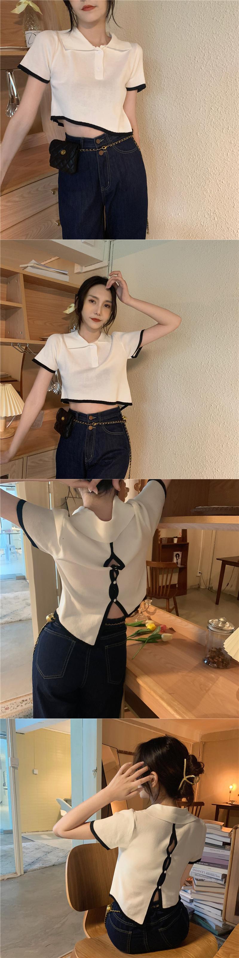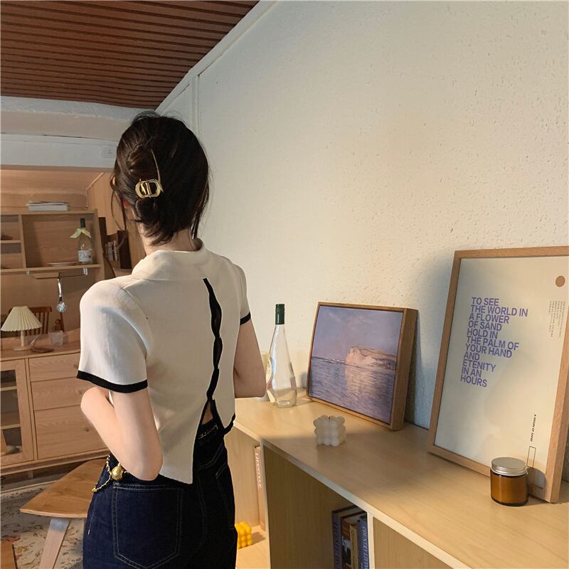 ポロカラー半袖Tシャツレディースデザインセンスニッチな陰謀背中の開いた甘いショートシックセクシーな純粋な欲望トップ 大人ガーリー スウィート キュート カジュアル ピュア 7460050682586021 | framboise21