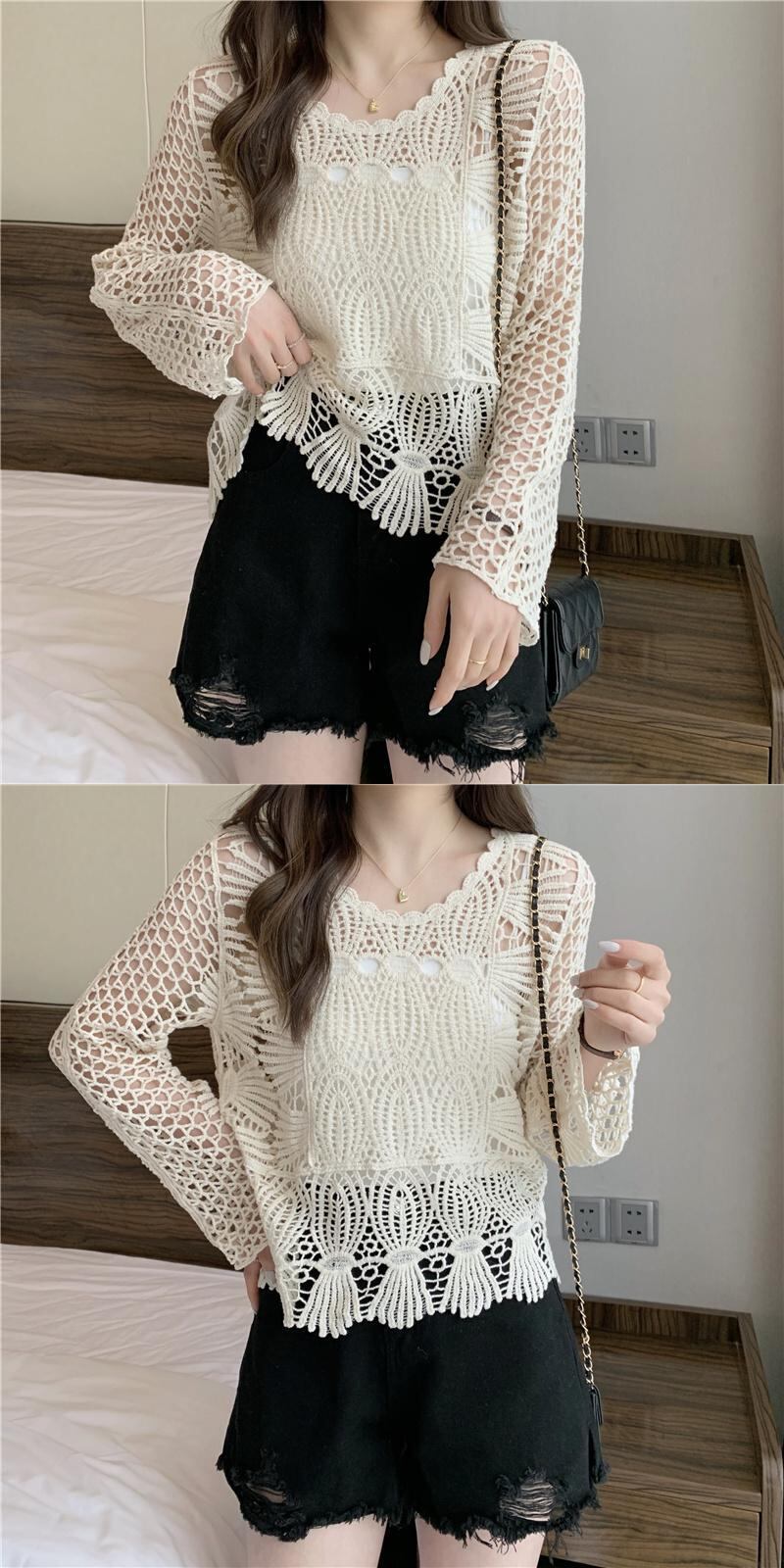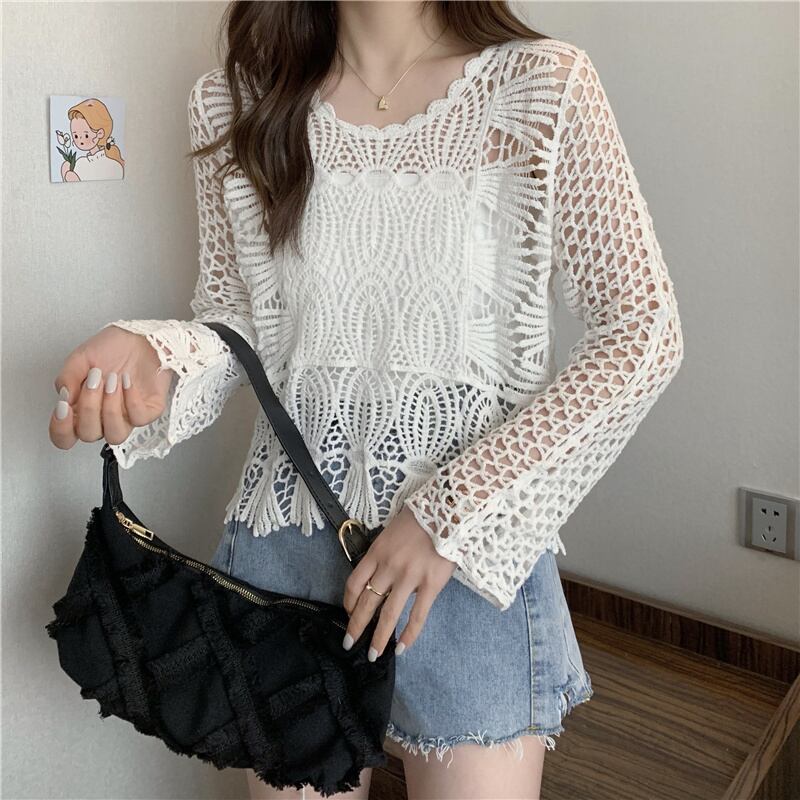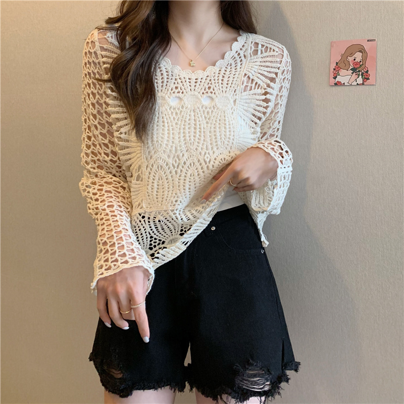 2022年春夏新作中空ニットセーター日焼け止めシャツウエスタンスタイルボトミングスモールシャツデザインセンスニッチレーストップ女性 スプリング 春物 サマー 夏物 7460058504318946 | framboise21