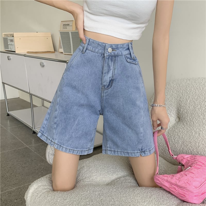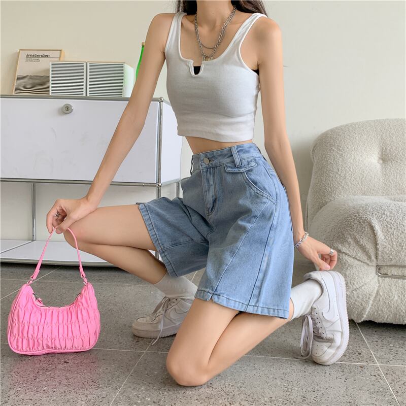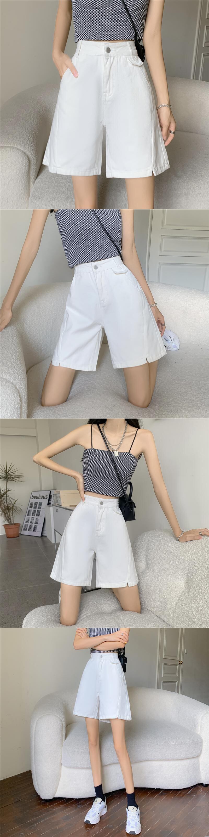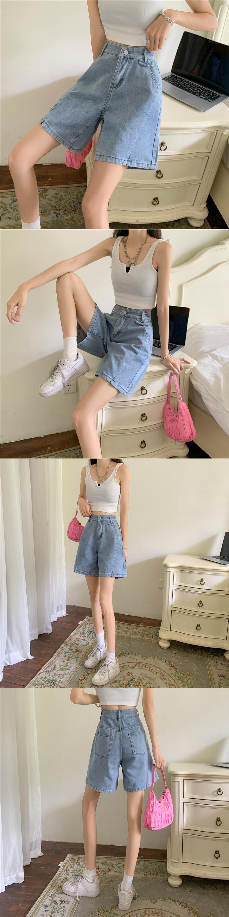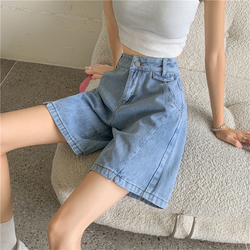 2022年夏新作ステッチスリットカジュアル5点パンツハイウエストシンルーズストレートワイドレッグデニムショーツレディース ハイウェスト サマー 夏物 ブルマー ワイドパンツ 7460096082413371 | framboise21