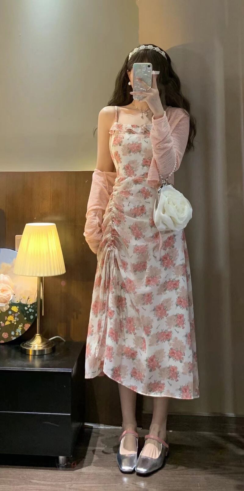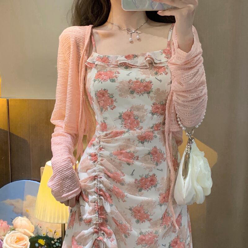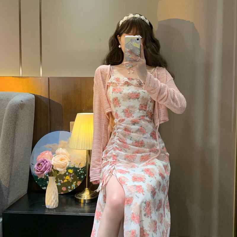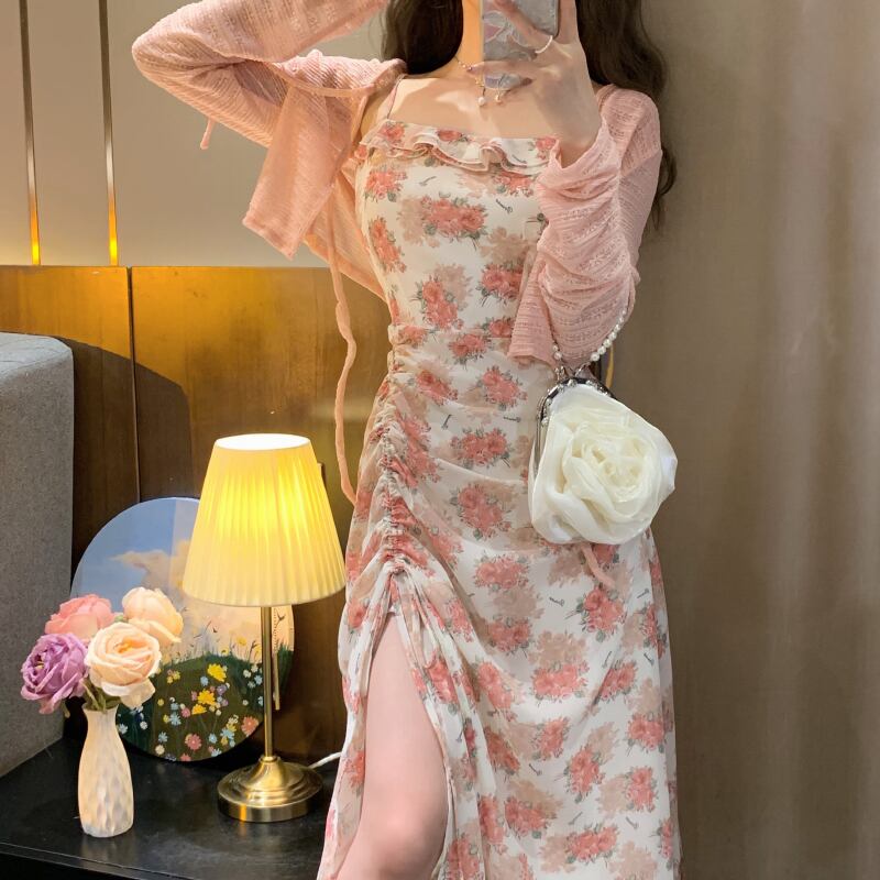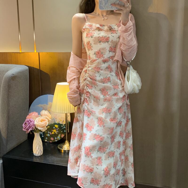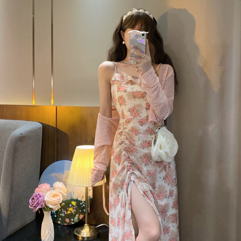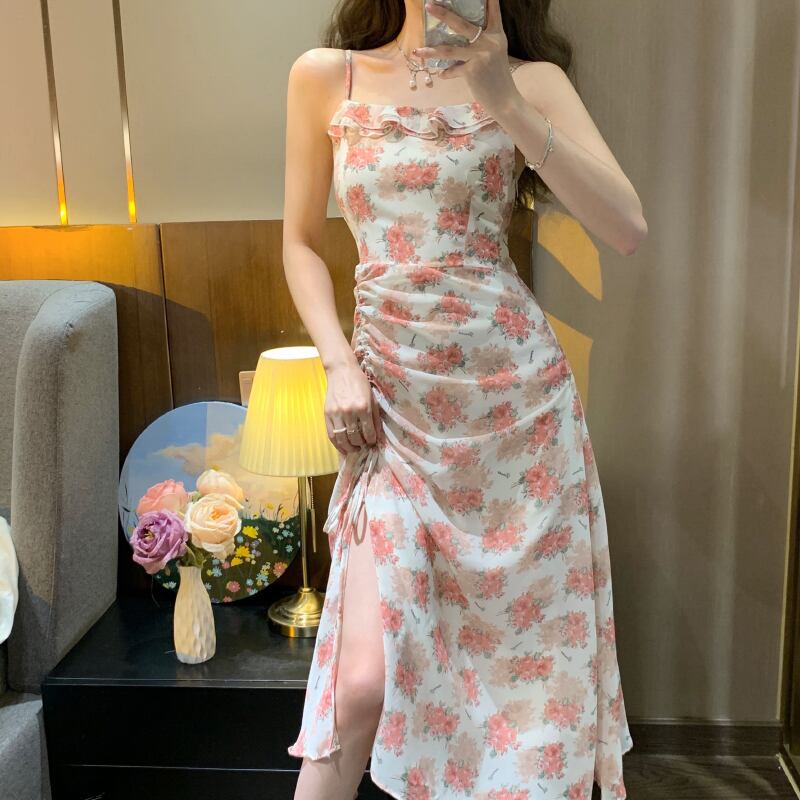 フローラルドレスレディースサマーシンスリットサスペンダースカート優しいスタイルデザインは細いドローストリングウエストロングスカート 夏物 花柄 7460060686955759 | framboise21