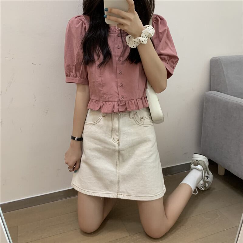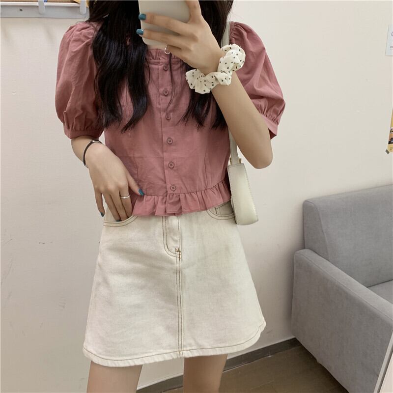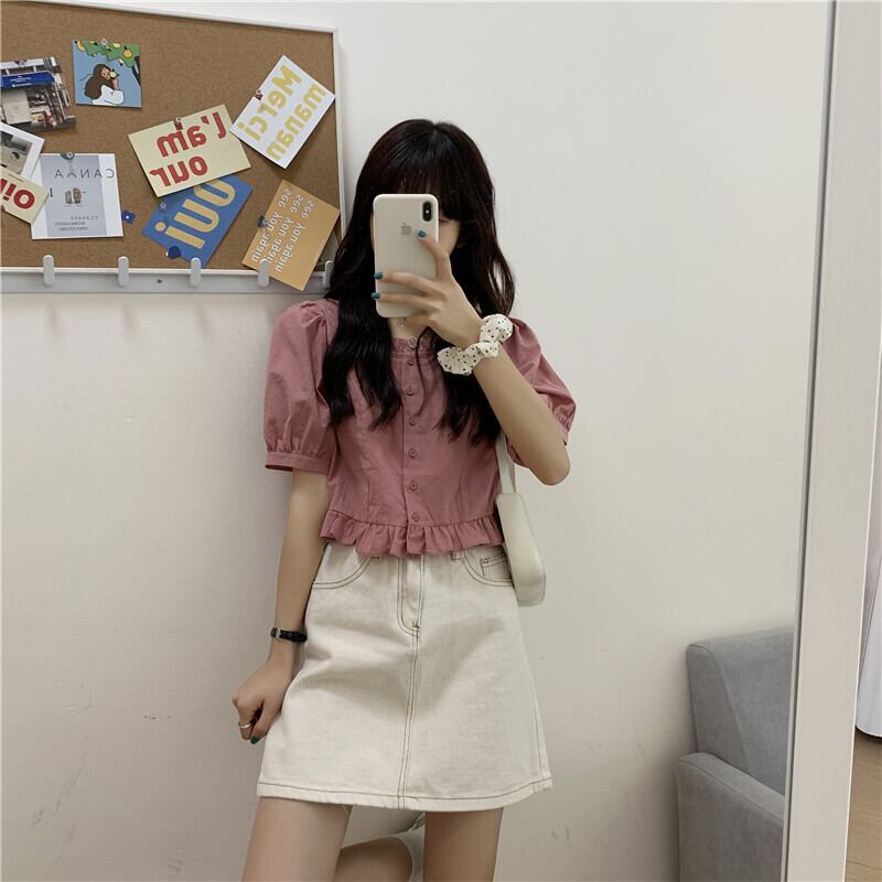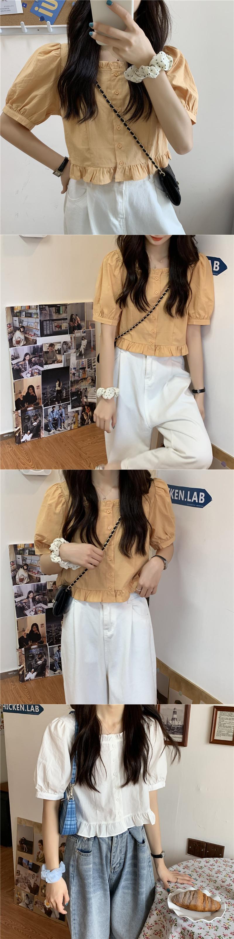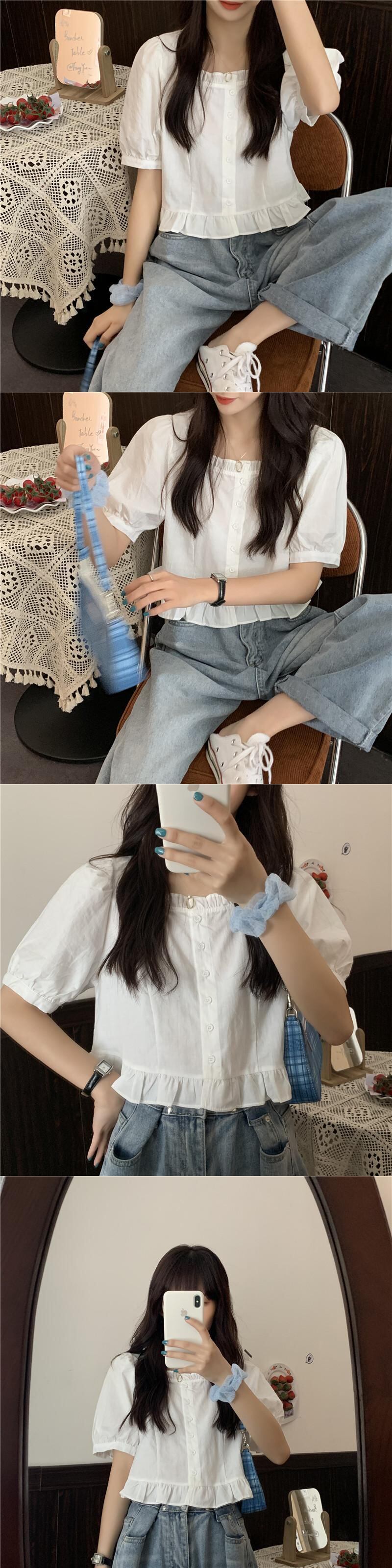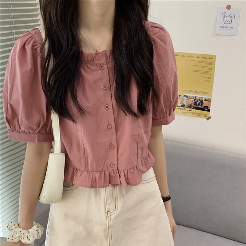 フレンチスクエアネックドールシャツレディース半袖サマーニッチデザインパフスリーブホワイトトップショートスウィートでシック 大人ガーリー キュート カジュアル 夏物 スクウェア 7460068618191740