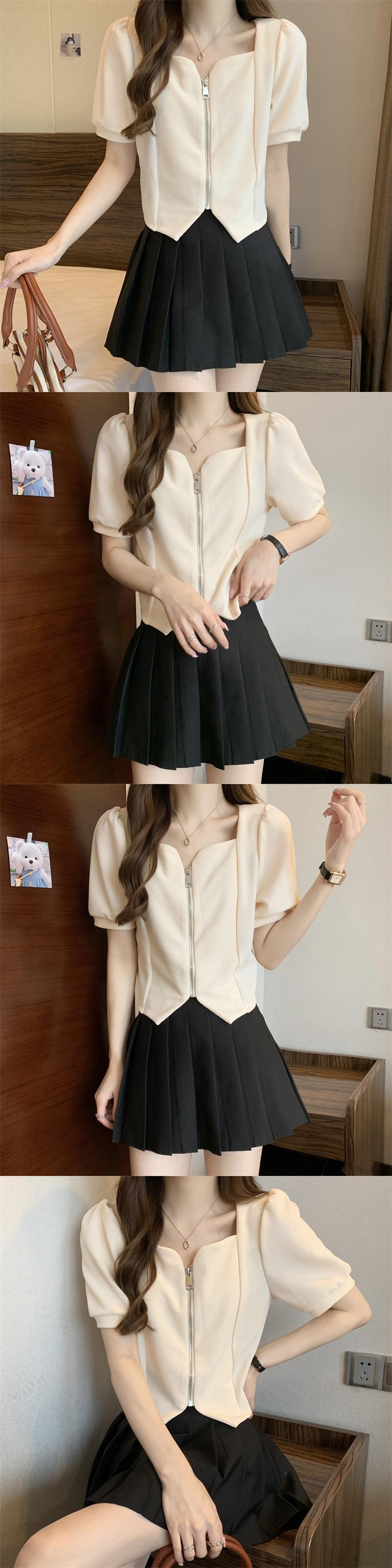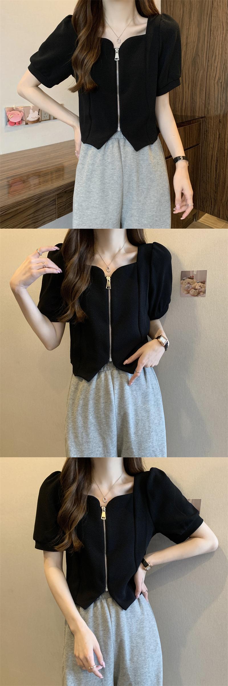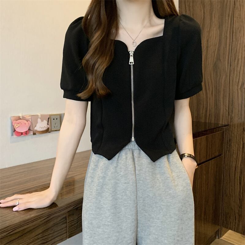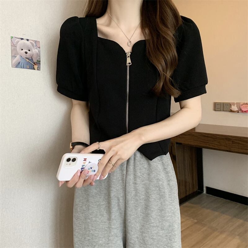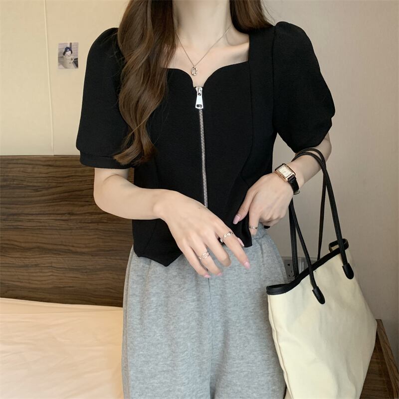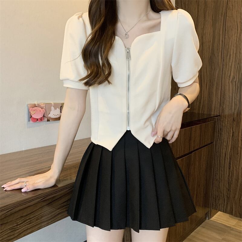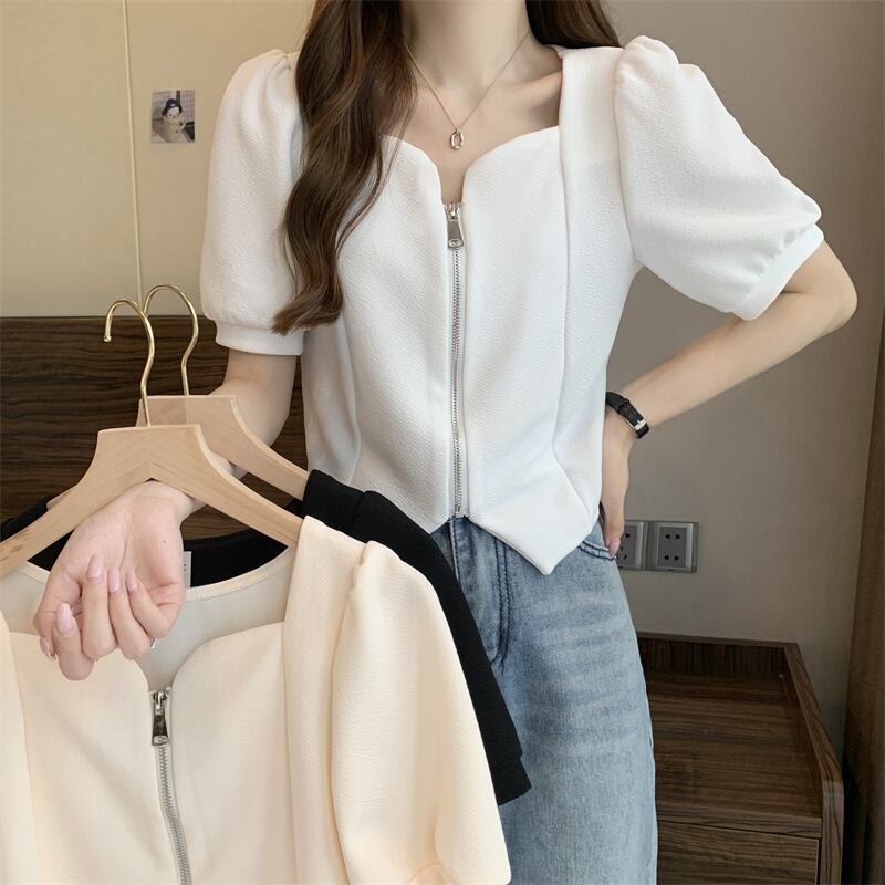 2022年小さな香りのよいフレンチスタイルのスクエアカラーの不規則なパフスリーブ半袖トップシャツ女性の夏のデザインセンスニッチ サマー 夏物 スクウェア 7460010819453407 | framboise21