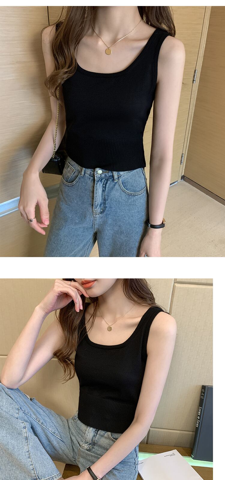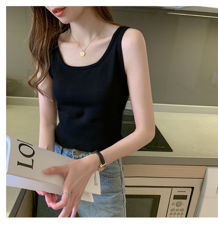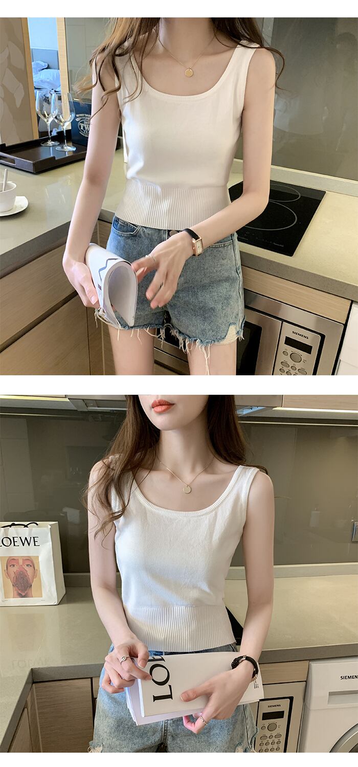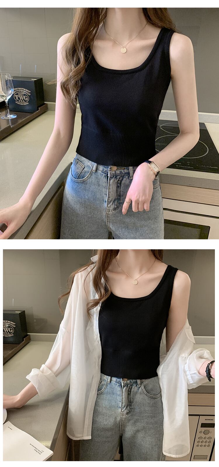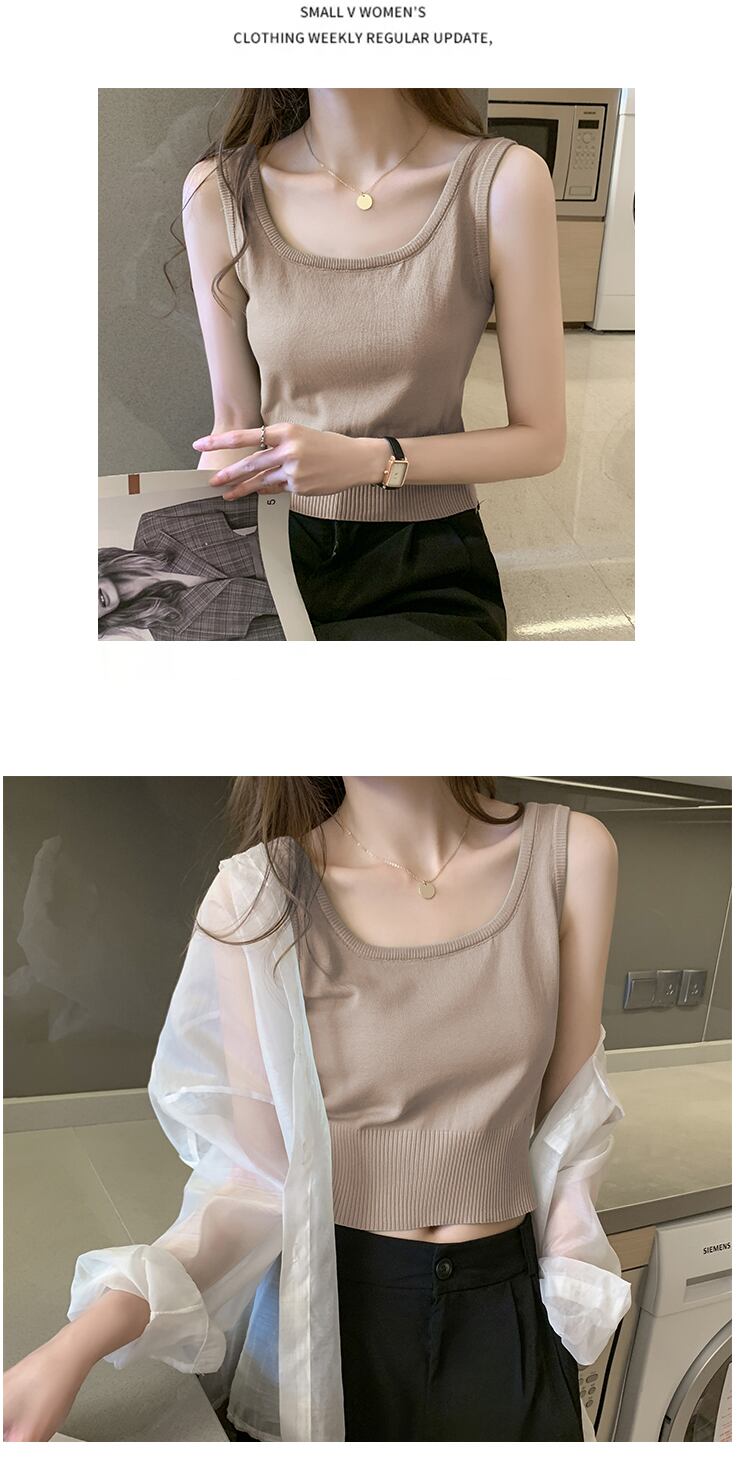 夏のアイスシルクニットキャミソールベスト女性のデザインセンスアウターウェアボトミングシャツ、短い薄いノースリーブトップ ショート サマー 夏物 7460081528985286 | framboise21