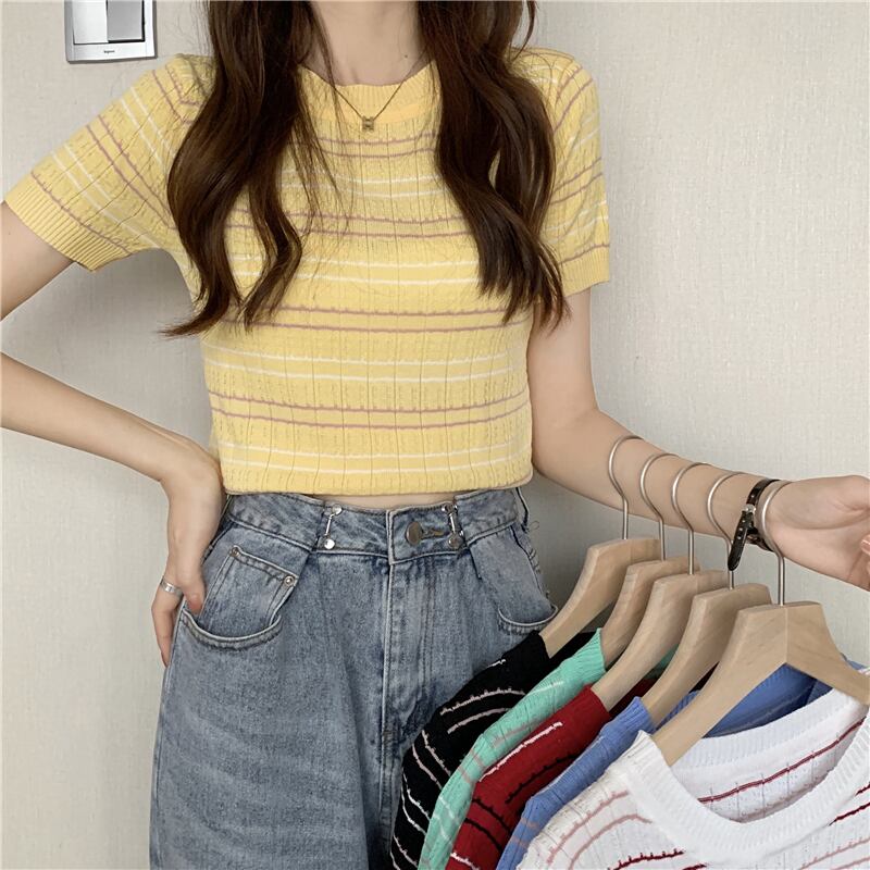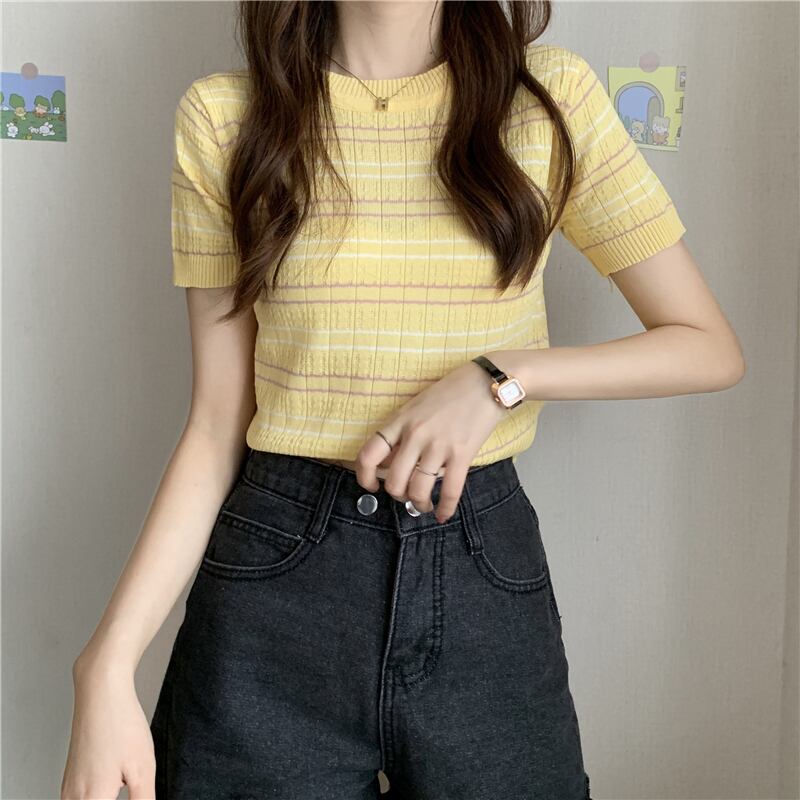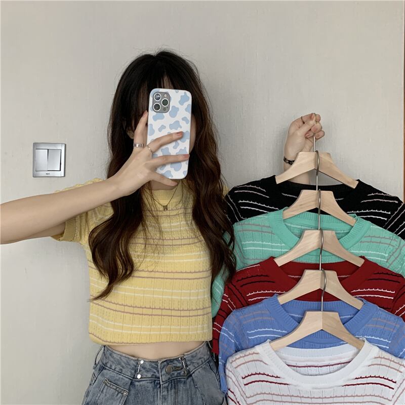 2022年の新しい半袖フロントショルダーTシャツ女性の夏のシックでユニークなショートトップの服のデザインセンスニッチインズタイド サマー 夏物 7460028975559937 | framboise21