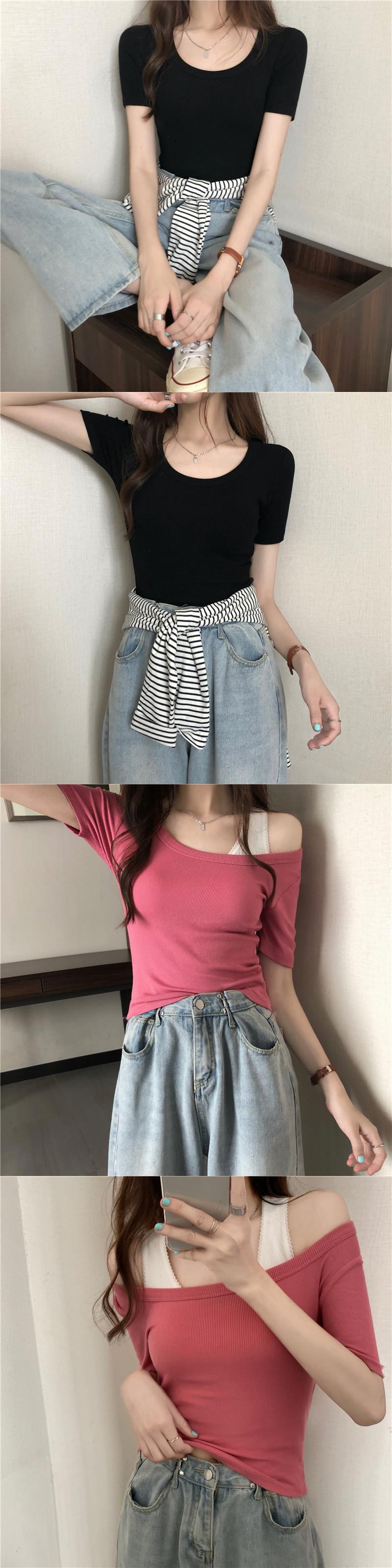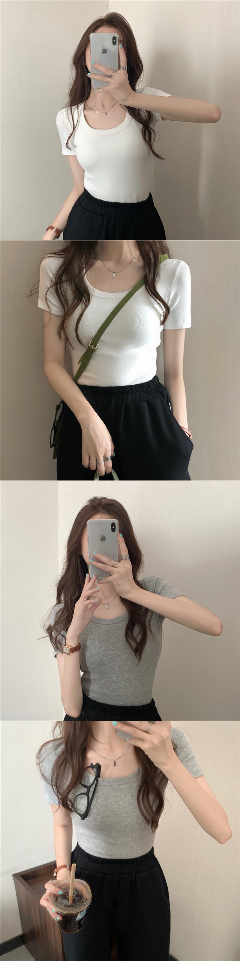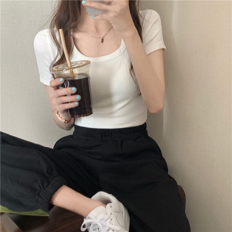 ホワイトTシャツレディース半袖シックTシャツリブ編みコットンサマータイトフィットショートスウィートでスパイシーなピュアな欲望オールマッチトップ 大人ガーリー キュート カジュアル 夏物 7460012576047787 | framboise21