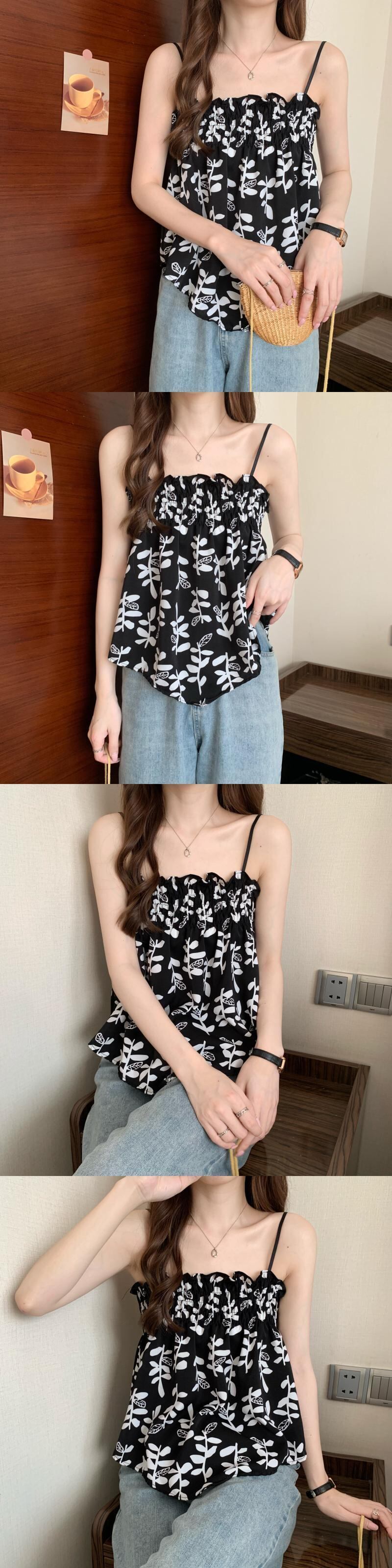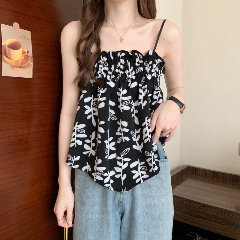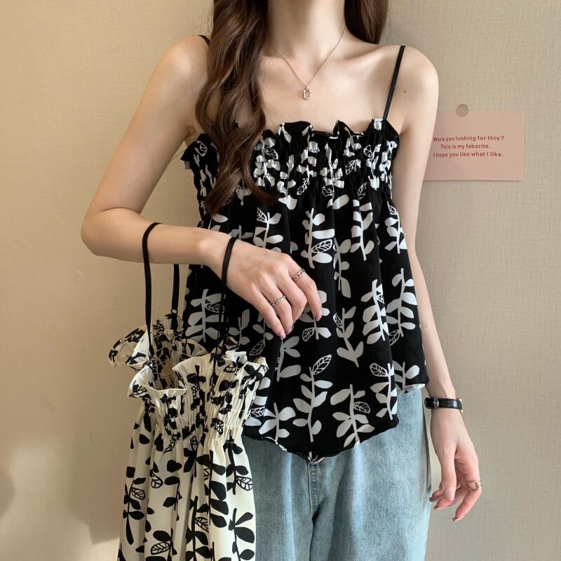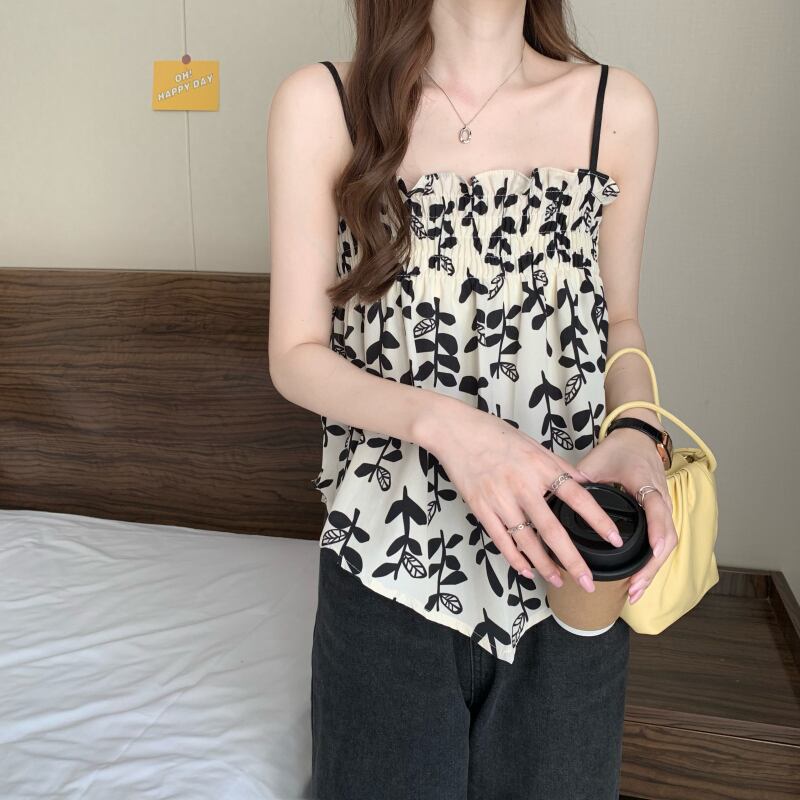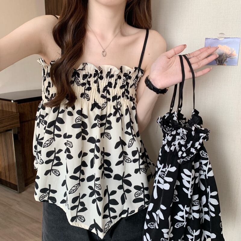 花柄フレンチフォールドスモールサスペンダーレディースイレギュラーデザインセンスニッチアウターウェアベストシックインナーチューブトップトップス 7460093833936907 | framboise21