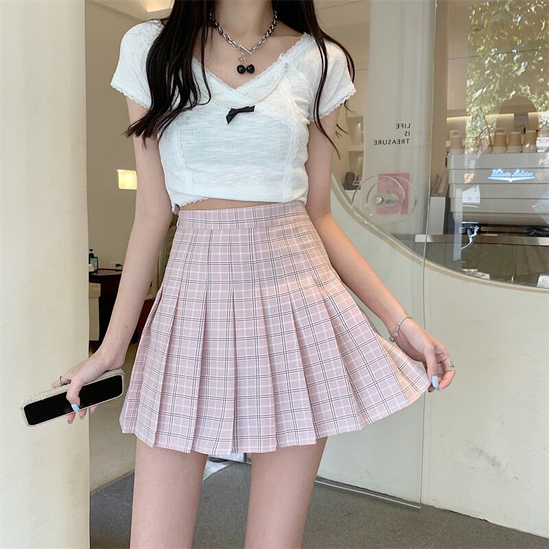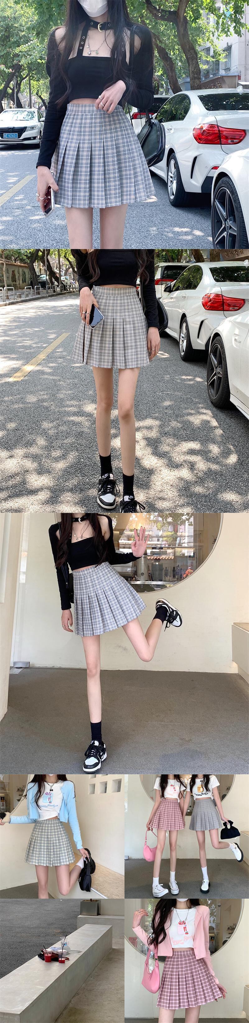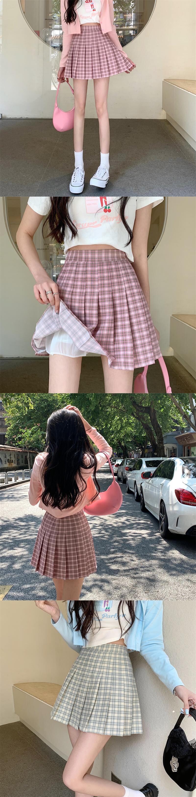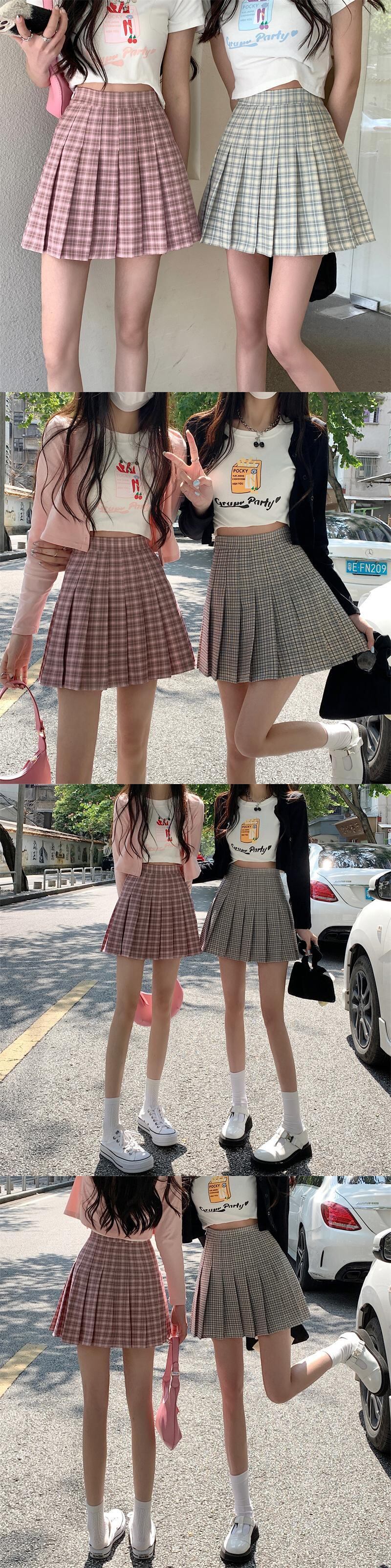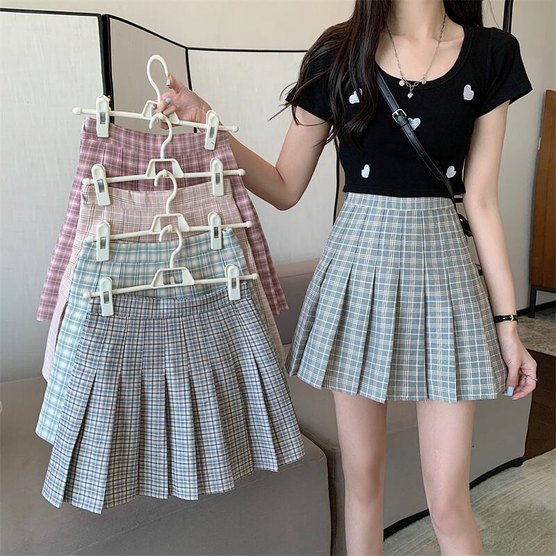 2022年新作サマーチェック柄AラインプリーツスカートJKプリーツスカートハイウエストスモールショートスカートレディースサマースカート ハイウェスト 夏物 7460089568904803 | framboise21