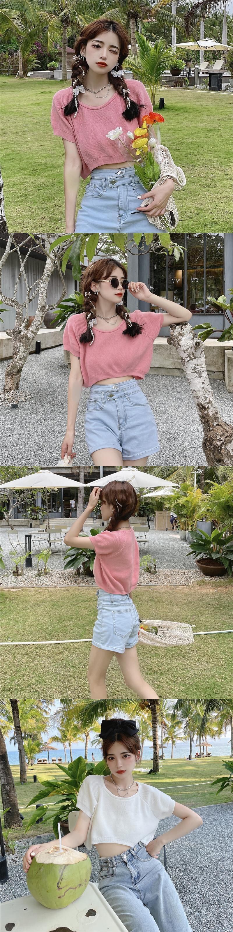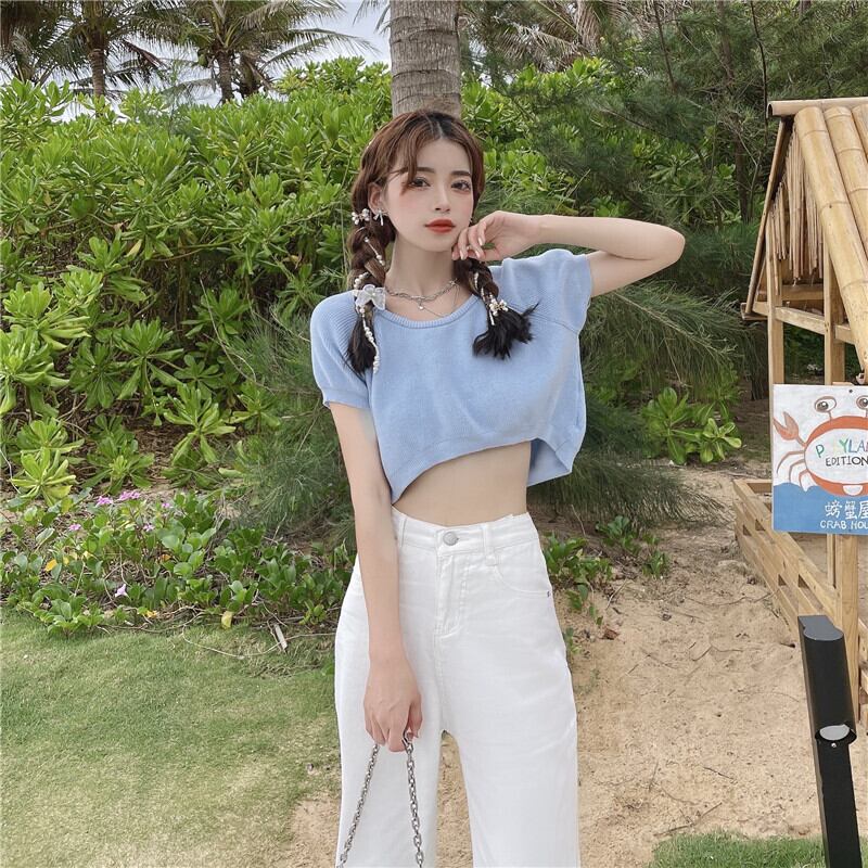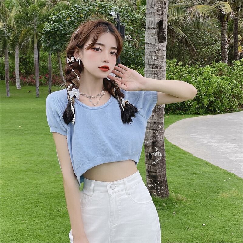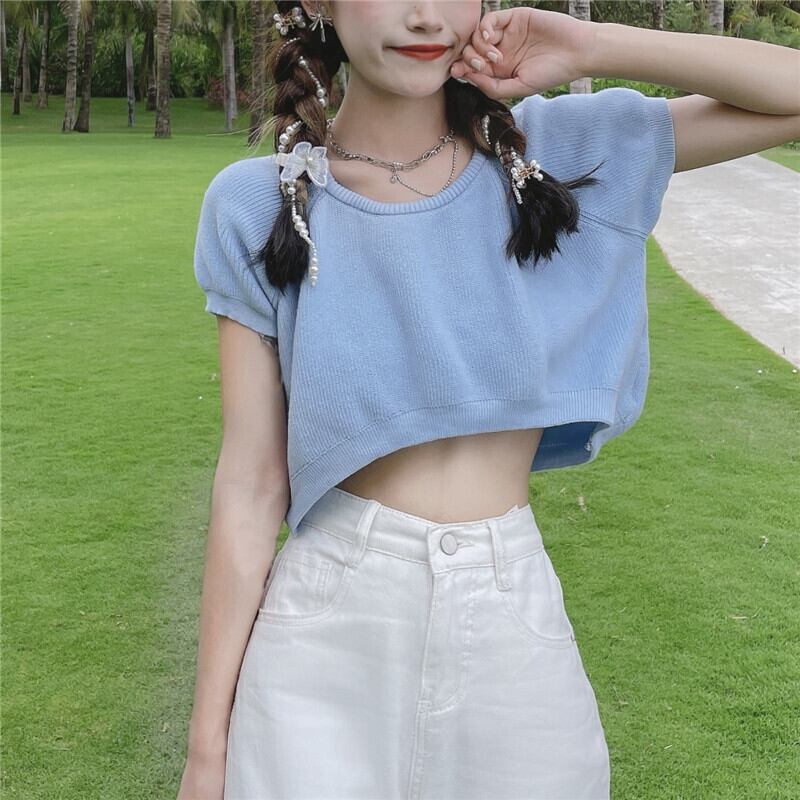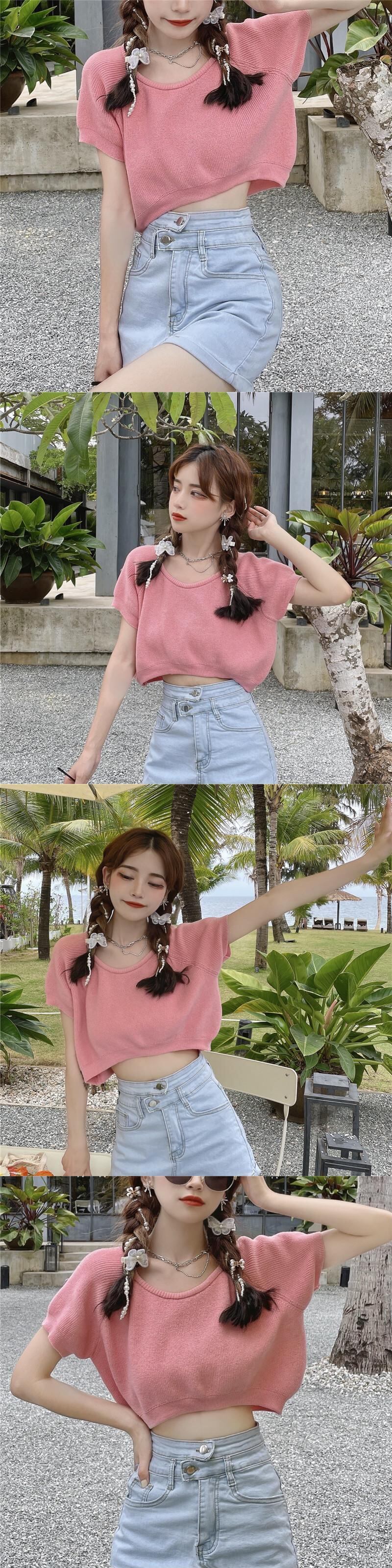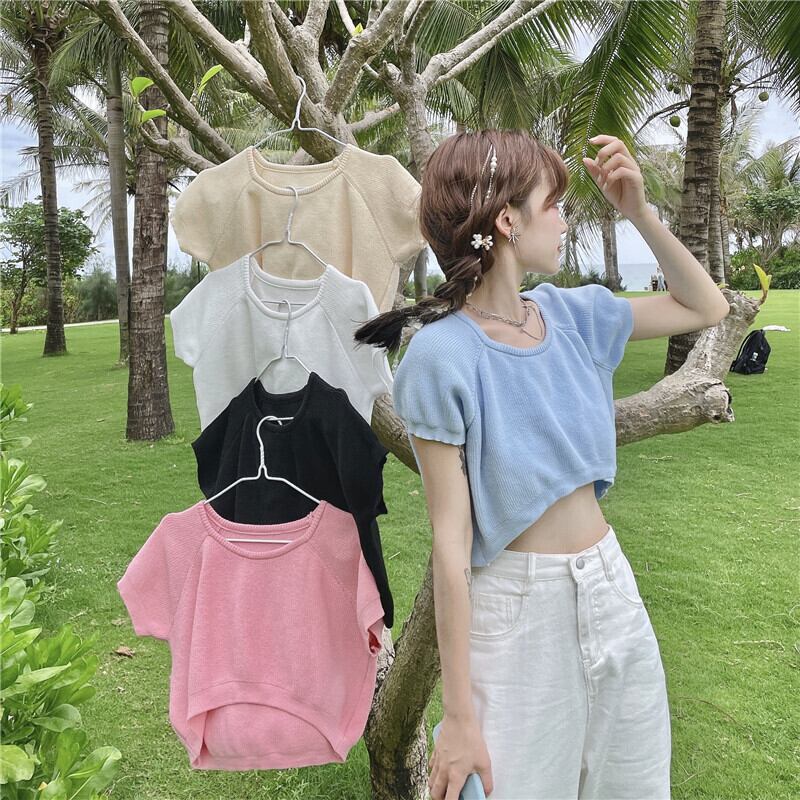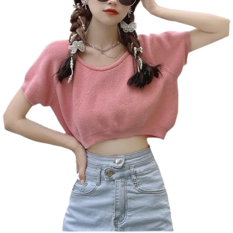 ピンクニット半袖Tシャツレディースサマードレス2022新しいショートスタイルクロップドへそ甘くてスパイシーな純粋な欲望トップシック 大人ガーリー スウィート キュート カジュアル 夏物 ピュア 7460076061871234 | framboise21