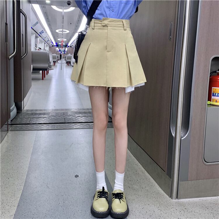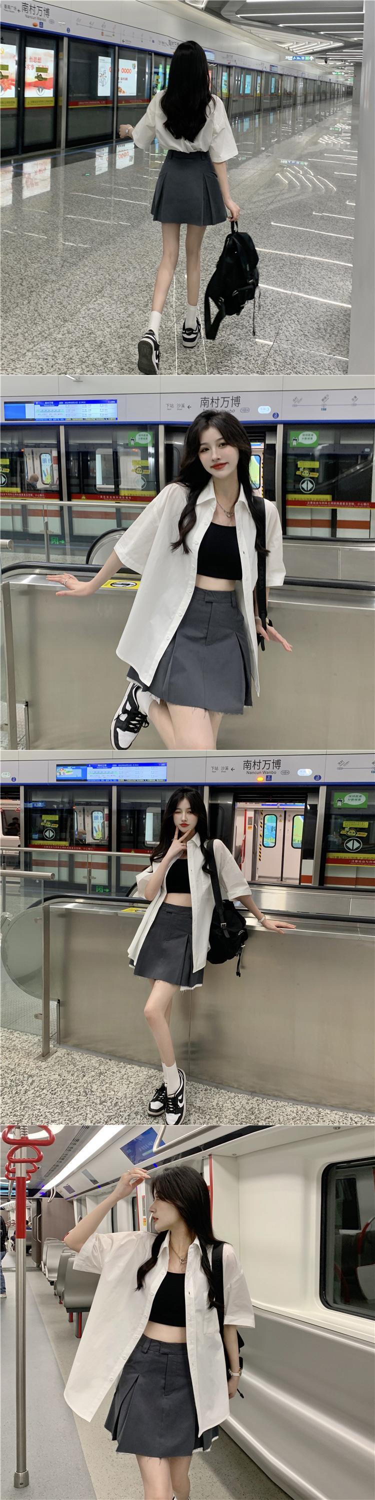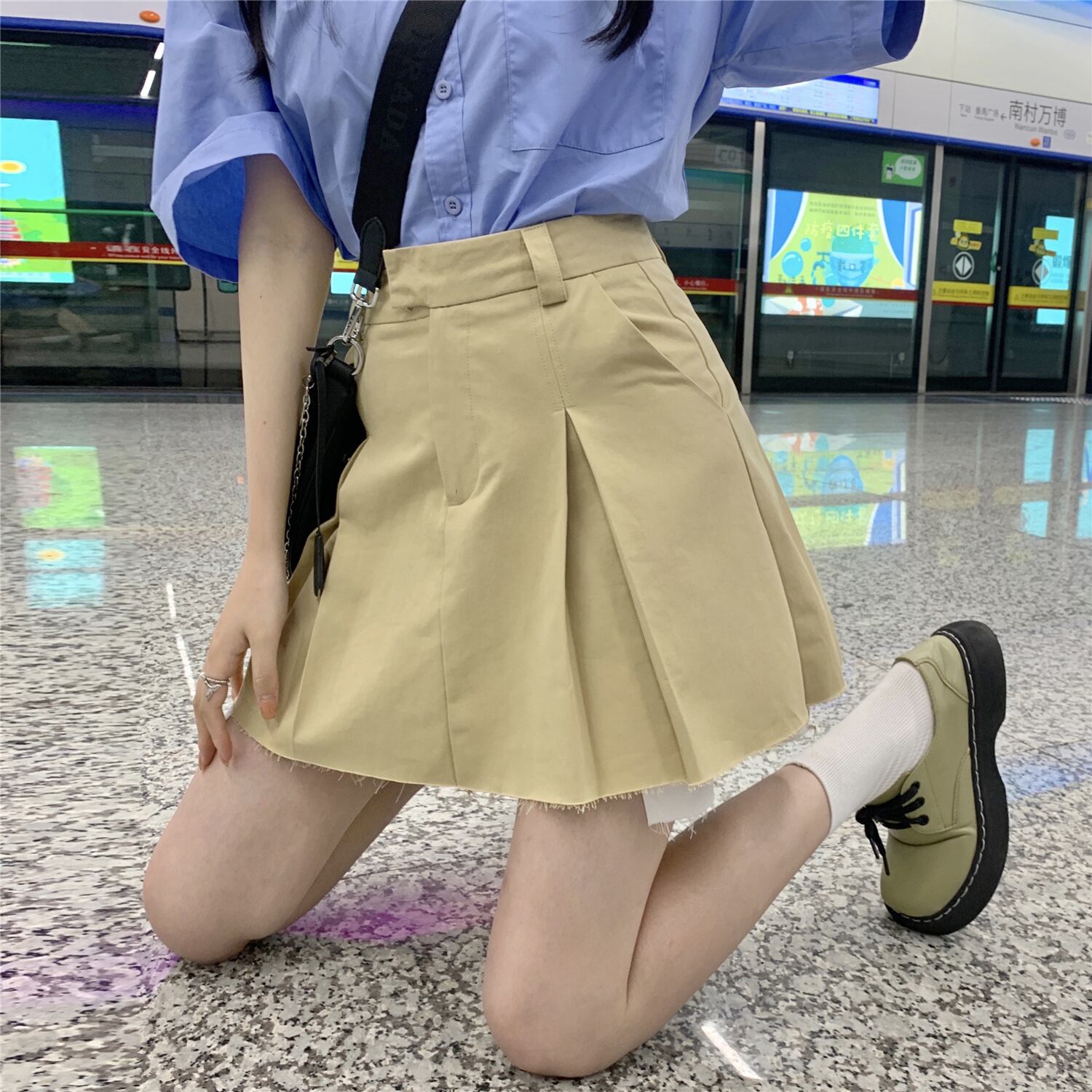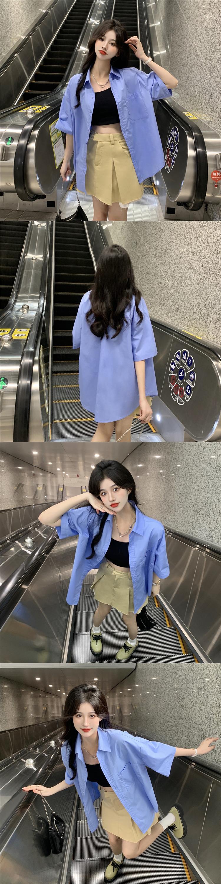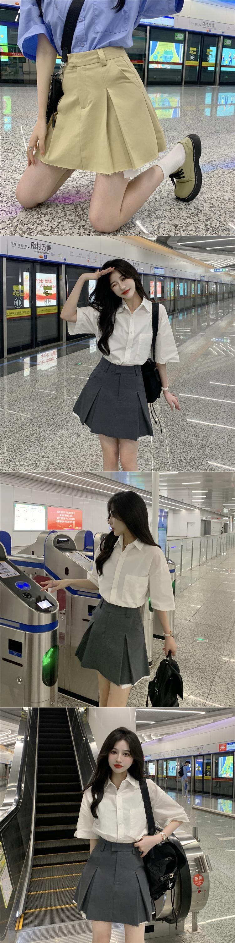 色:青いシャツ,白のシャツ,カーキ色のスカート,グレースカート