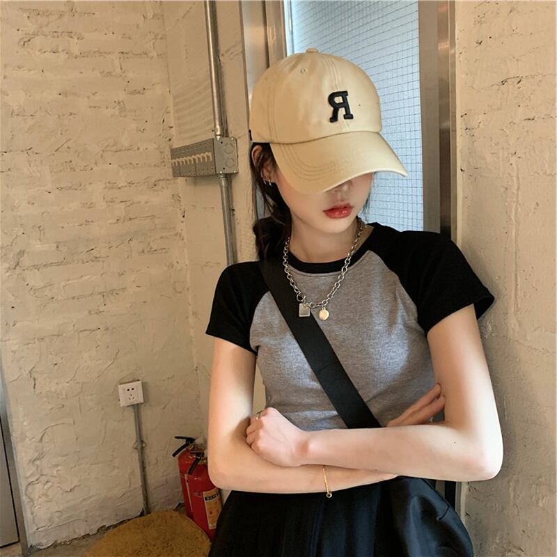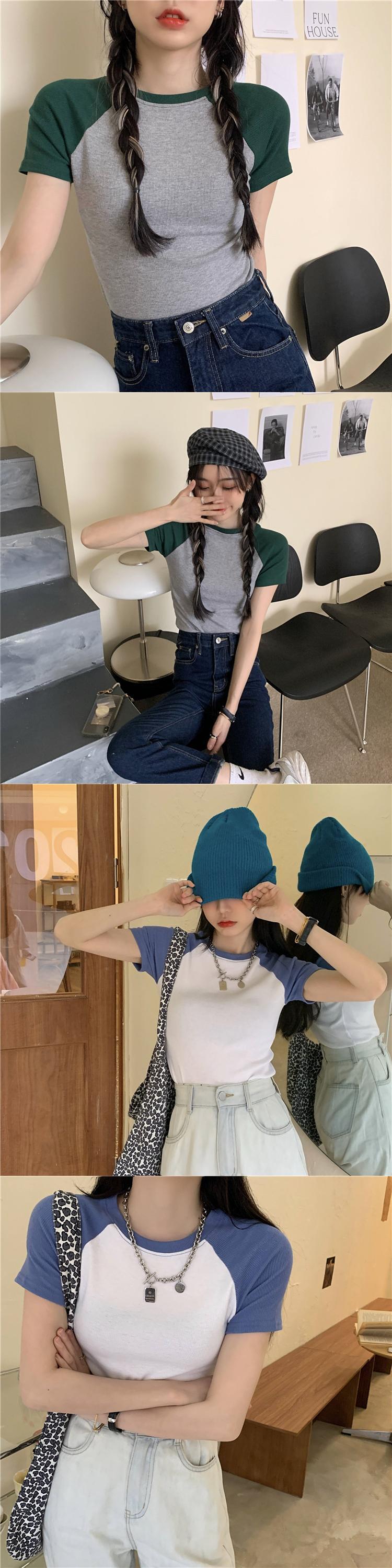 半袖Tシャツレディース2022夏シック香港フレーバーレトロコントラストカラータイトショートボトミングシャツトップス服インタイド サマー 夏物 7460049171707178 | framboise21