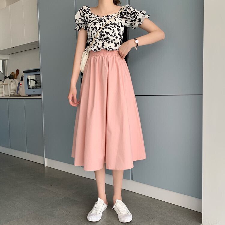 小さな男145ハイウエストビッグスイングスカート女性150ショートオールマッチピンクaラインスカートミドルスカート夏 ハイウェスト サマー 夏物 7460019812523689 | framboise21