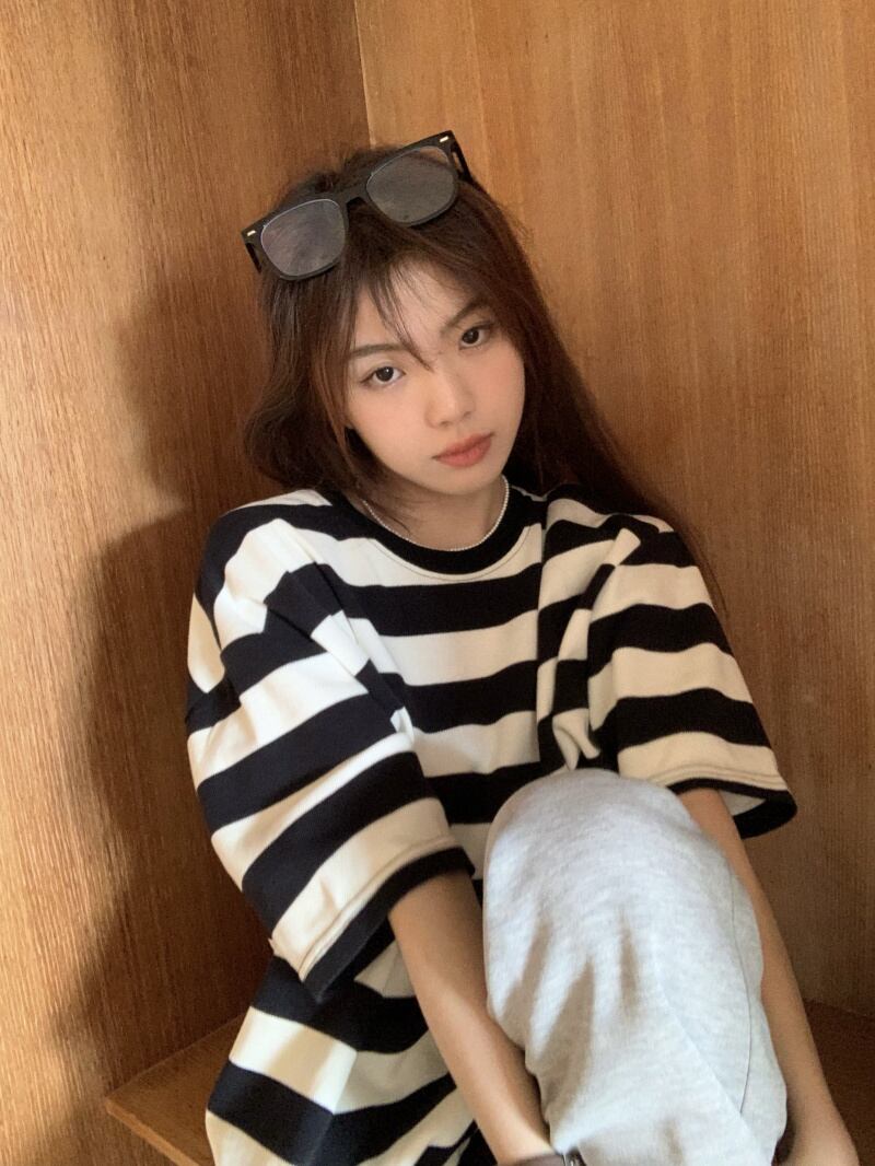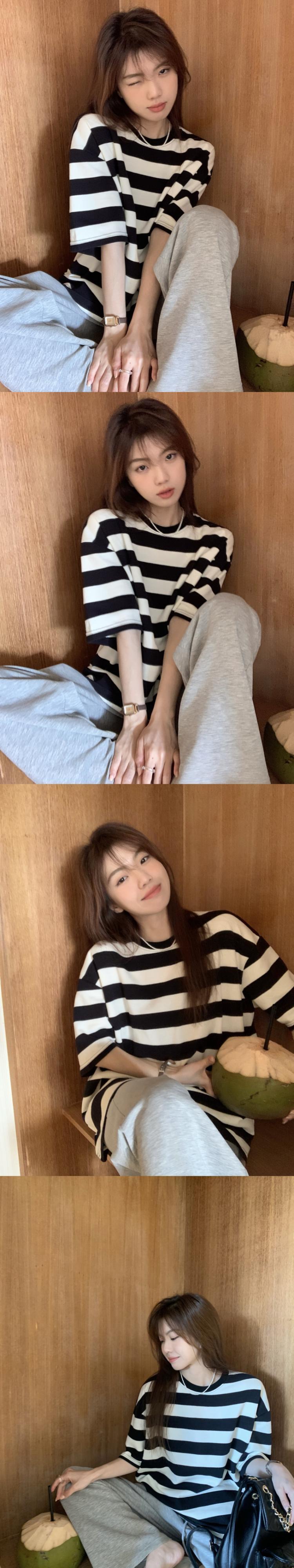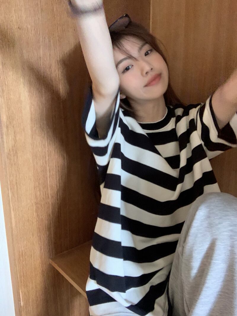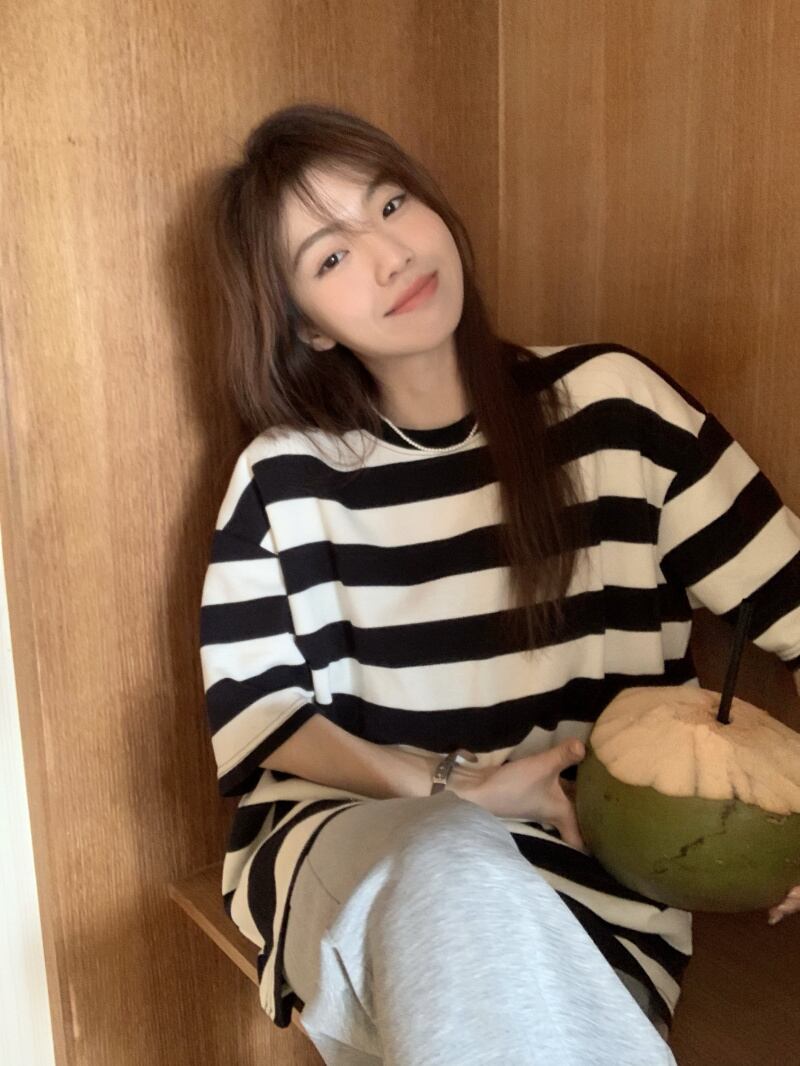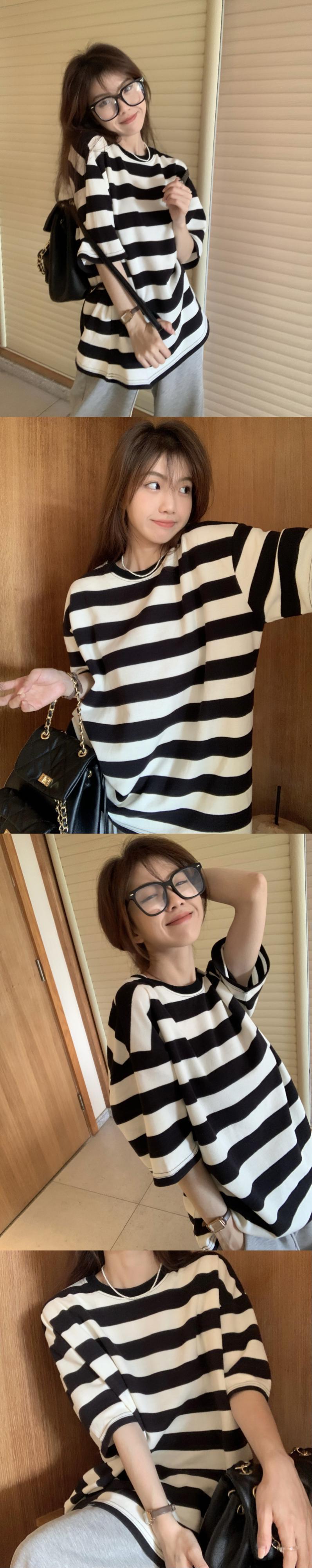 黒と白のストライプの半袖Tシャツレディースインスティッドサマーカジュアルラウンドネックルーズシンオーバーサイズミドル丈トップ ホワイト ブラック 夏物 Oネック 7460056412967162 | framboise21