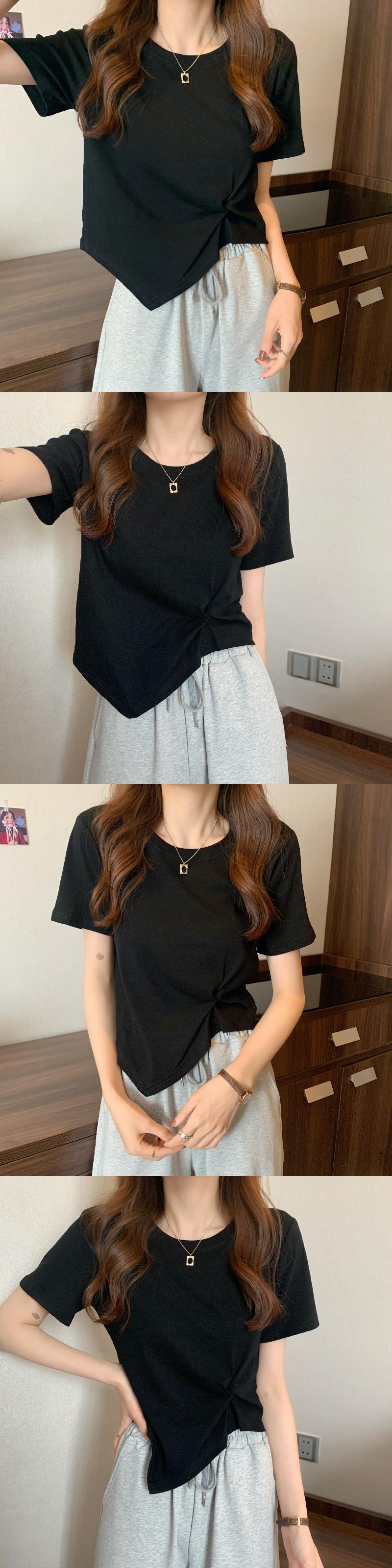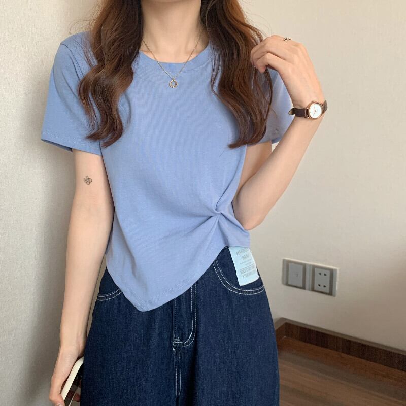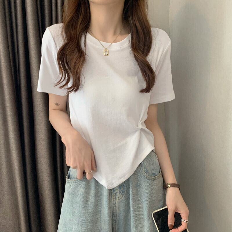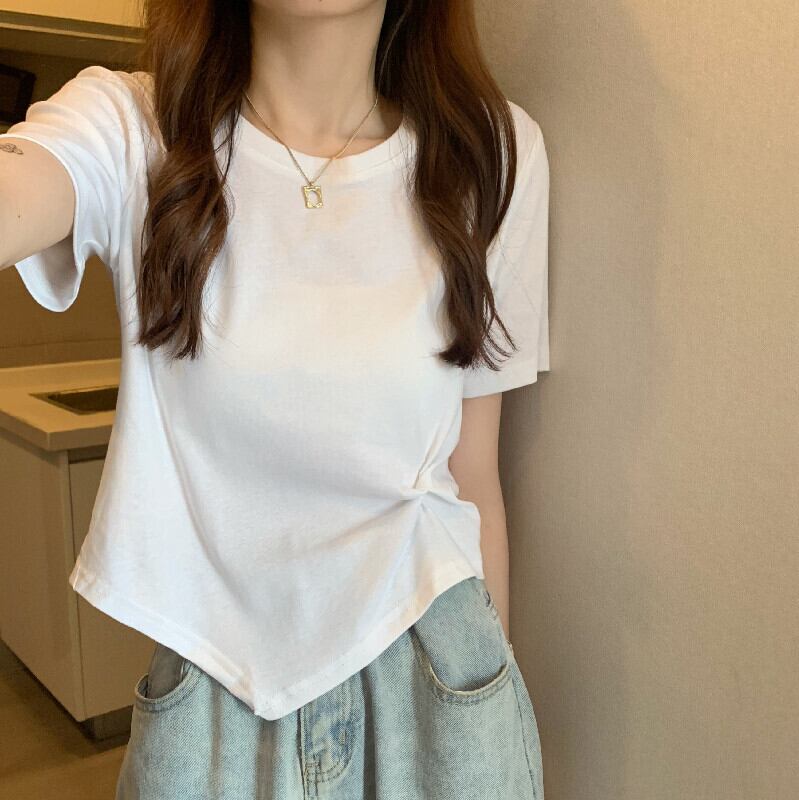 スリムに見える不規則なTシャツの女性の夏の新しいスリムフィットデザインのニッチな半袖ショートトップ、ハイウエストワイドレッグパンツ サマー 夏物 74600674594545 | framboise21