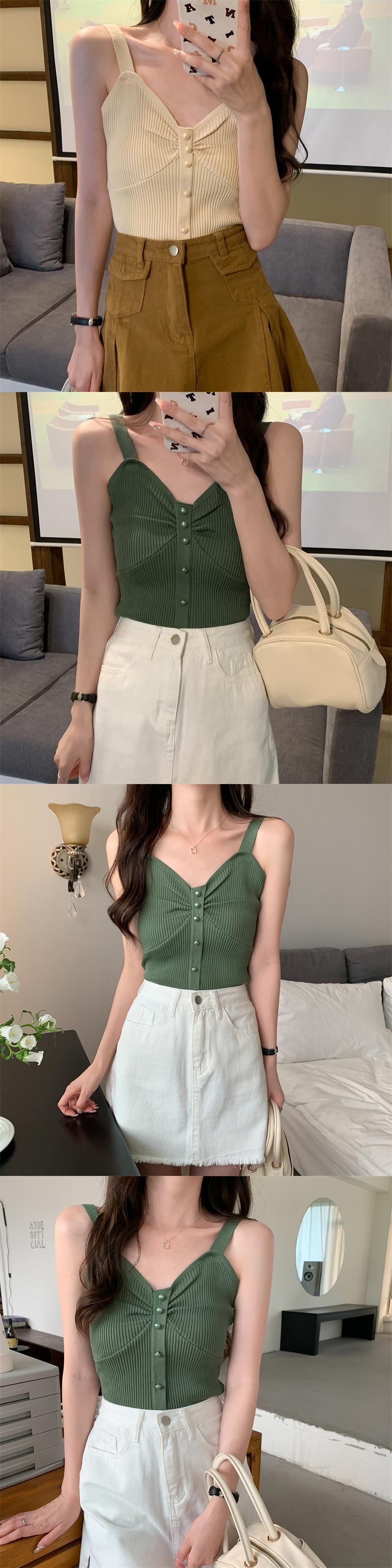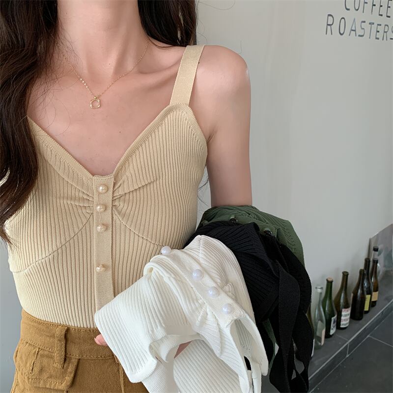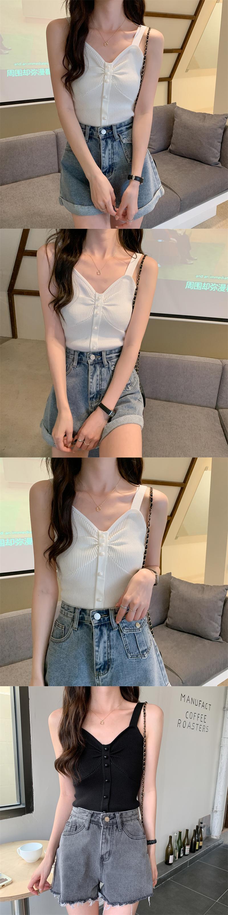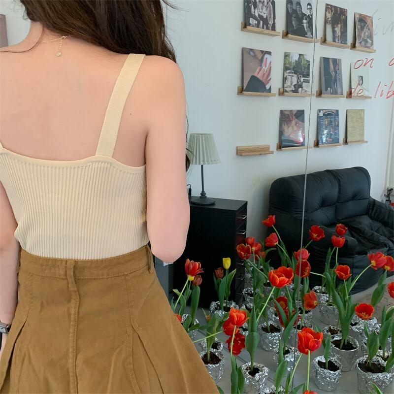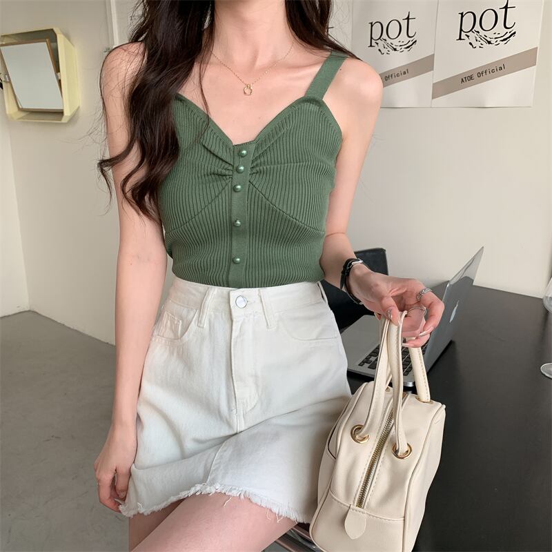 ニッチなデザイン感と短くて薄いノースリーブのボトミングトップを備えたブラックニットキャミソールレディースサマーインナーウェア ショート 夏物 7460046666114354 | framboise21
