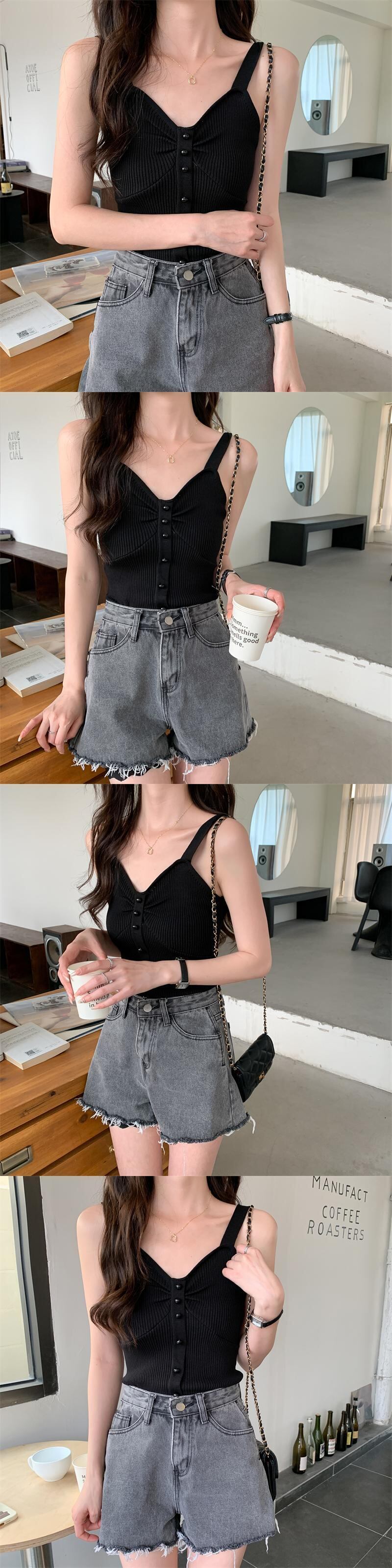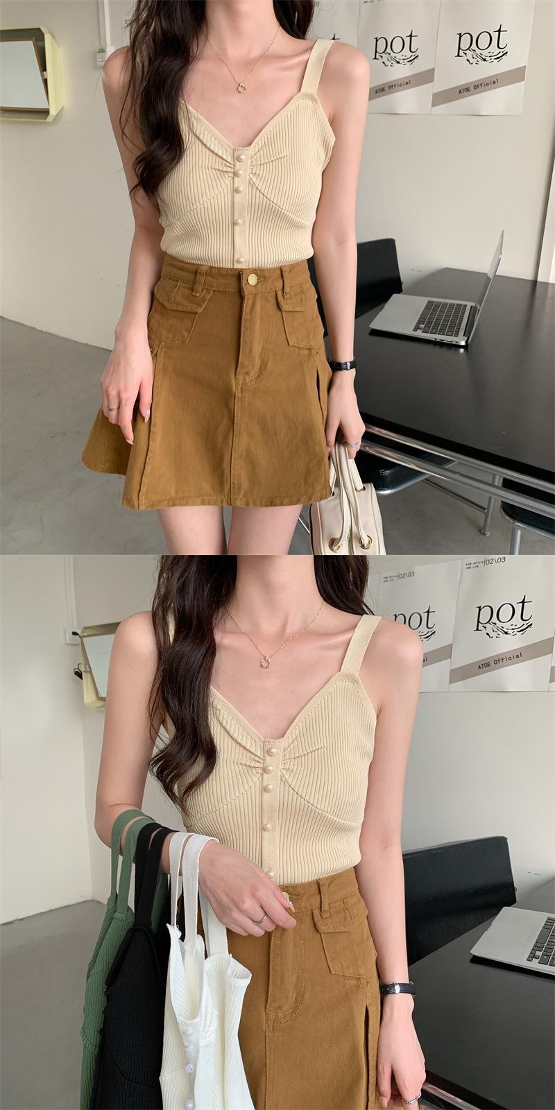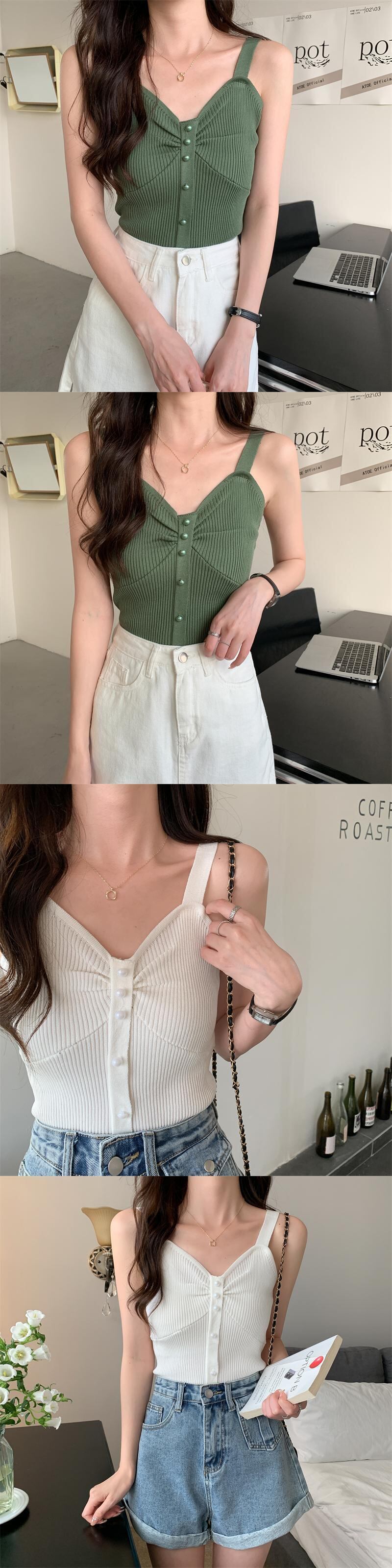 ニッチなデザイン感と短くて薄いノースリーブのボトミングトップを備えたブラックニットキャミソールレディースサマーインナーウェア ショート 夏物 7460046666114354 | framboise21
