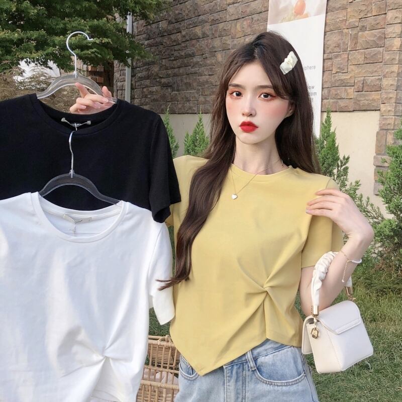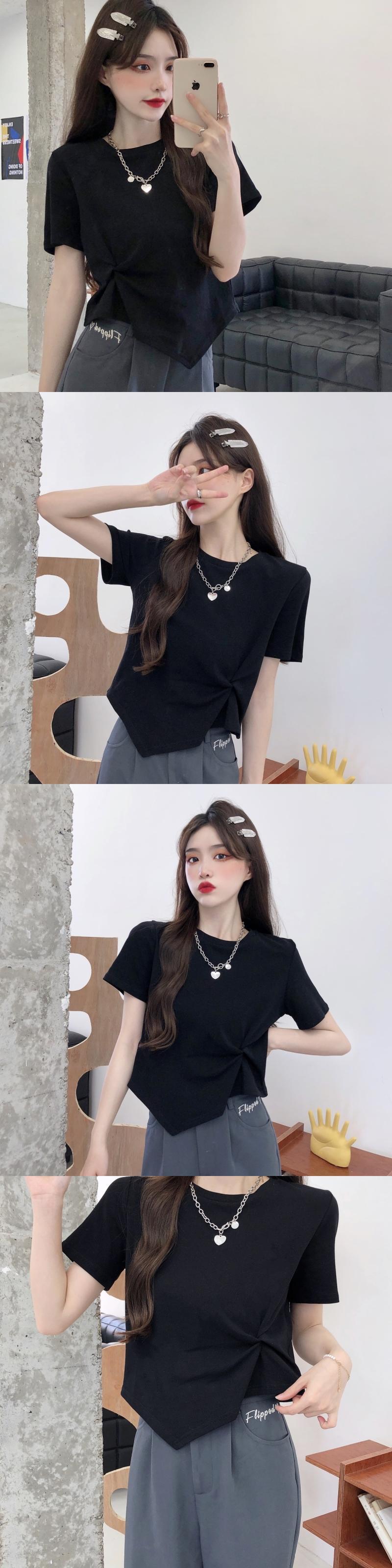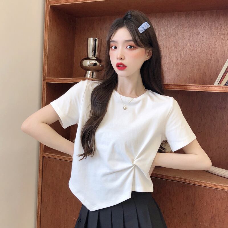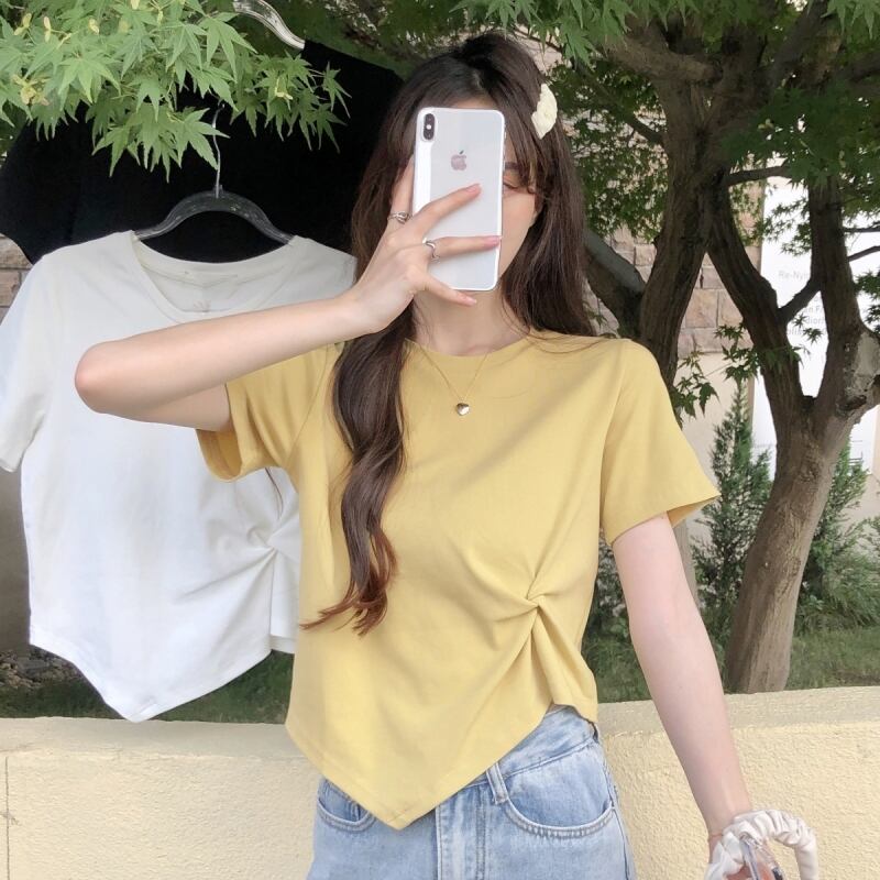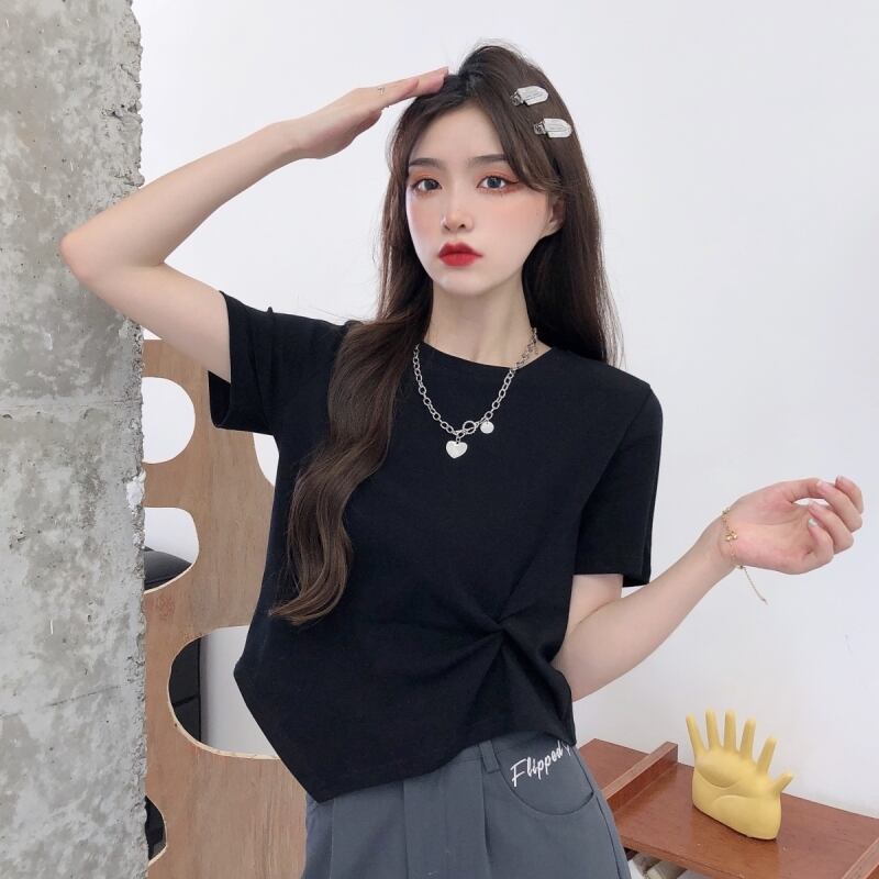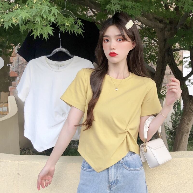 ショルダーTシャツレディース半袖2022夏新バージョンファッション不規則カジュアルオールマッチトップインタイド ショート ハーフスリーブ サマー 夏物 7460020119541878 | framboise21