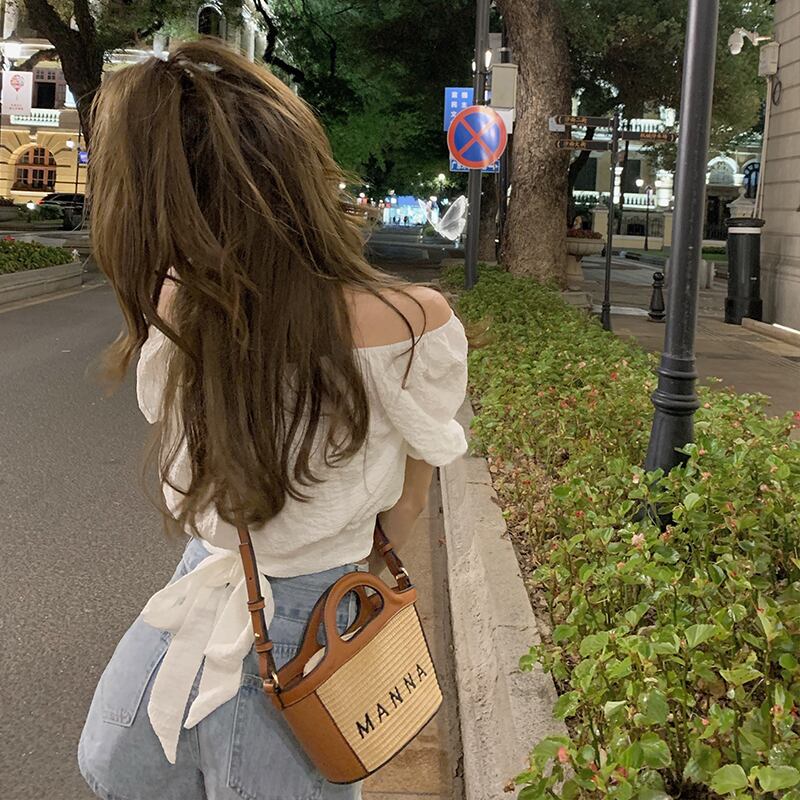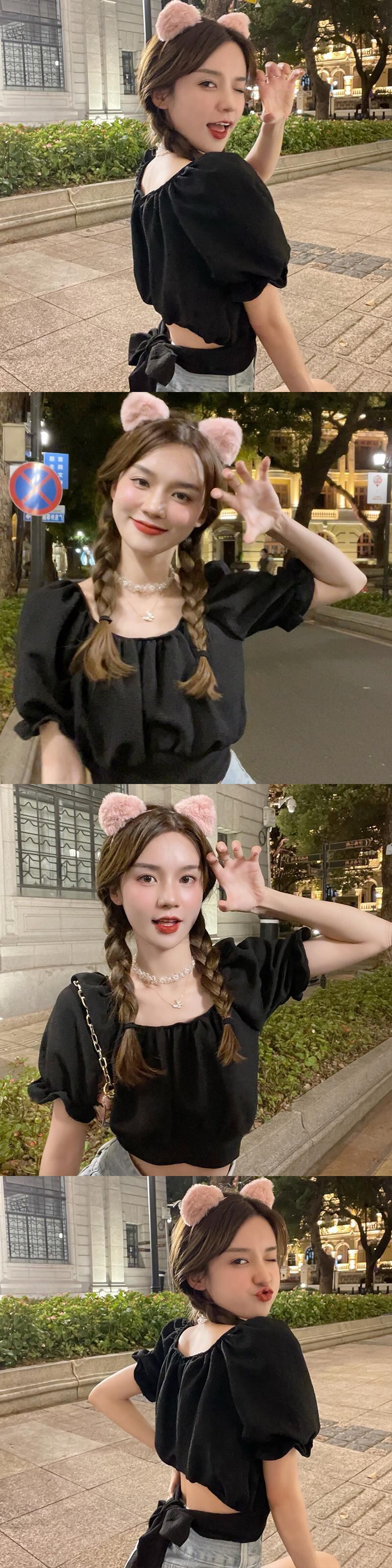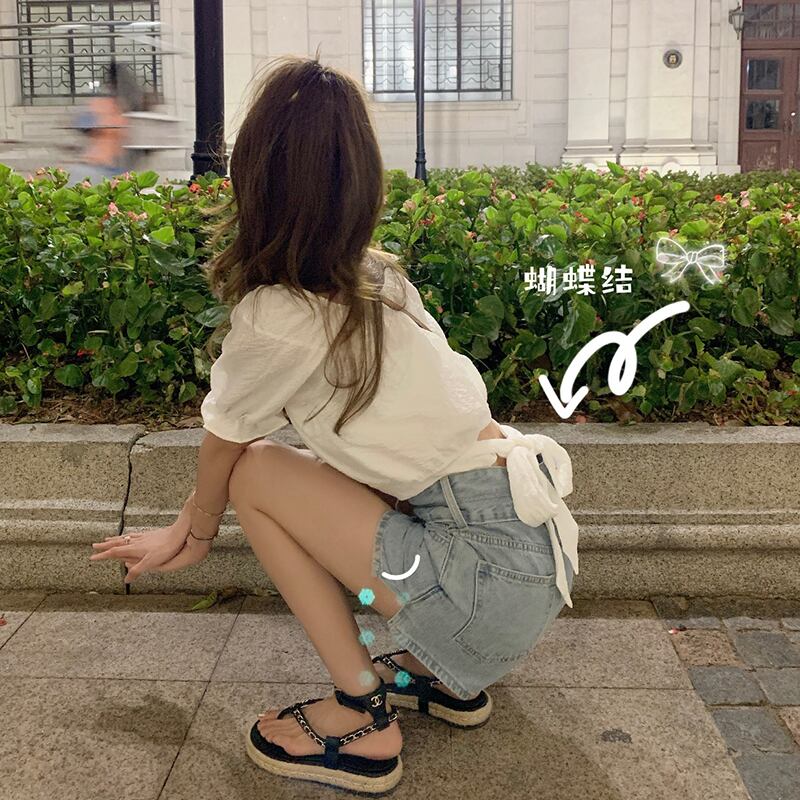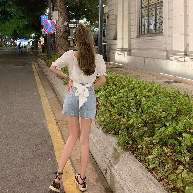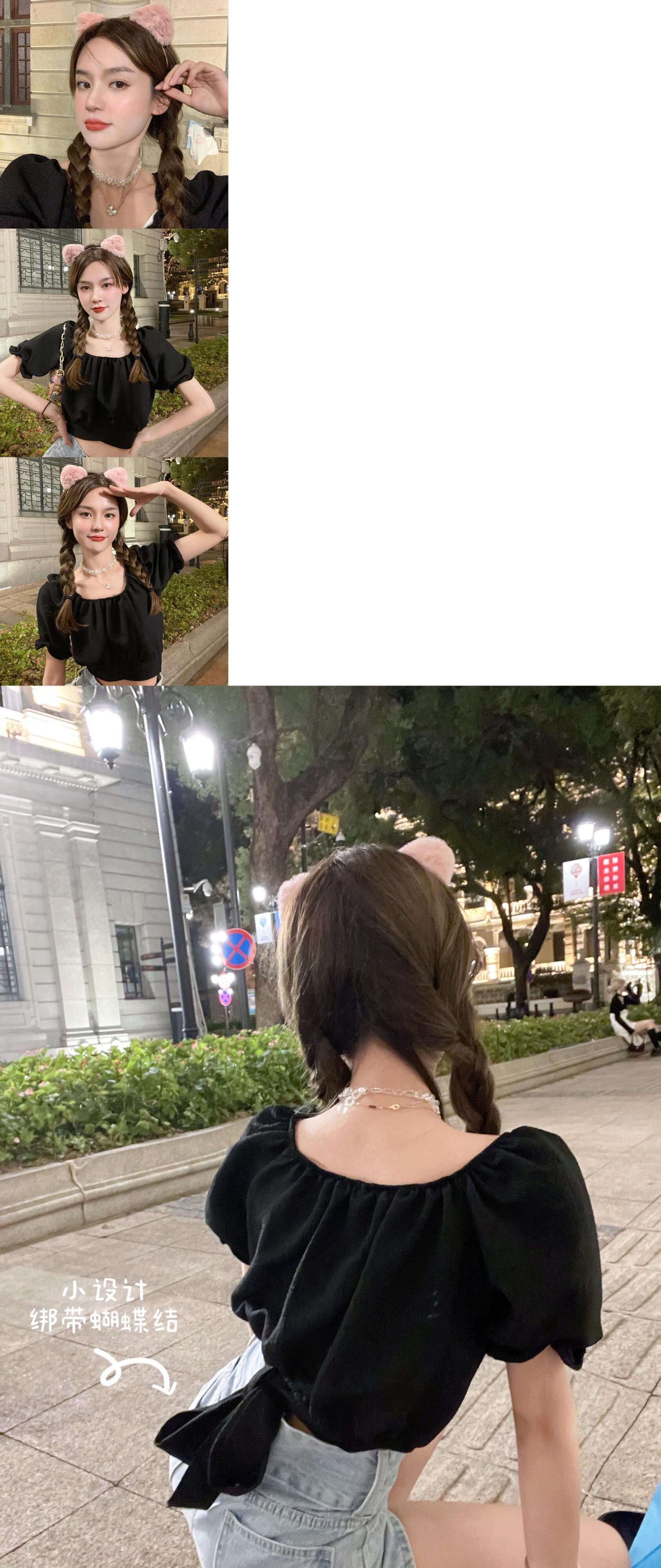 ニッチなハイウエストショートトップスパフスリーブフレンチシックな女性の夏の半袖の新しい甘いデザインのシャツ ハイウェスト 大人ガーリー スウィート キュート カジュアル サマー 夏物 7460049621945663 | framboise21
