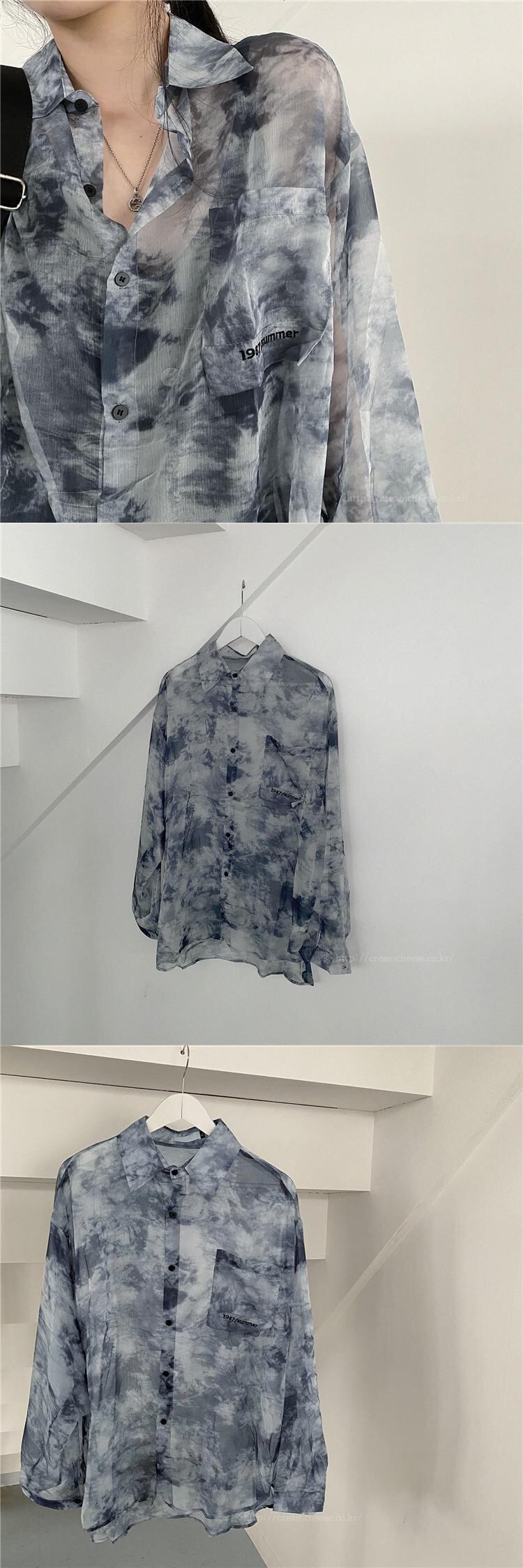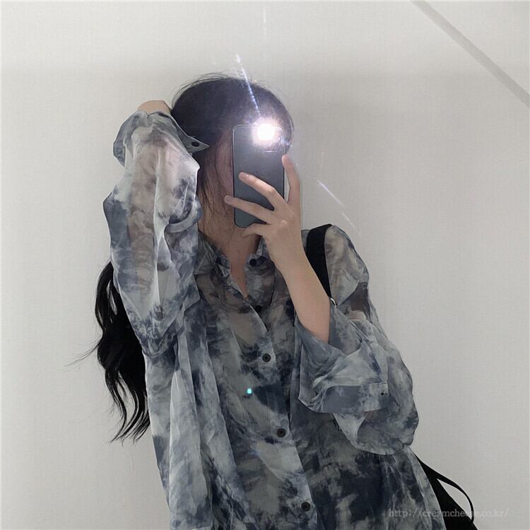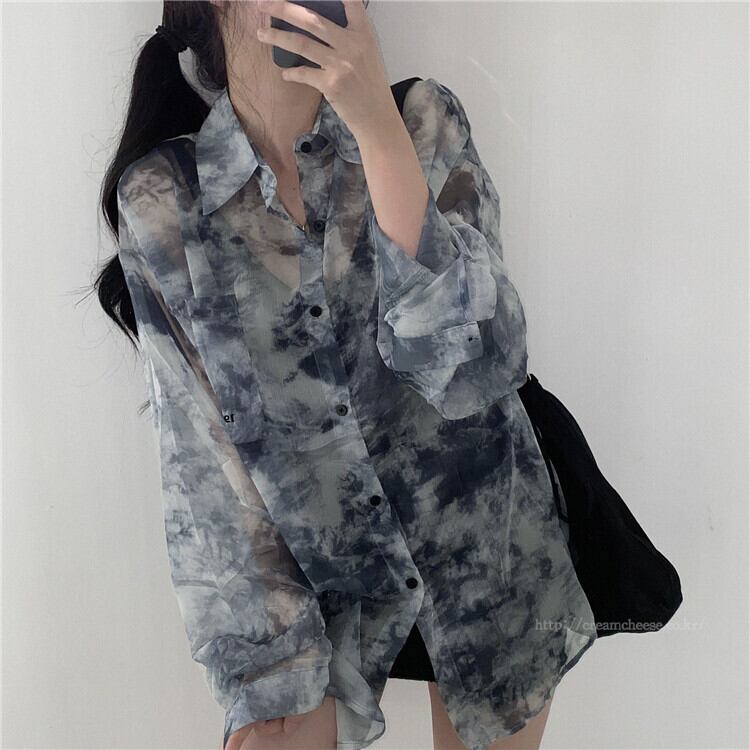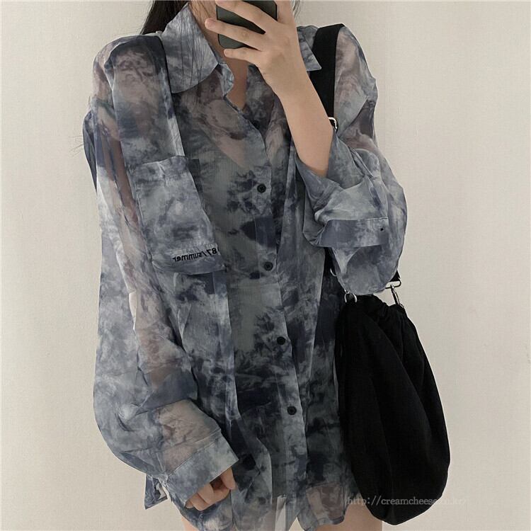 絞り染めの日焼け止めシャツの女性の夏は非常に妖精シックなトップデザインセンスニッチミディアムと長く薄いシフォンコートです ロング サマー 夏物 746002182150221 | framboise21