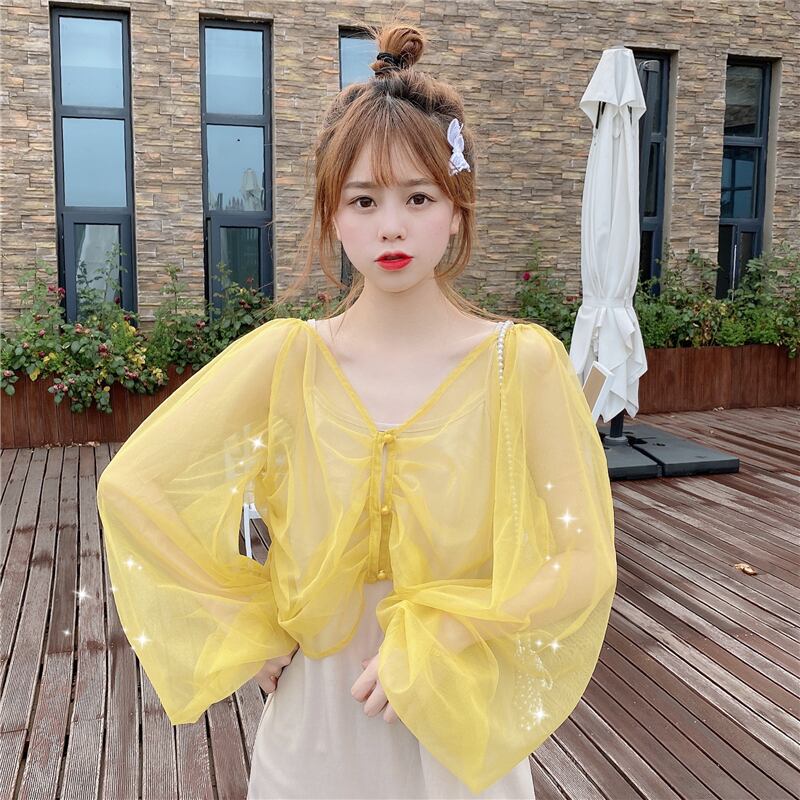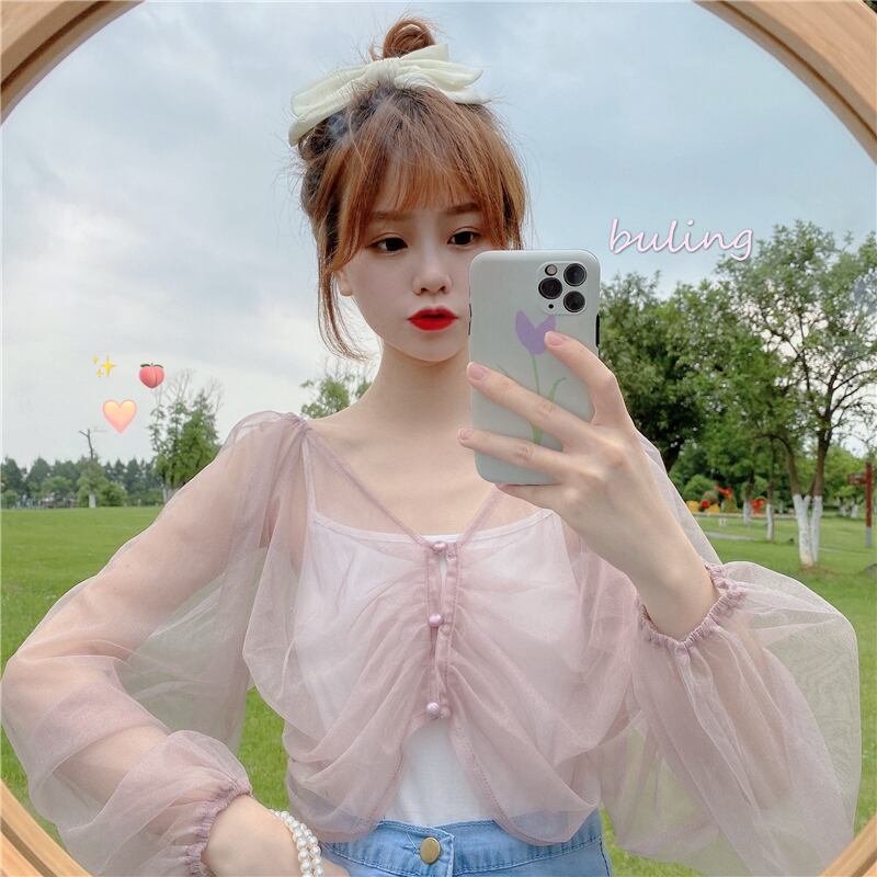 メッシュ日焼け止めレディース2022年新夏薄手ルーズアウターウェアオールマッチシフォンカーディガン長袖ショートトップ ロング サマー 夏物 7460044395862951 | framboise21