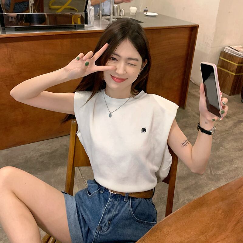 黒と白のストライプニットノースリーブTシャツレディースサマーオールマッチルーズベストデザインセンスショートフロントとバックロングショートトップトレンディ ホワイト ブラック 夏物 7460047778382792 | framboise21