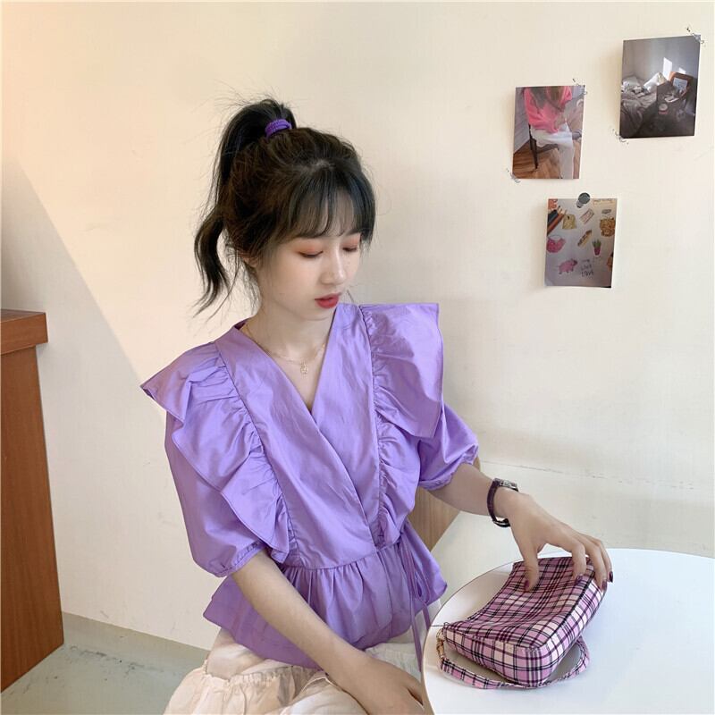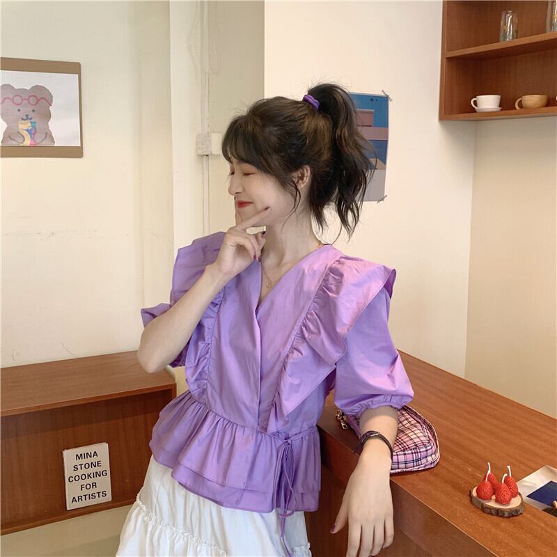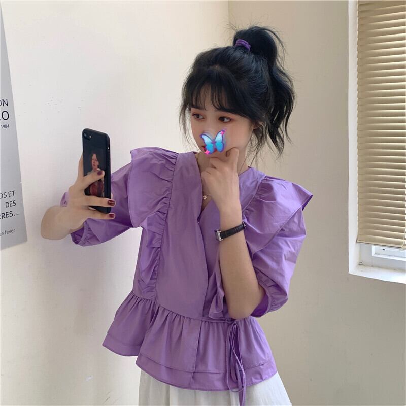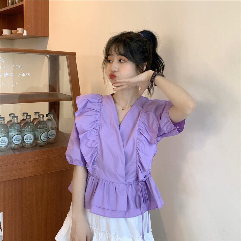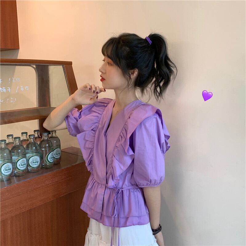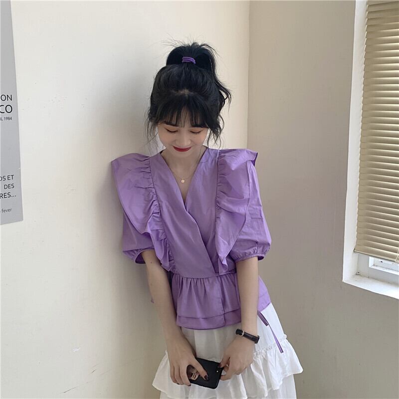 夏の甘い半袖フレンチシックパフスリーブトップホワイトウエストホワイトシャツレディースシフォンデザイン薄片 大人ガーリー スウィート キュート カジュアル サマー 夏物 7460062984565771 | framboise21