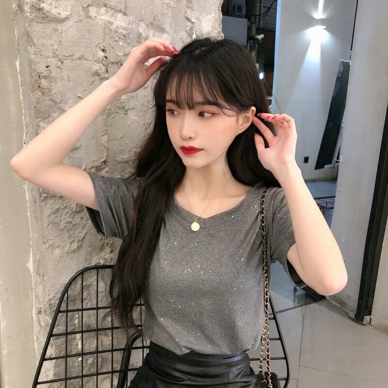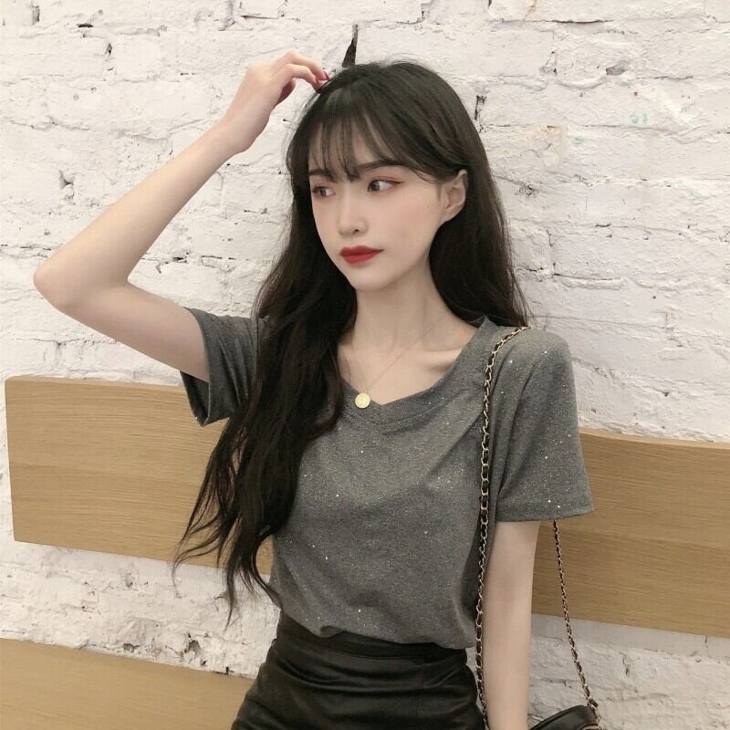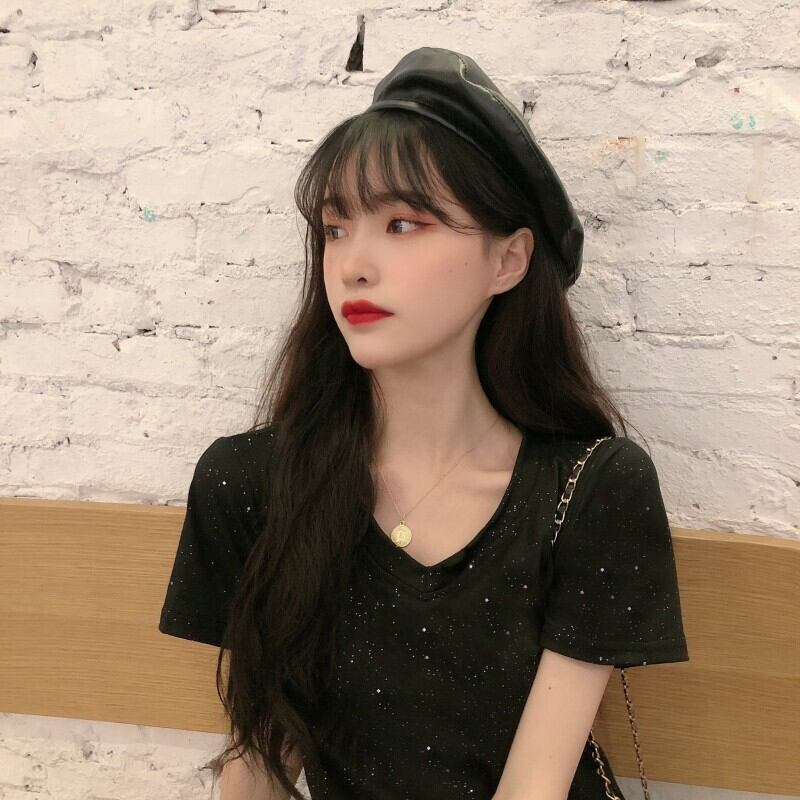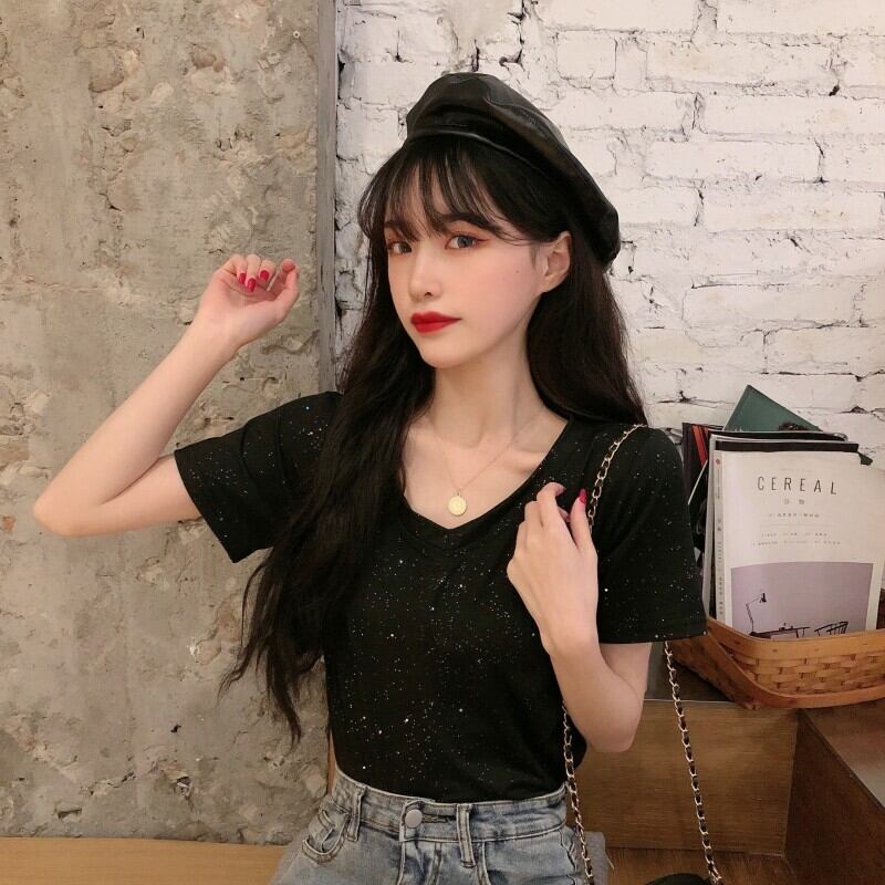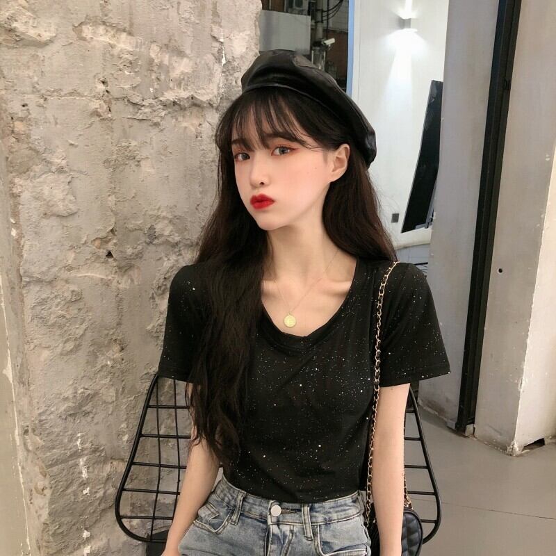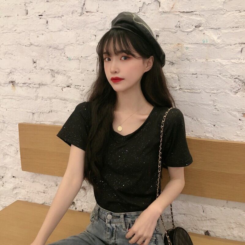 黒のVネック半袖Tシャツレディースサマーデザインセンスニッチスリムbmショートトップスハイウエストパンツインタイド ハイウェスト ブラック 夏物 7460091029165586 | framboise21