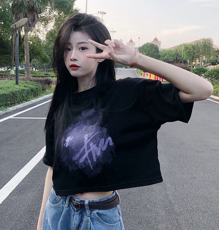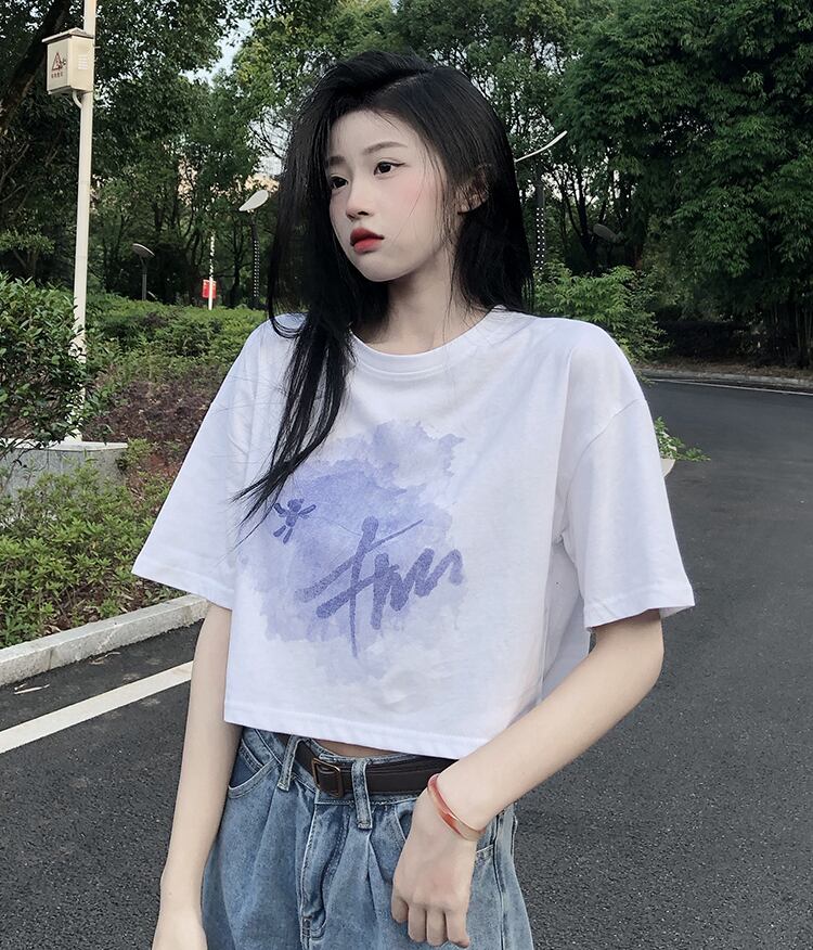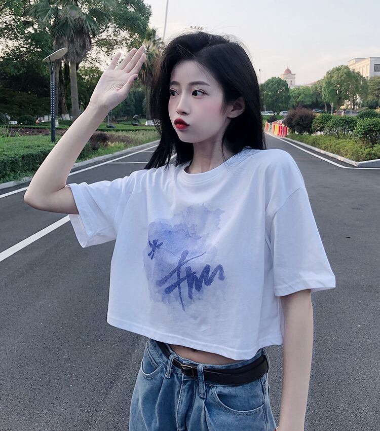 ホワイト半袖Tシャツレディースフロントショルダーサマーオーバーサイズハーフスリーブルーズ香港フレーバーシックショートトップインタイドブランド 夏物 7460097725417582 | framboise21
