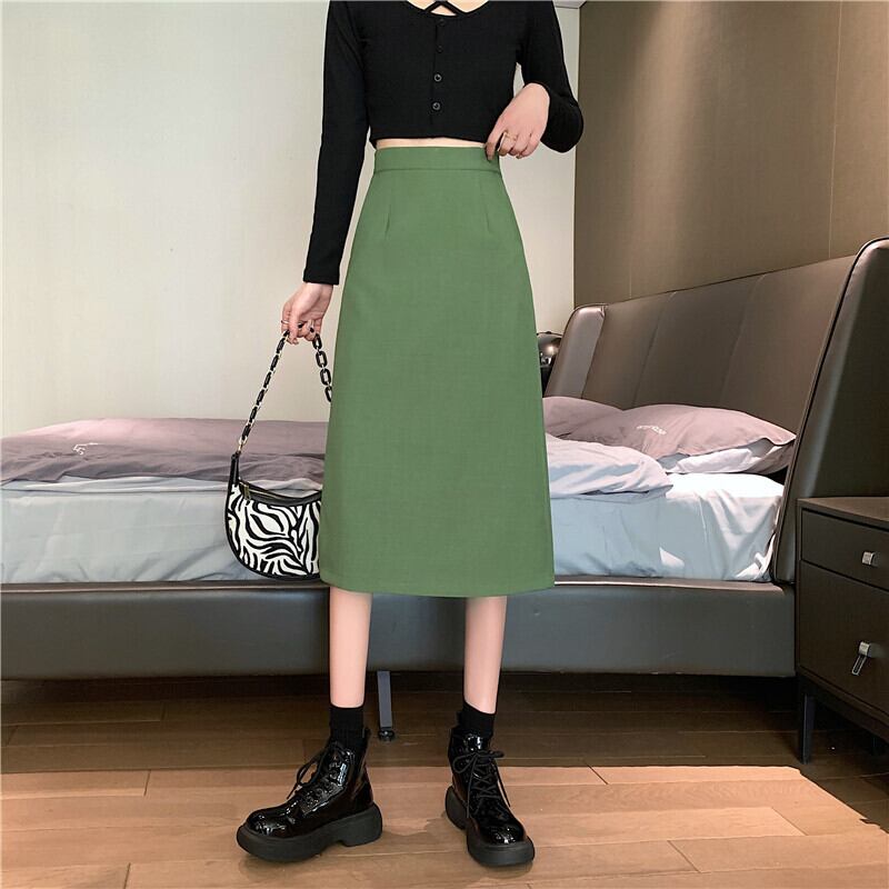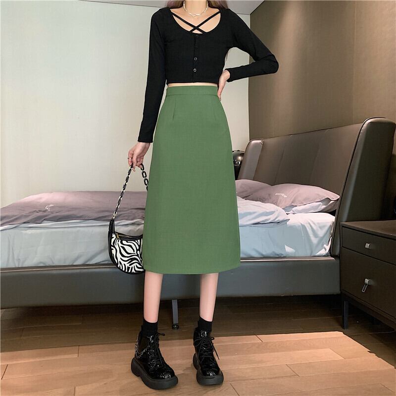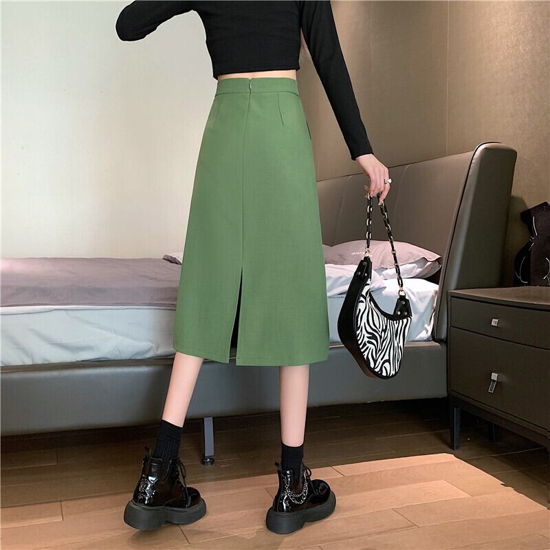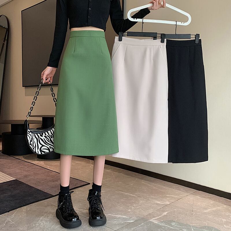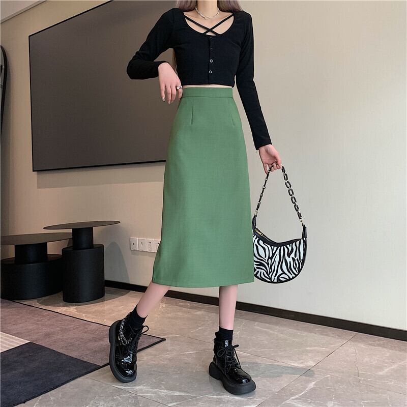 2022年春夏新作オーバーザニーミッドレングス気質リアスプリットスカートレディーススリムハイウエストAラインバッグヒップスカート ハイウェスト スプリング 春物 サマー 夏物 7460054521897840 | framboise21