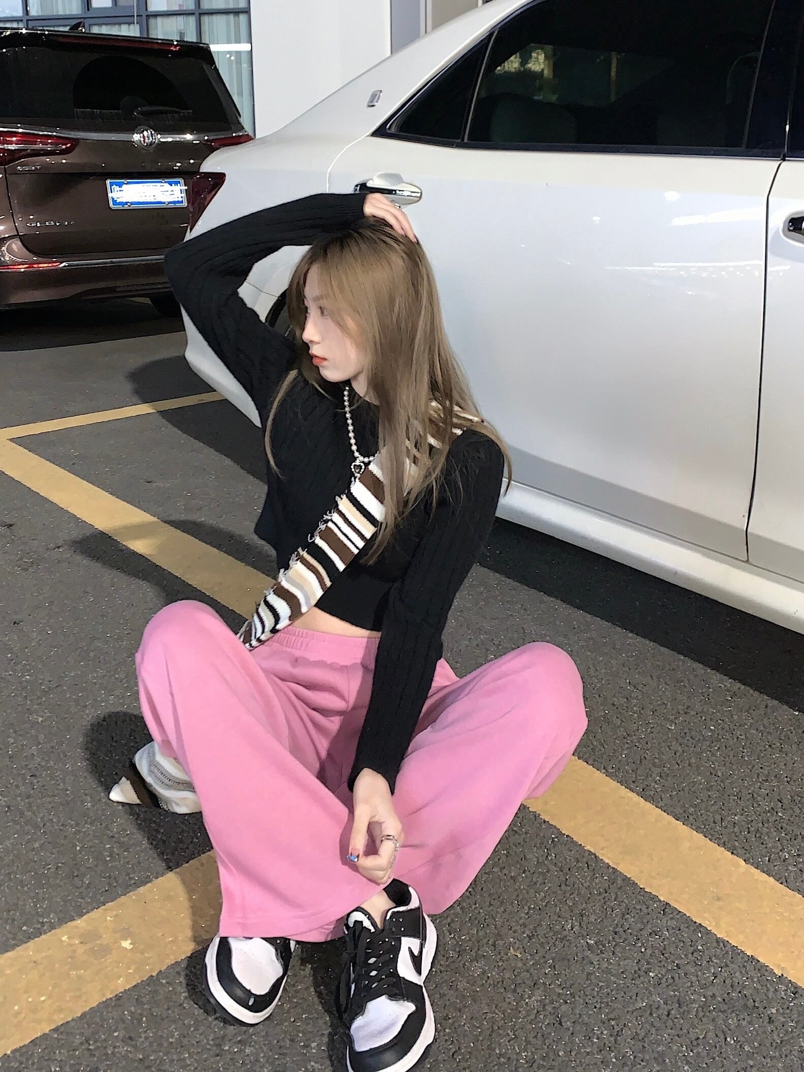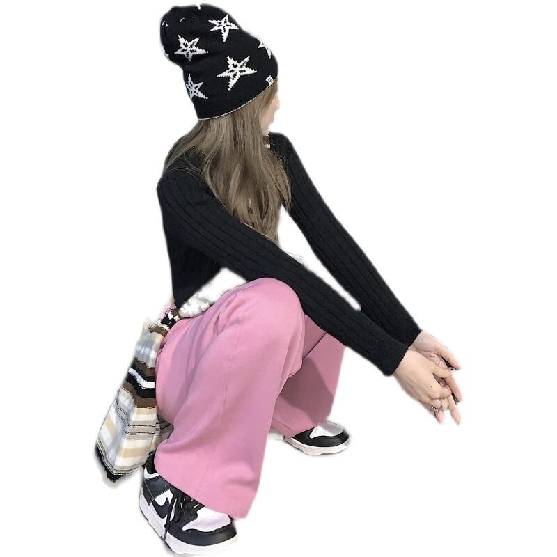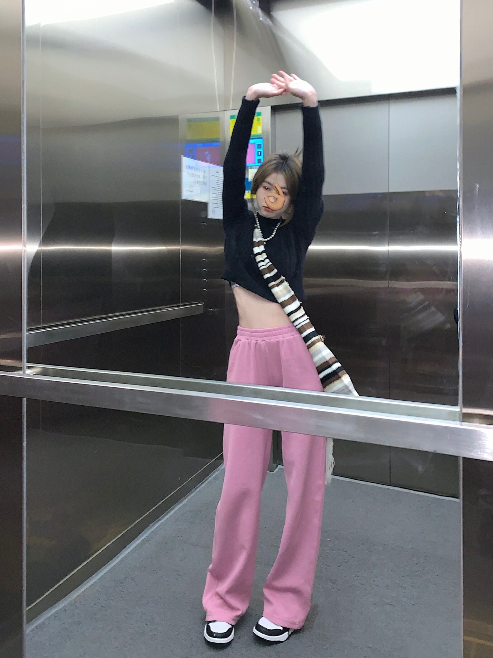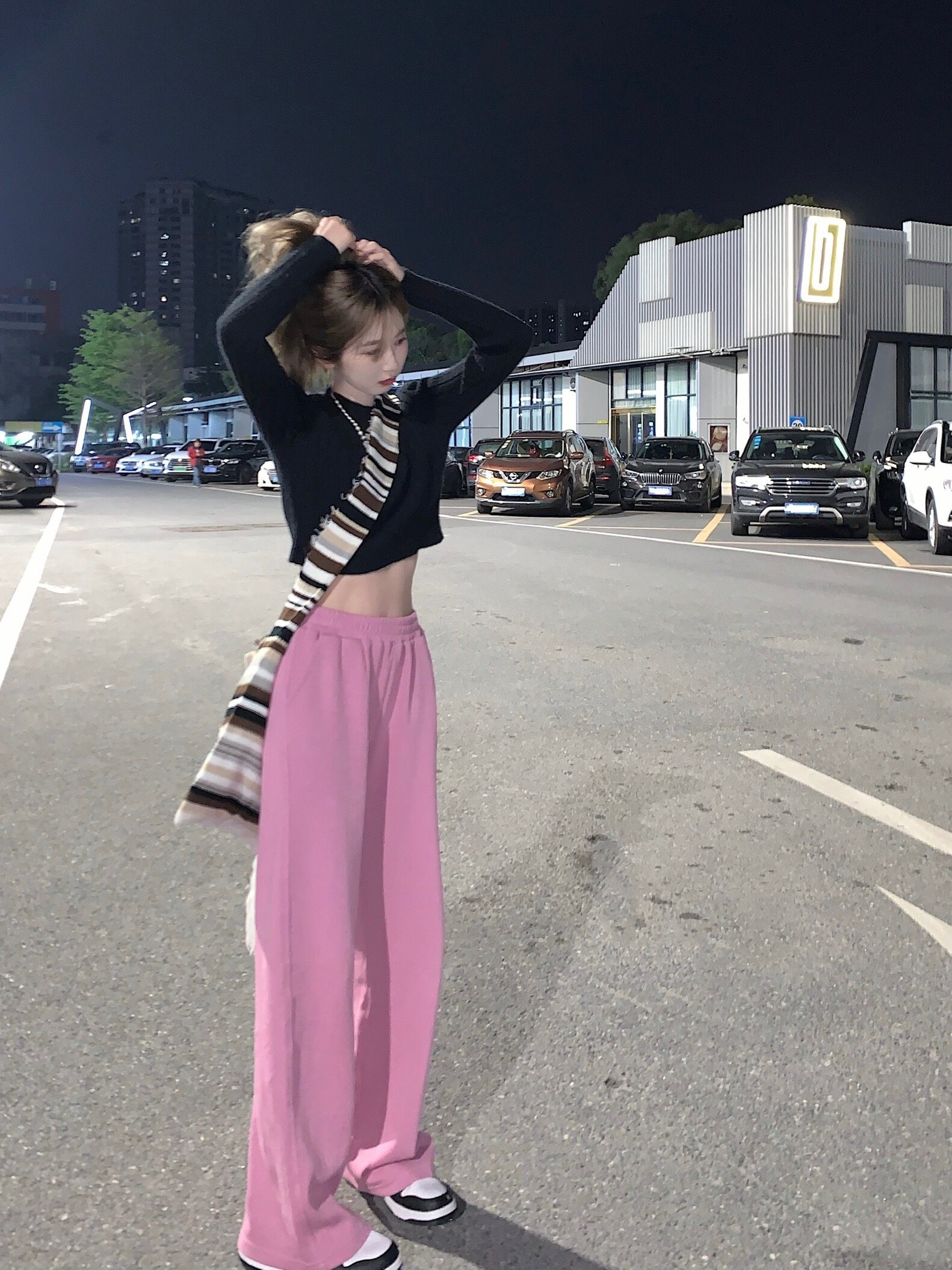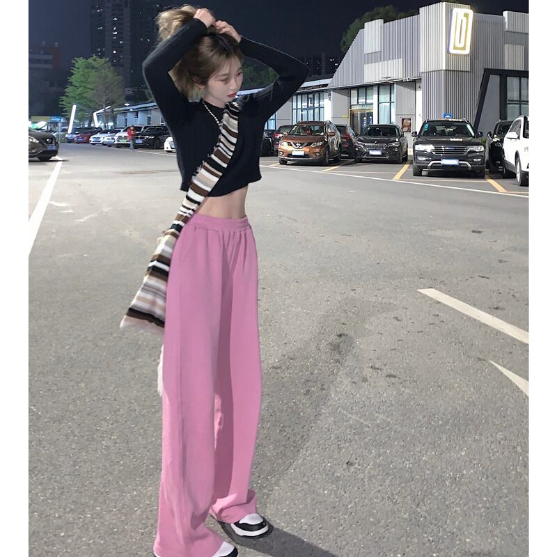 ピンクのハイウエストモップワイドレッグパンツレディースサマースモールドレープストレートレッグパンツデザインセンスニッチカジュアルパンツパンツ 夏物 7460088045945262 | framboise21