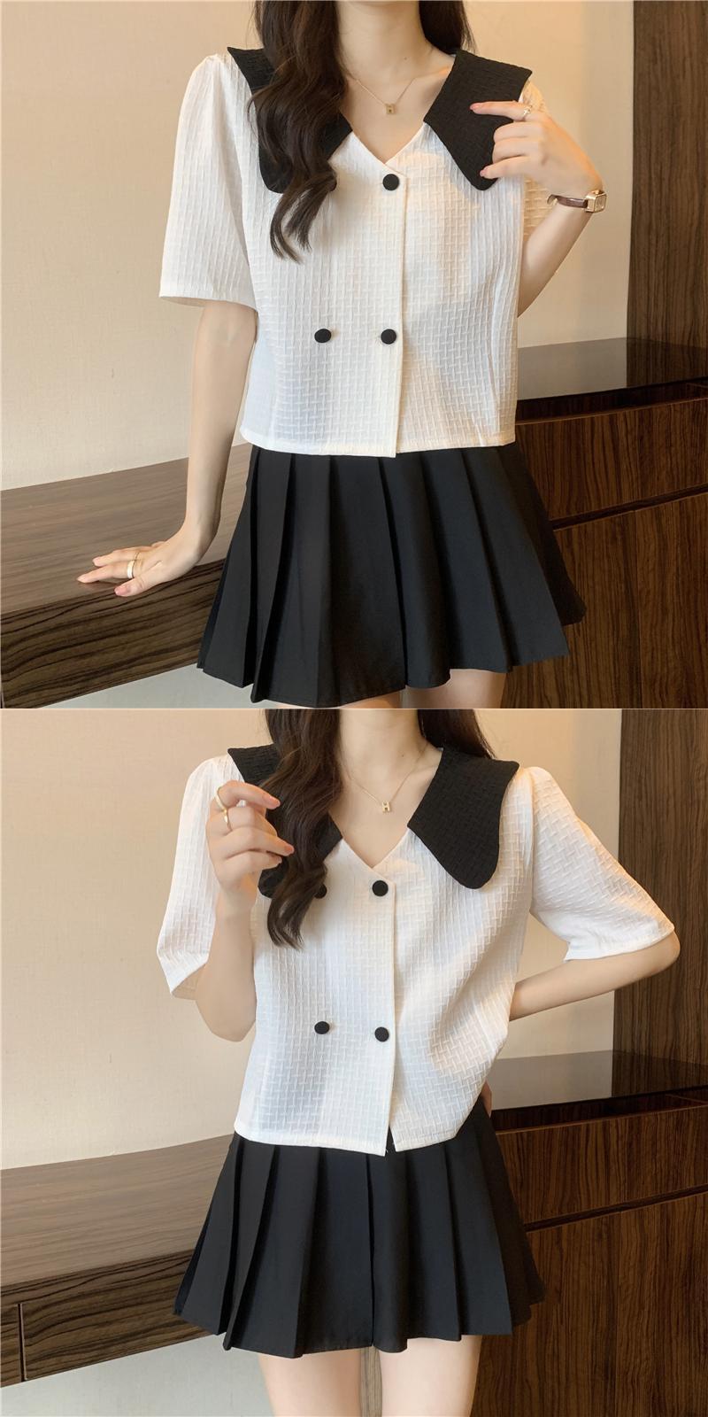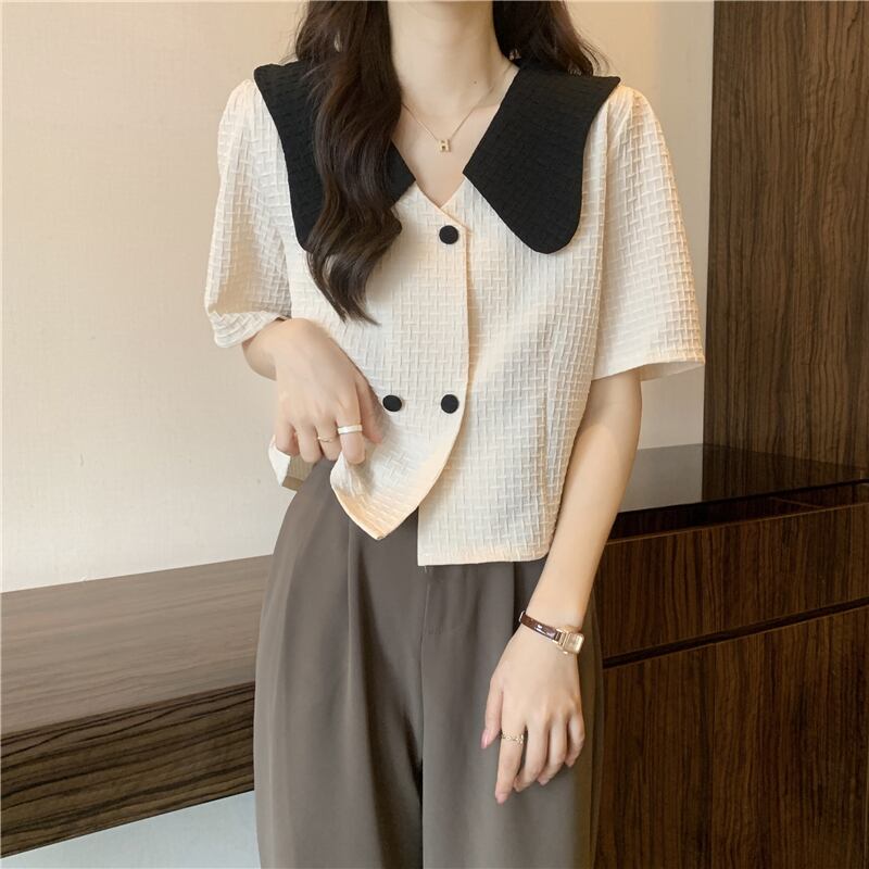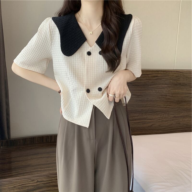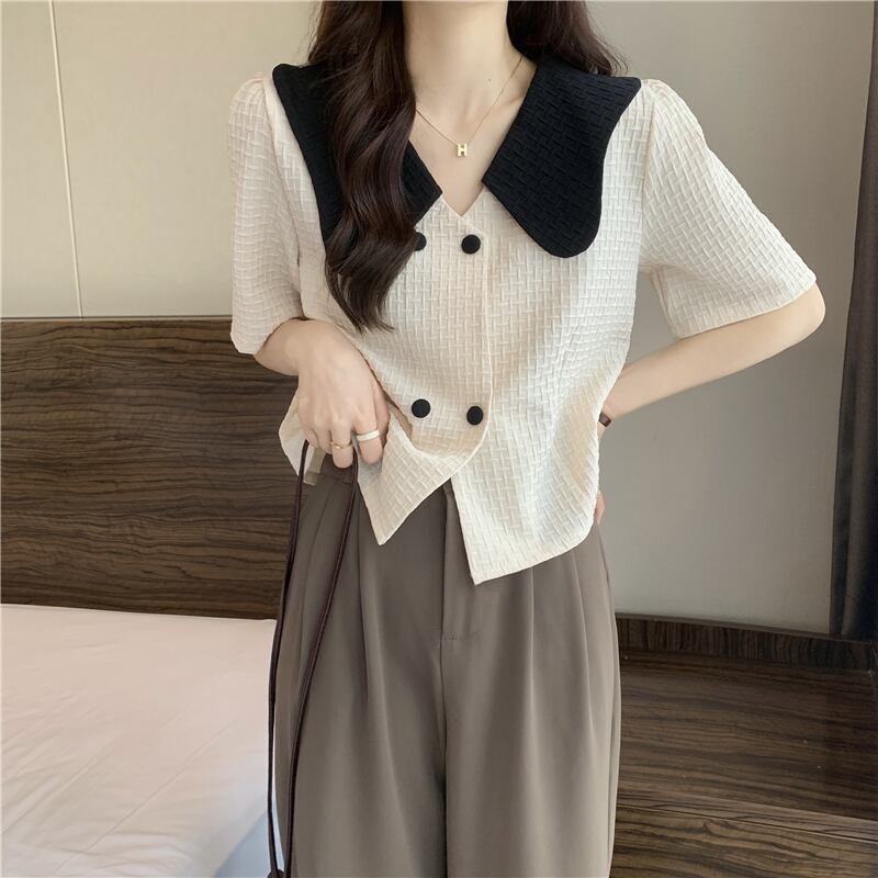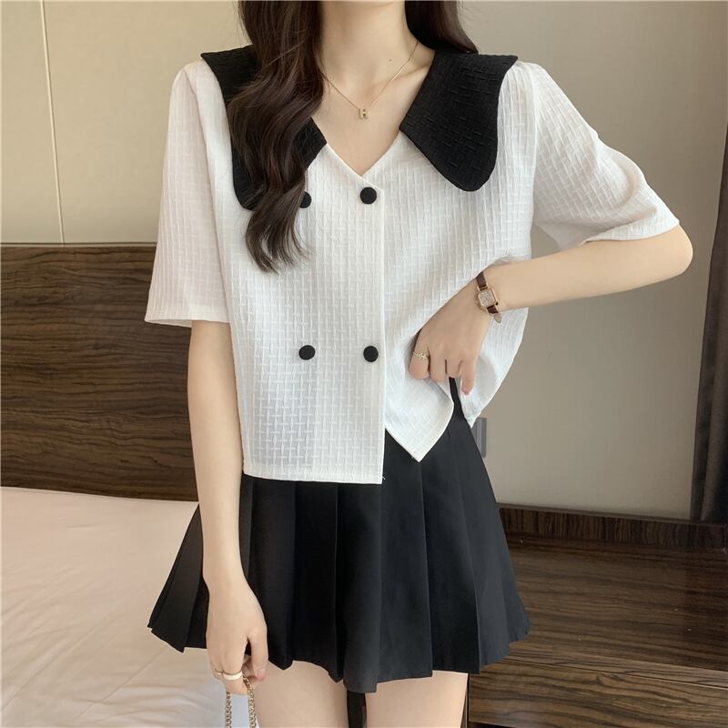 2022年新作センスニッチドールカラースウィート半袖ハイエンドダブルブレストシャツトップレディースサマー 大人ガーリー キュート カジュアル 夏物 7460062509555521 | framboise21