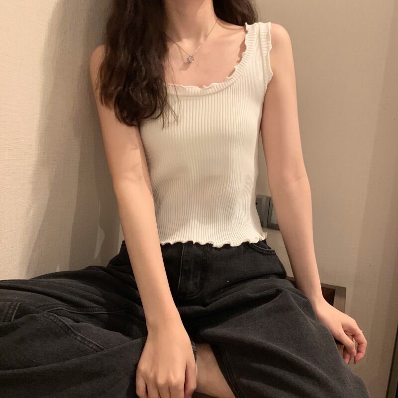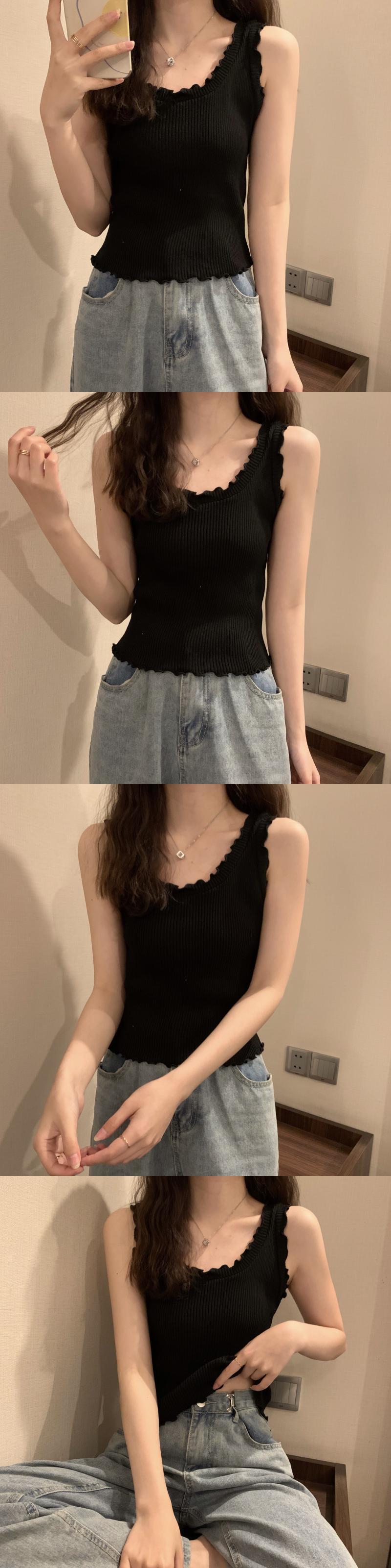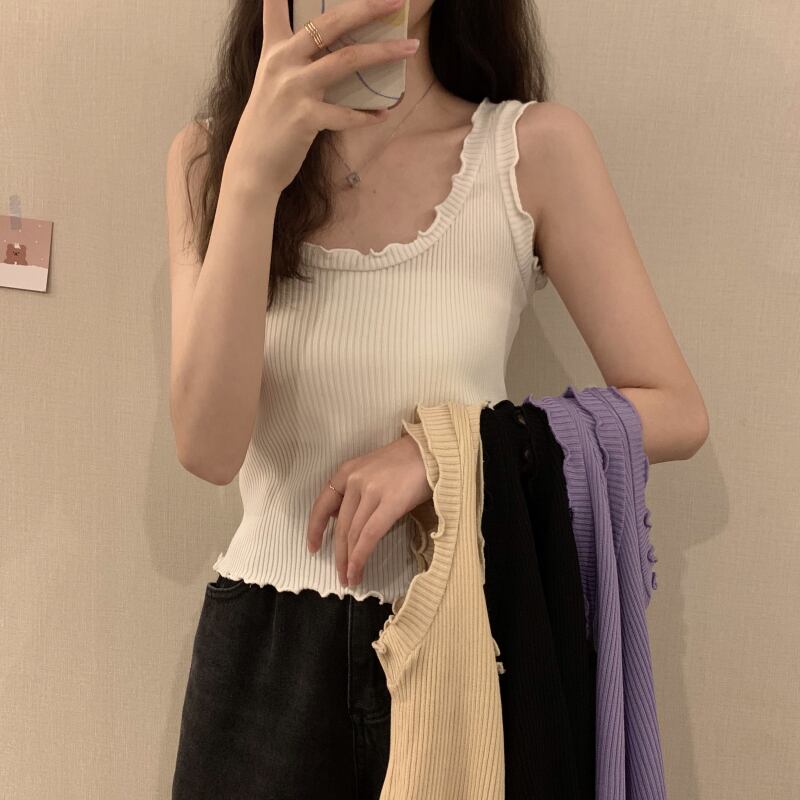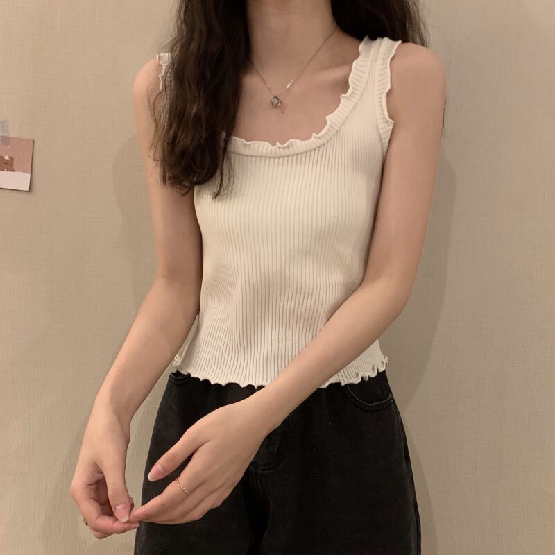 内側にスクエアネックのベスト、サスペンダー、純粋な欲望、甘くてスパイシーなトップ、女性のデザイン、小さな黒いニットのボトミングシャツ、アウター ブラック 大人ガーリー スウィート キュート カジュアル ピュア スクウェア 746004616599811 | framboise21
