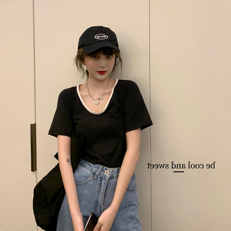 フレンチリーク鎖骨ラージネックラインTシャツレディース2022新しいルーズで薄いショートトップサマーフロントショルダー半袖 ハーフスリーブ 夏物 7460034754917826 | framboise21