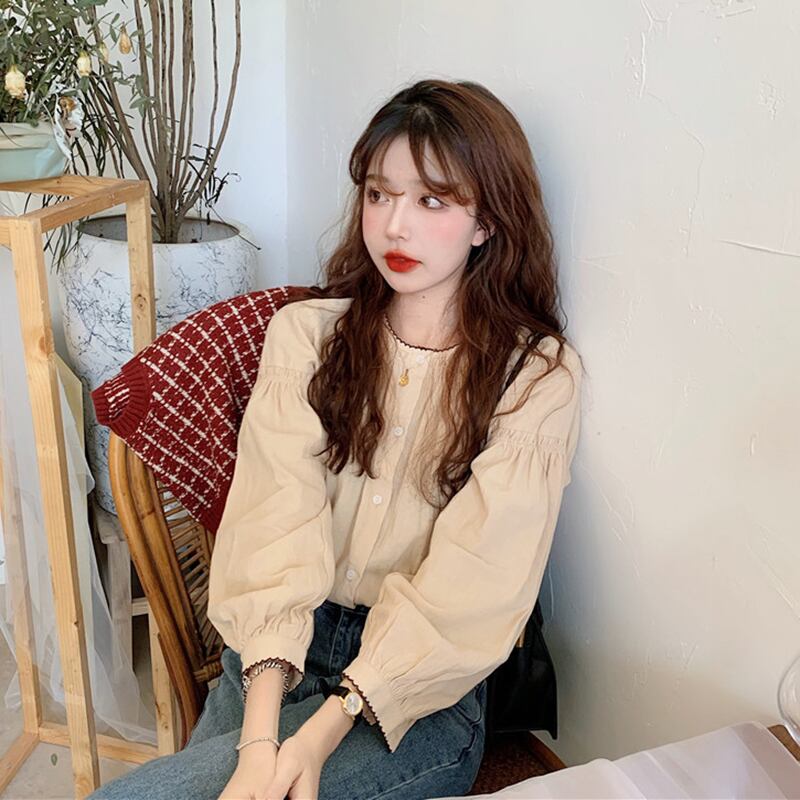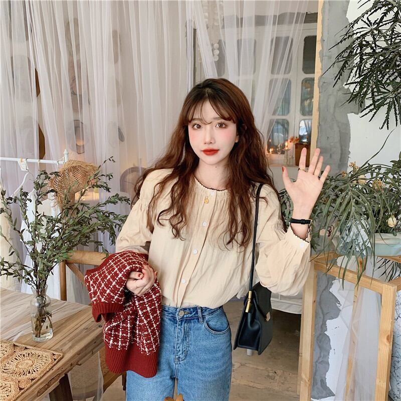 パフスリーブアプリコットシャツレディース春秋デザインセンスeseバージョンルーズ&シンシャツランタン長袖シャツシン ロング スプリング 春物 オータム 秋物 7460067597524493 | framboise21