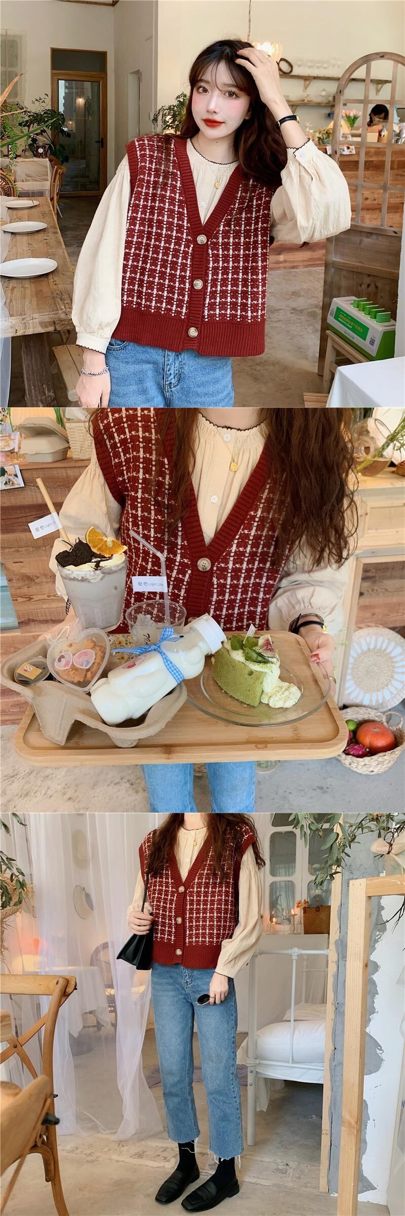 色:アプリコットシャツ,白のシャツ,赤いベスト,黒のベスト