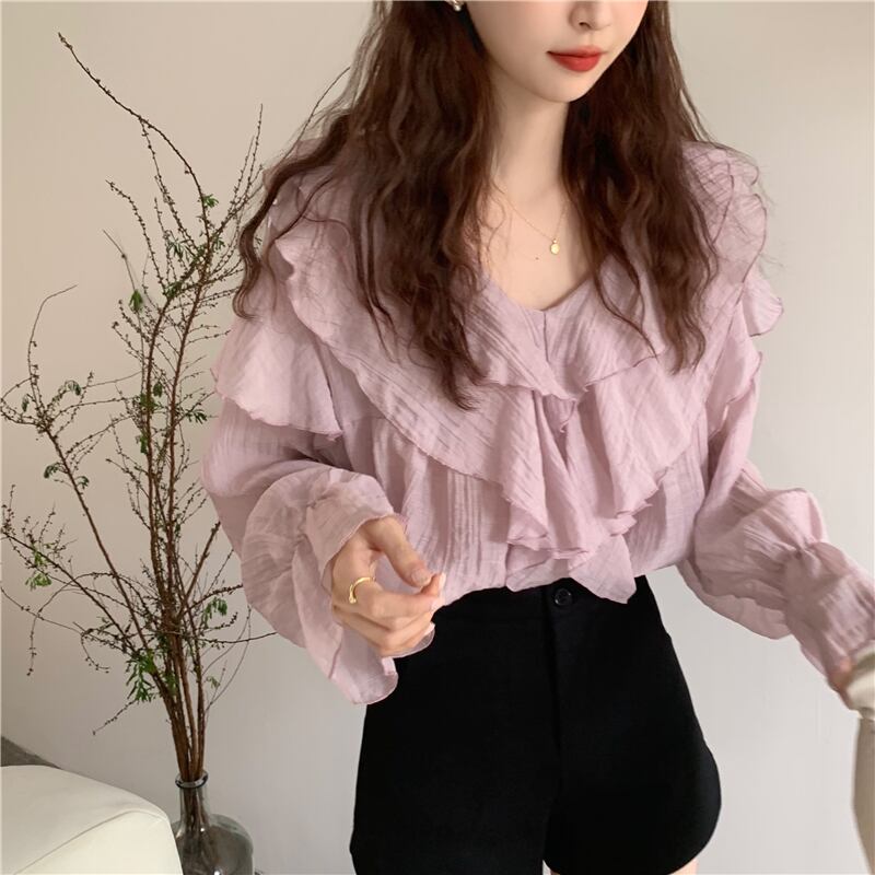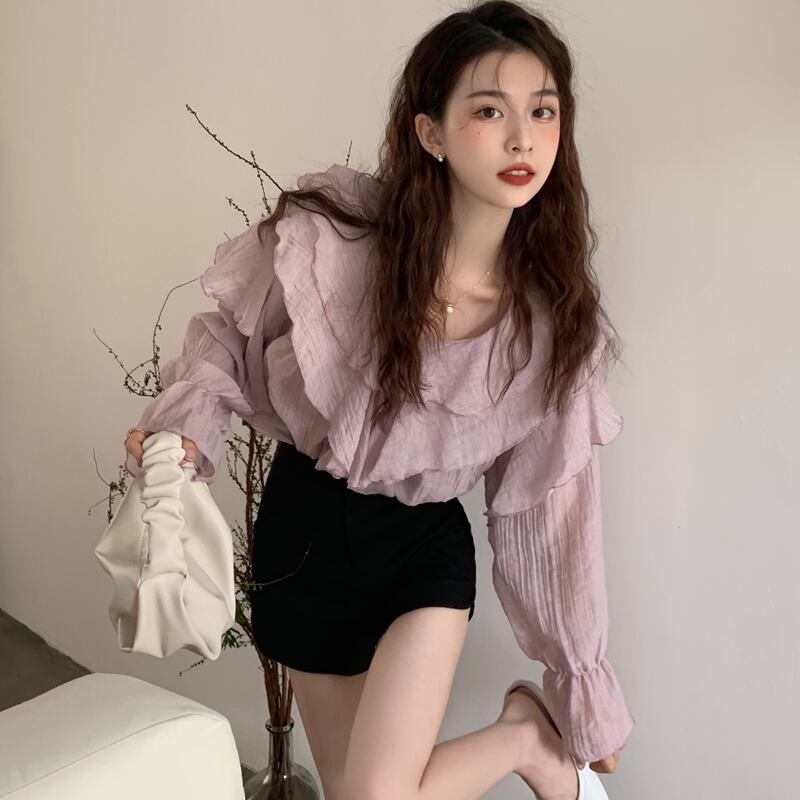パープルドールカラーシャツレディース春ドレスセンセーションスモールサマーシンサンスクリーンシフォンシャツシックロングスリーブトップ 長袖 スプリング 春物 夏物 7460088851723569 | framboise21