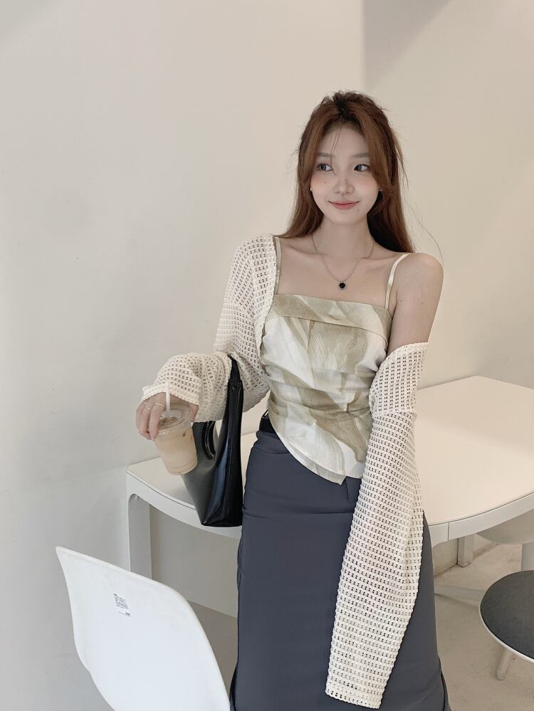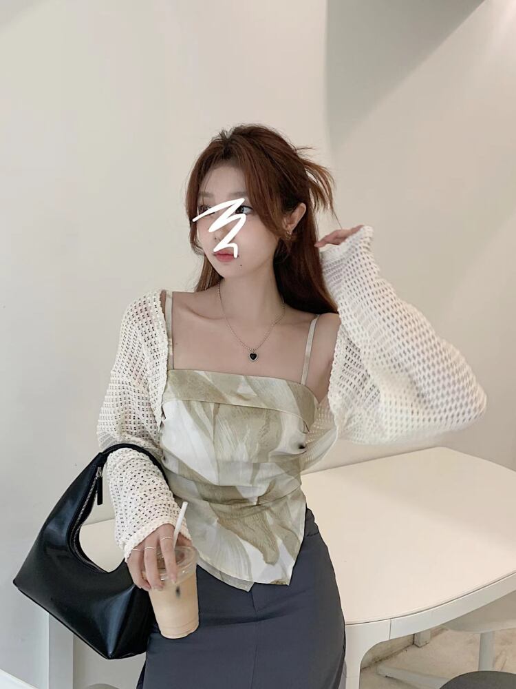 ニット日焼け止めブラウス女性の夏の薄いチョッキ小さなカーディガン純粋な欲望のサスペンダー中空ハーフカットショートトップ サマー 夏物 ピュア 7460011373659755 | framboise21