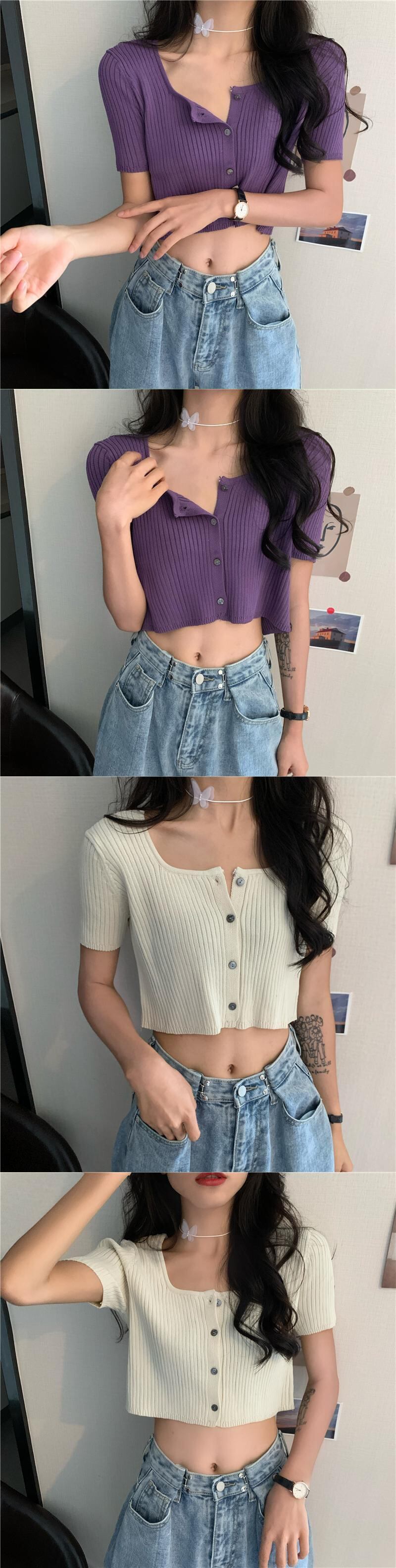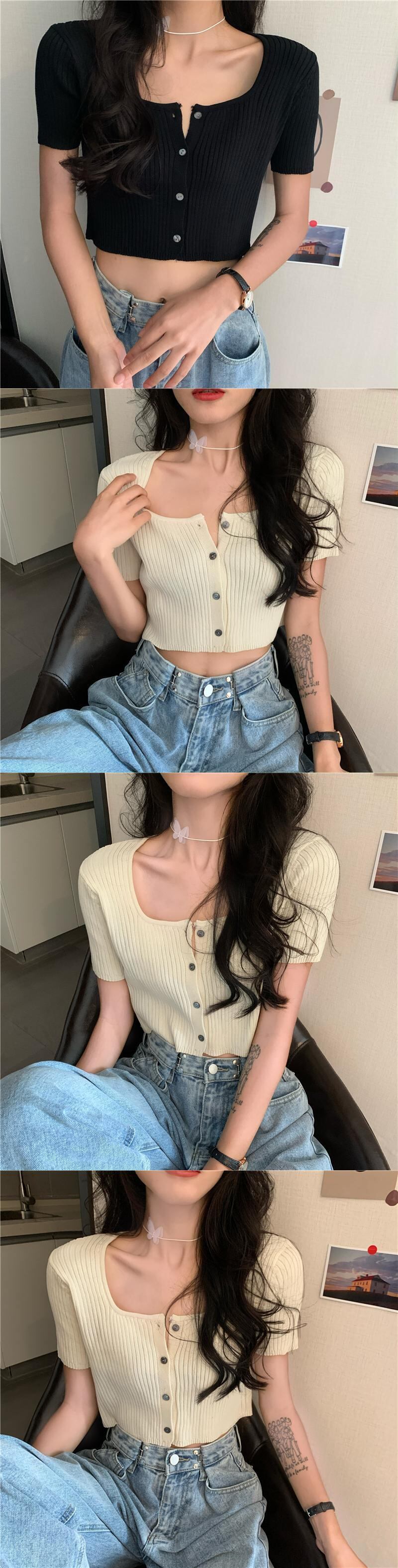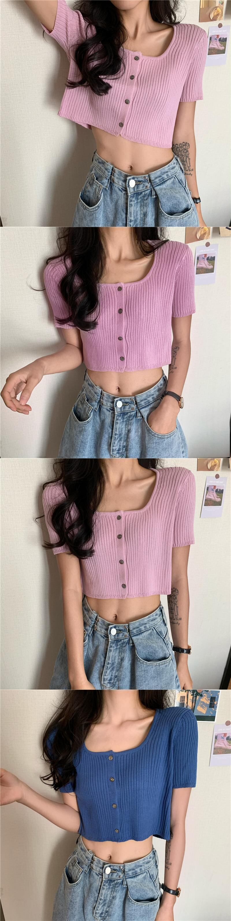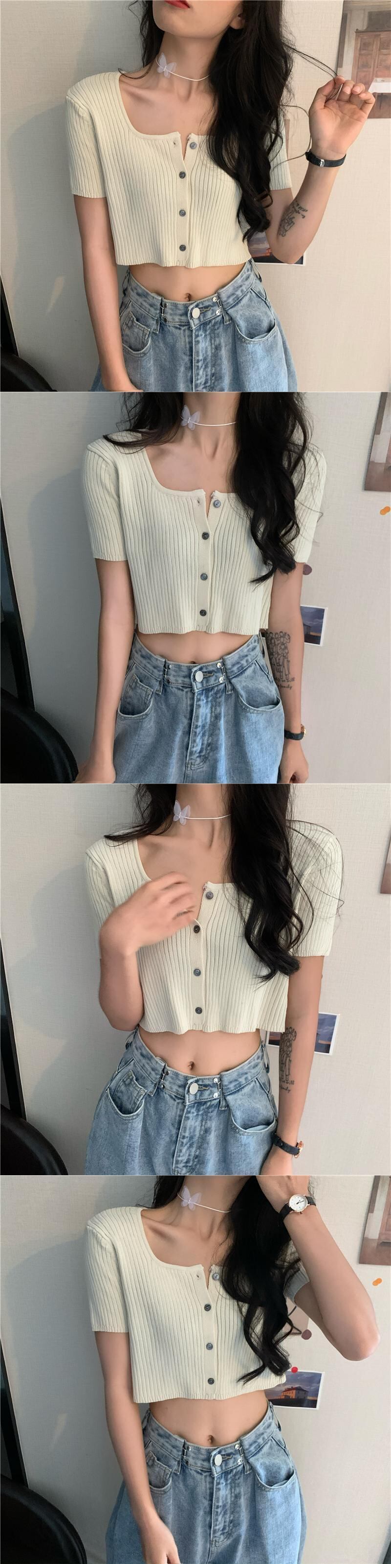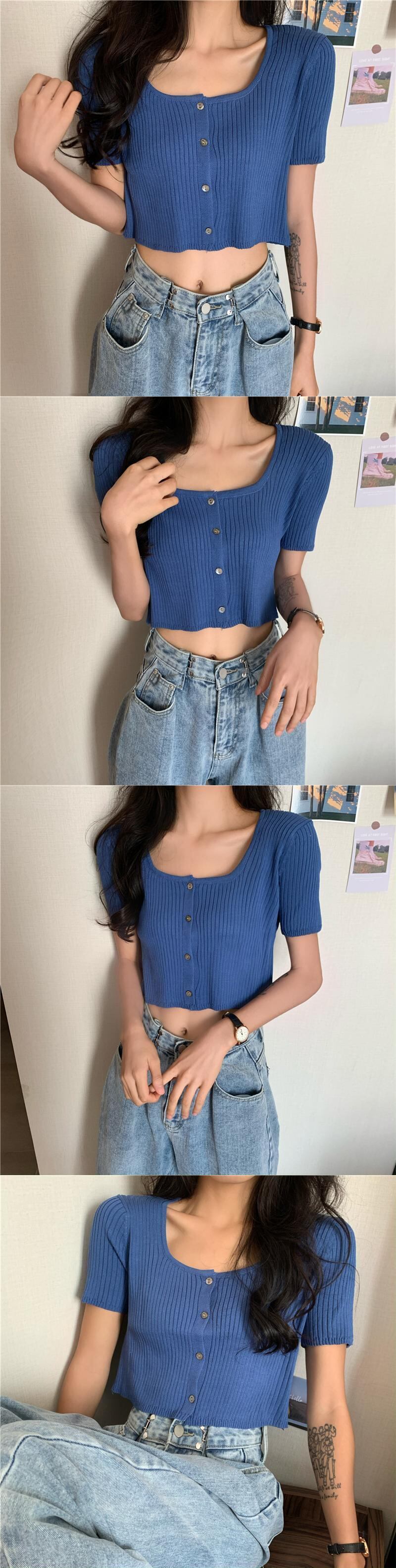 2022年の新しい夏の女性のハイウエストショートクロップドネーブルトップ気質多目的スクエアネック半袖ニットセーター ハイウェスト ハーフスリーブ サマー 夏物 スクウェア 7460014034950164 | framboise21