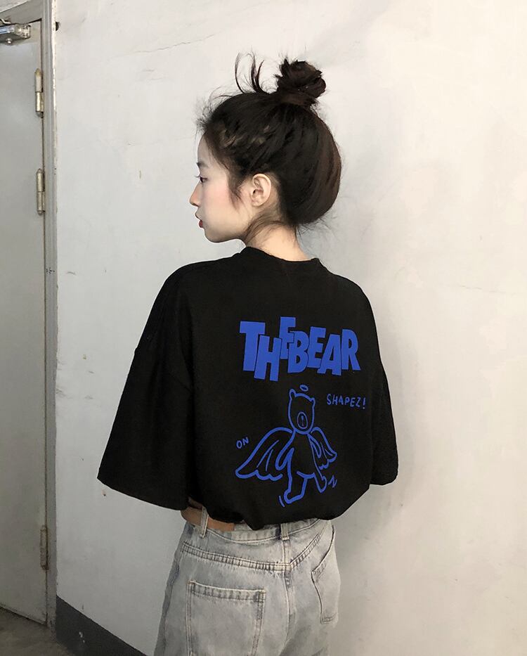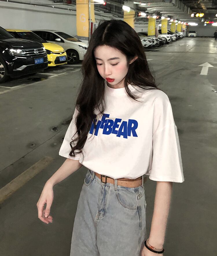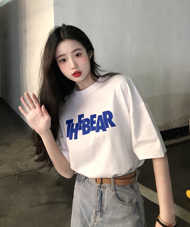 ホワイト半袖Tシャツレディースサマーハーフスリーブフロントショルダーコットンアメリカンスタイルルーズシックユニークトップデザインニッチ 夏物 7460067729871141 | framboise21